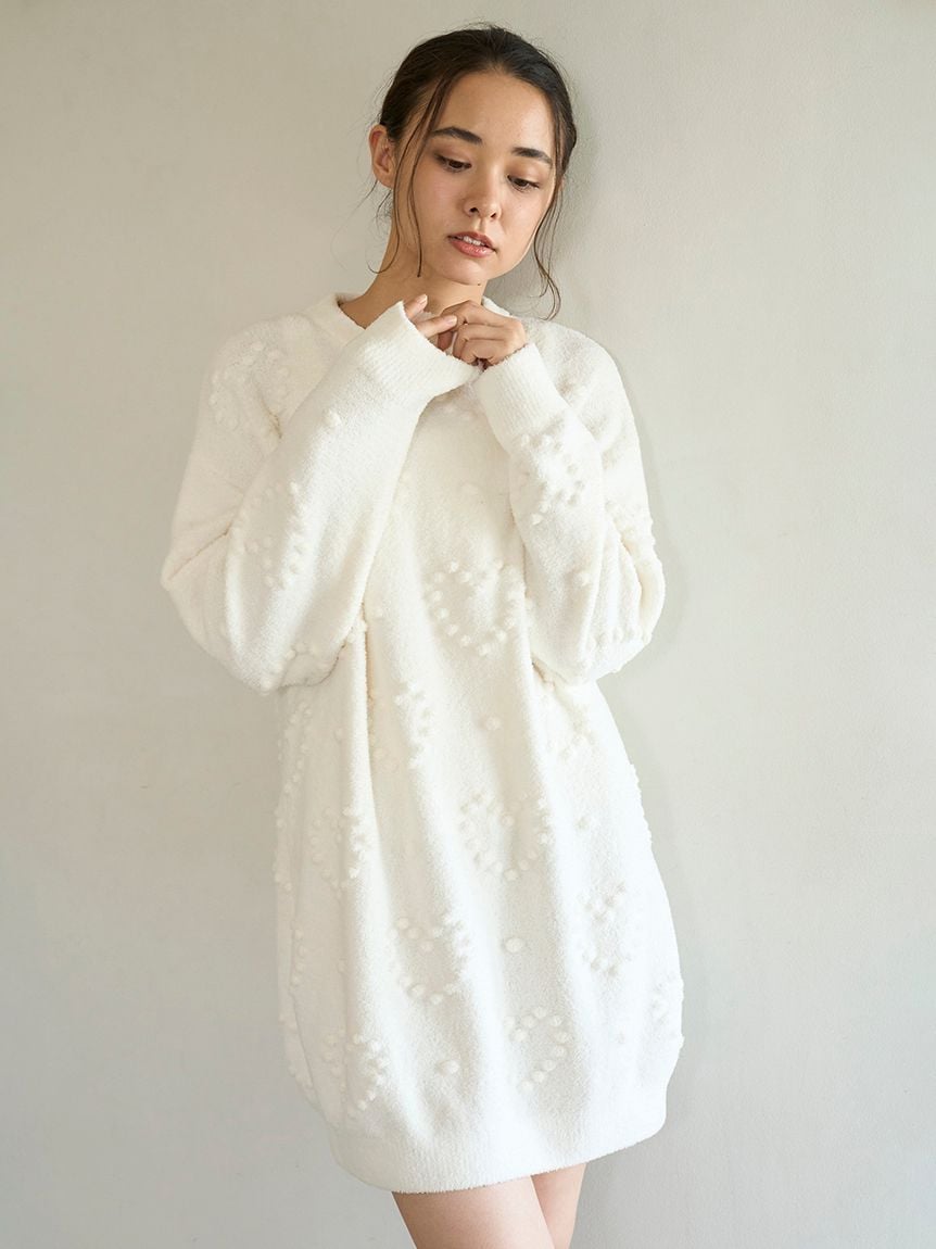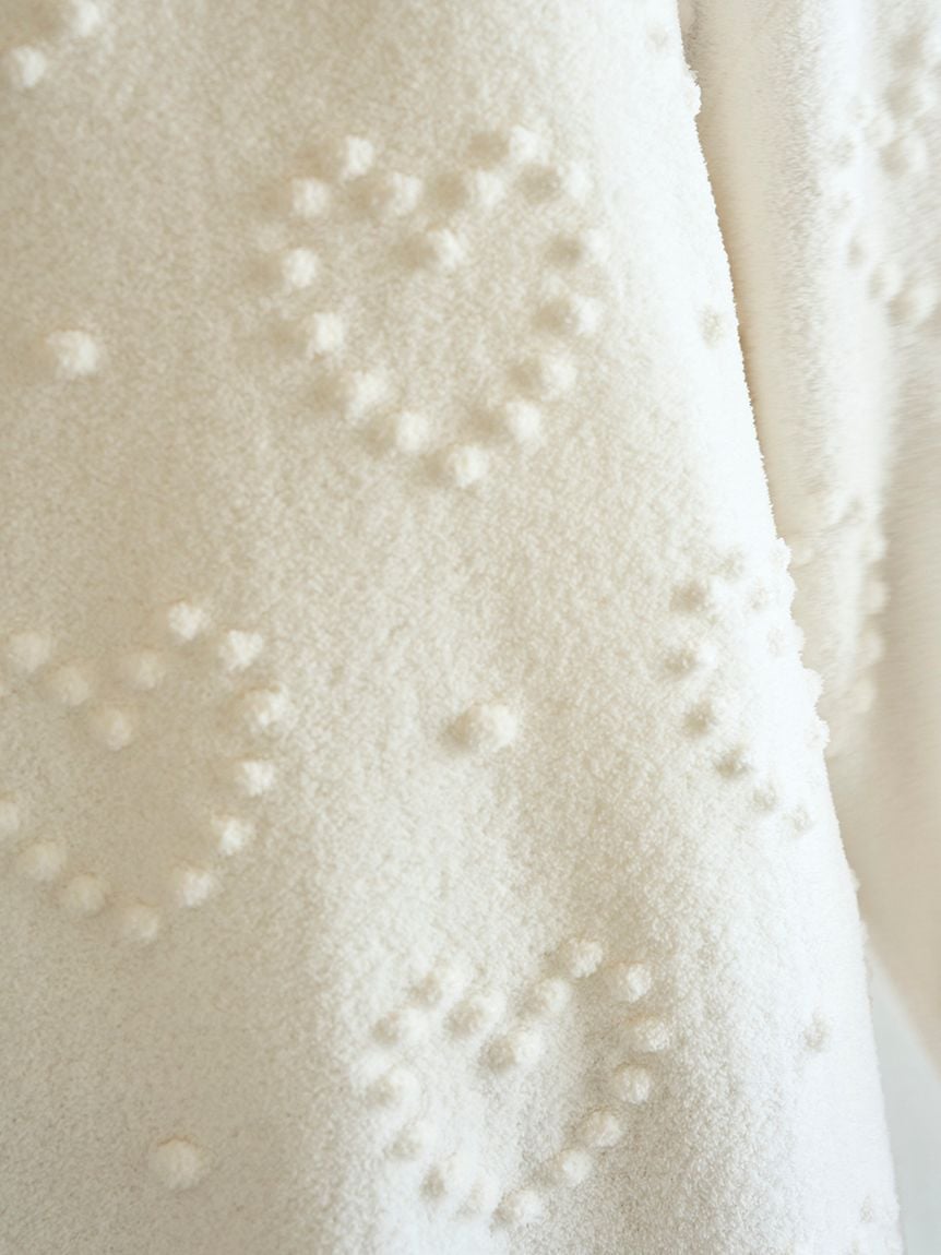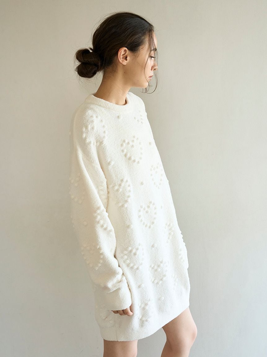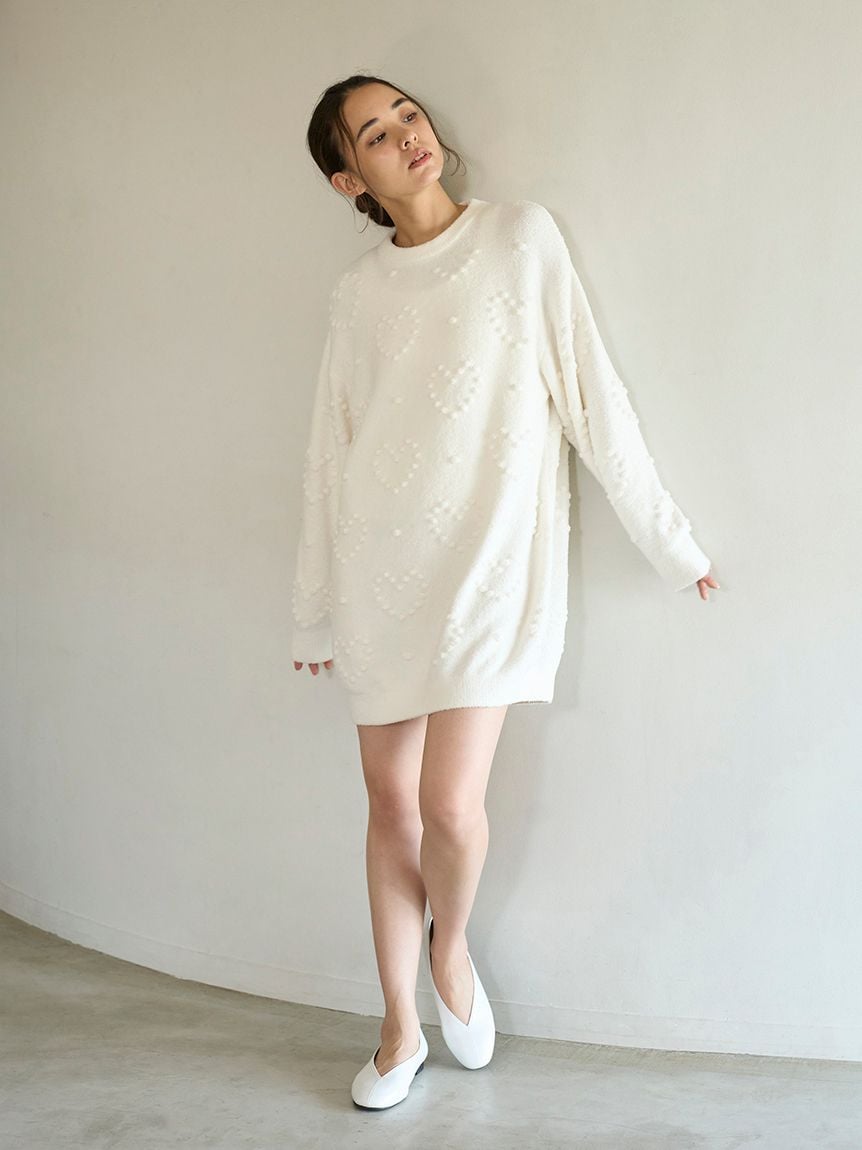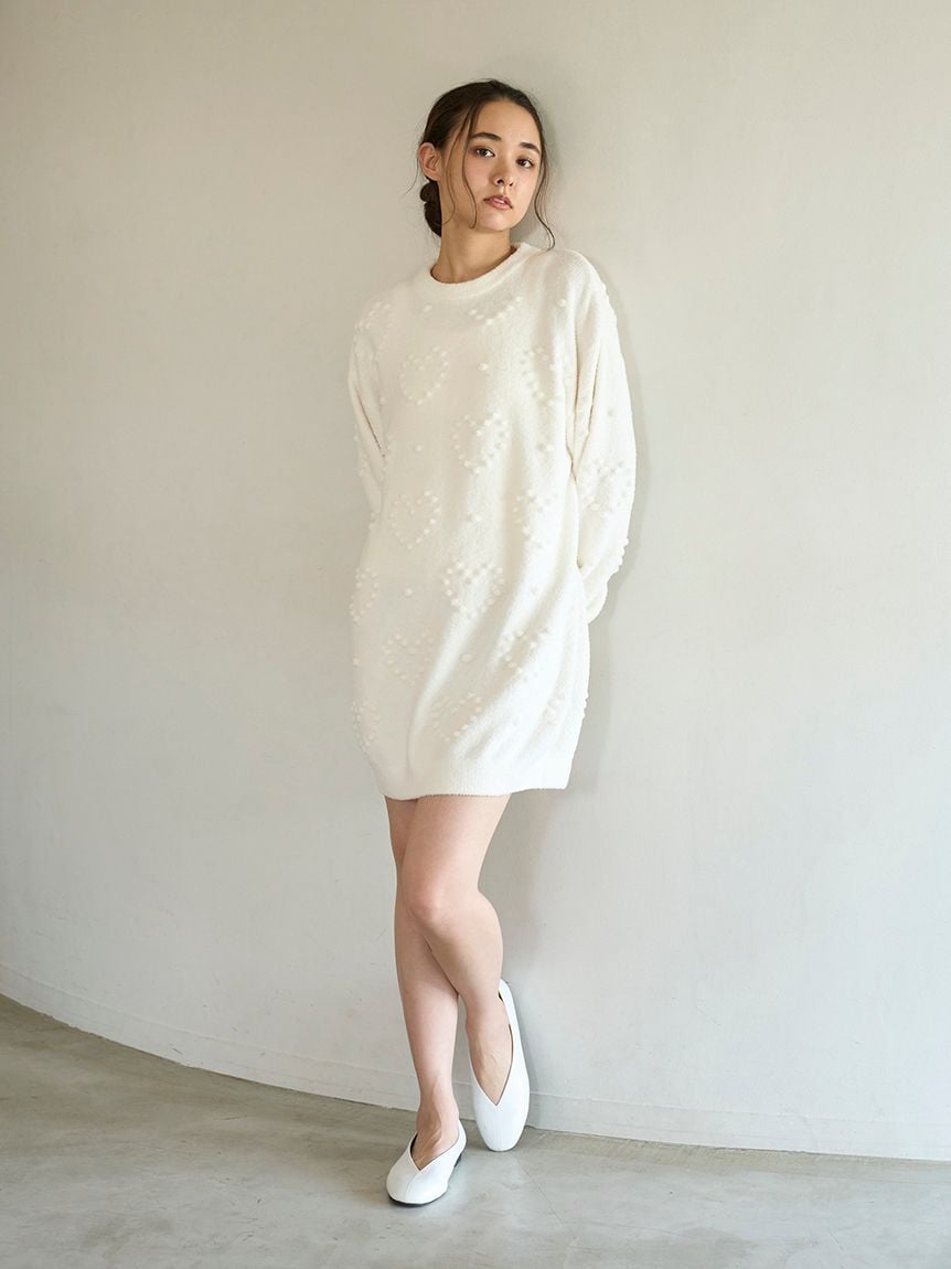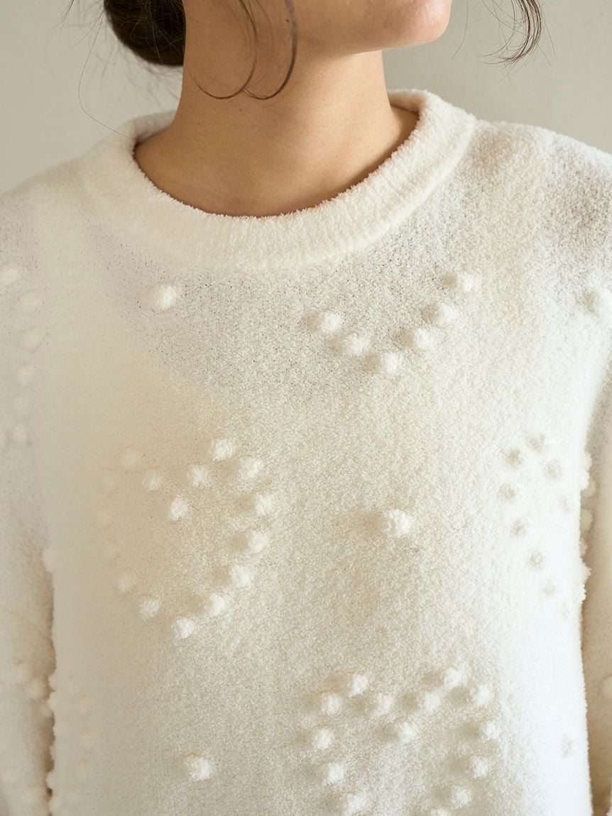 採用立體圓形針織呈現愛心圖案,溫暖舒適。短版剪裁搭配泡芙袖,打造時尚俏麗的輪廓感。