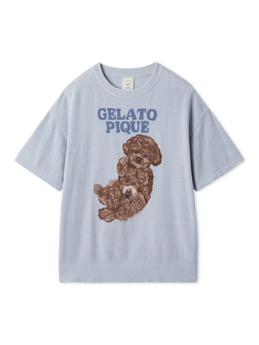 以仰躺露肚皮的小狗為主題設計的針織系列。