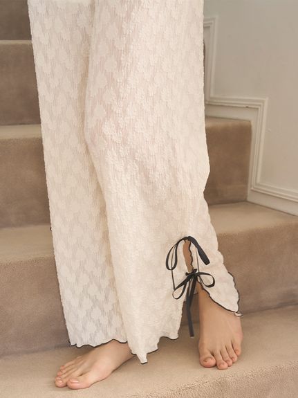 【清爽透膚感蕾絲針織長褲】