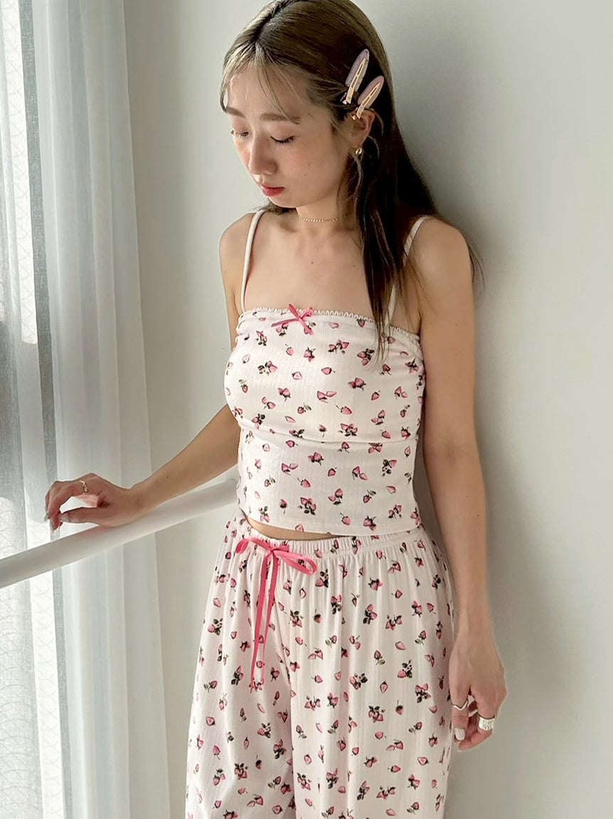 前方點綴草莓色小緞帶的內襯式背心單品。