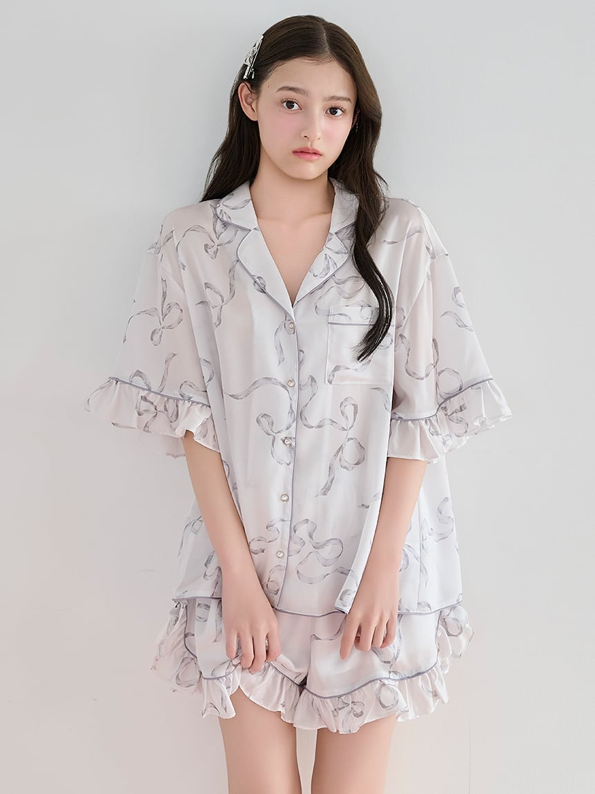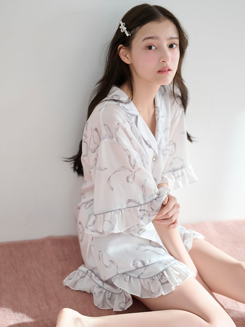 Gelato Pique經典的蝴蝶結圖案滿版印花,採用觸感滑順的「Luxshine」材質製作的居家服系列。