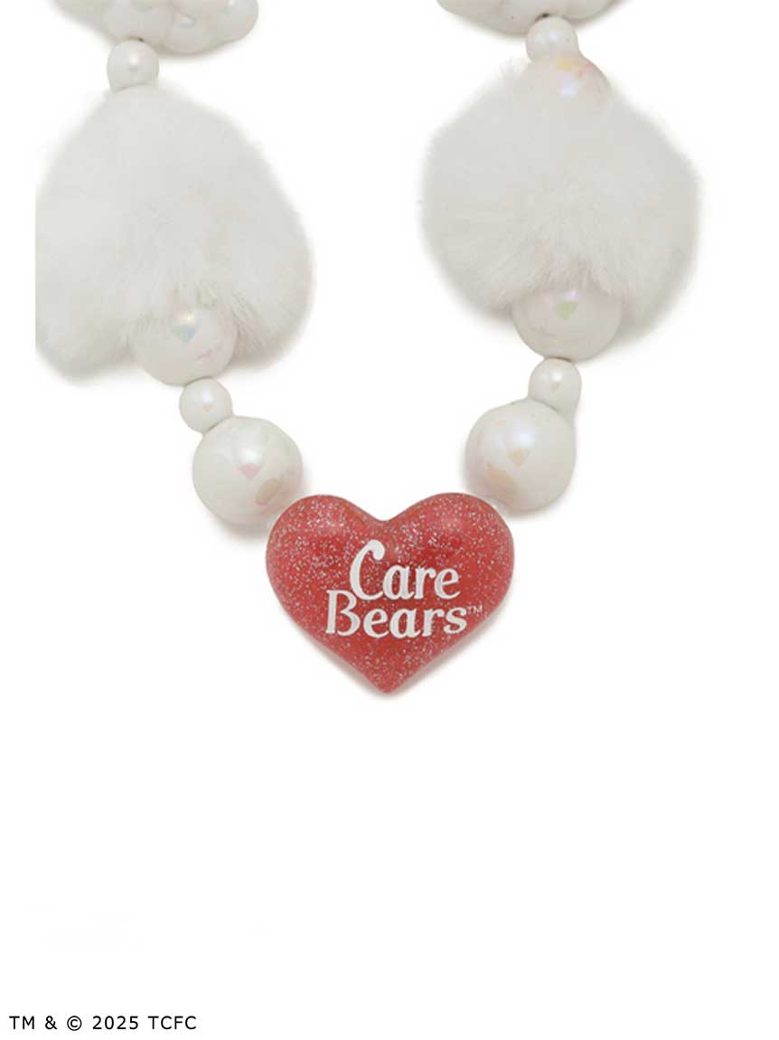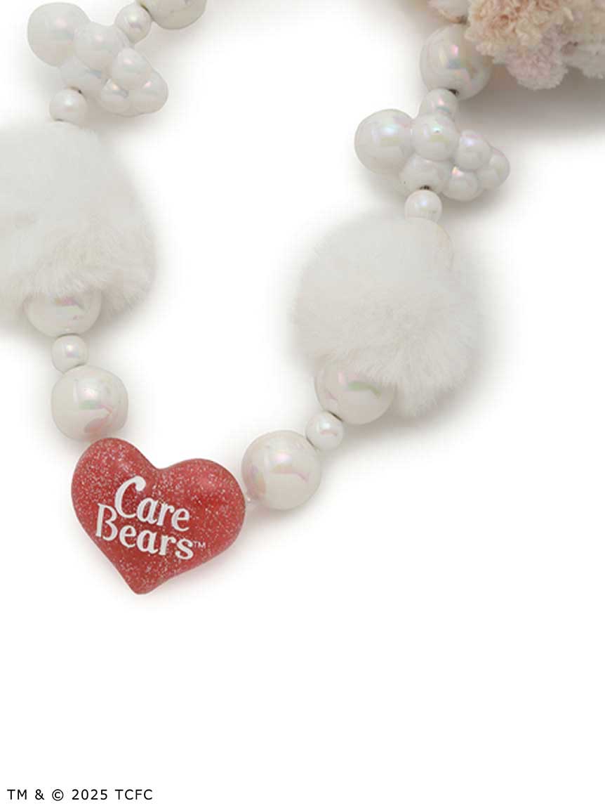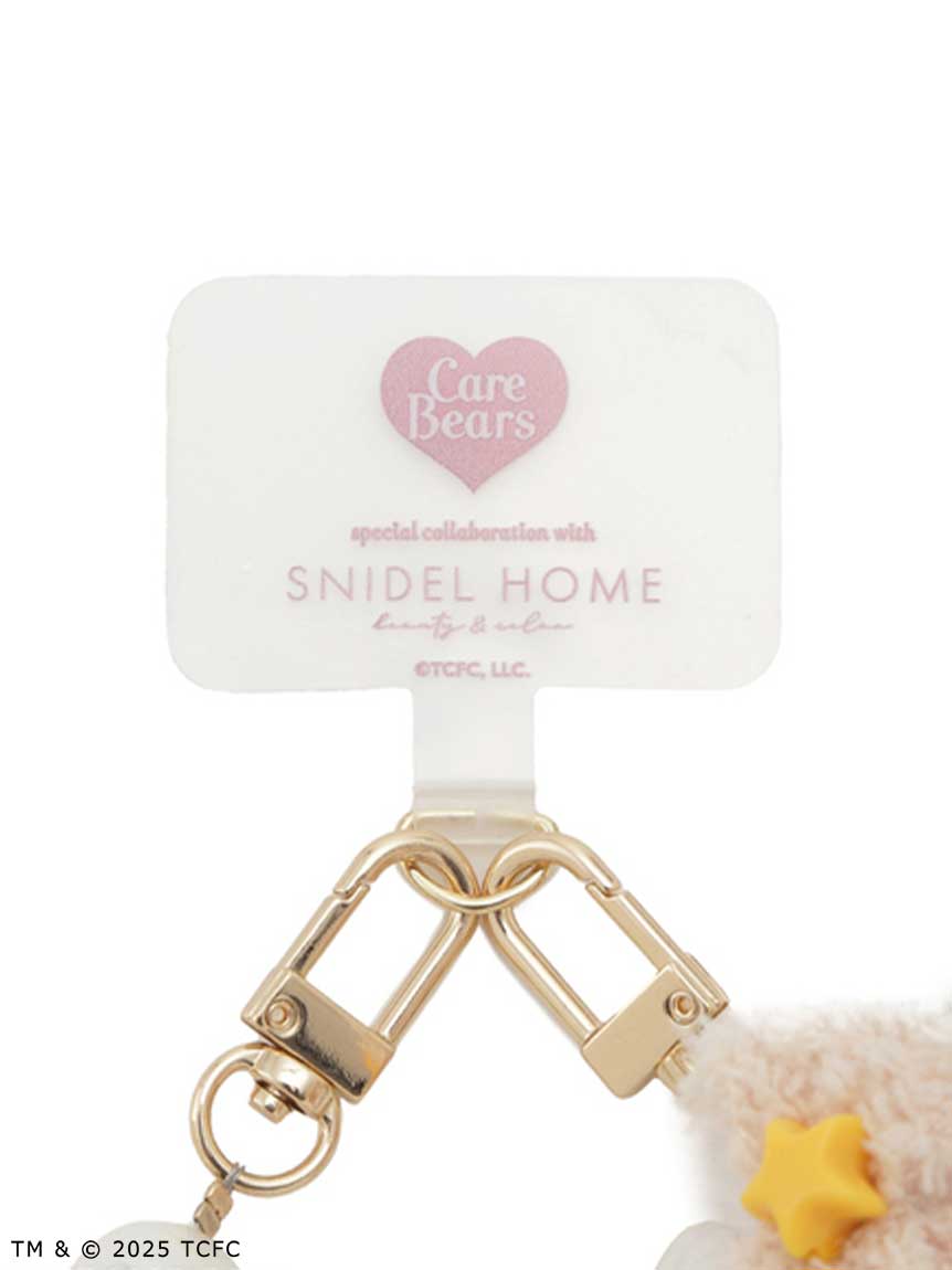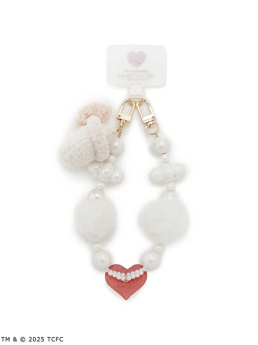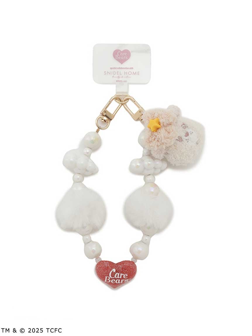 以柔軟毛茸針織布料打造Care Bear小熊臉型,搭配長毛毛料與亮面珠飾,組合成趣味十足的手機吊飾。