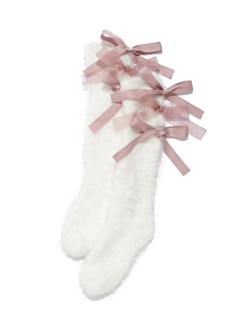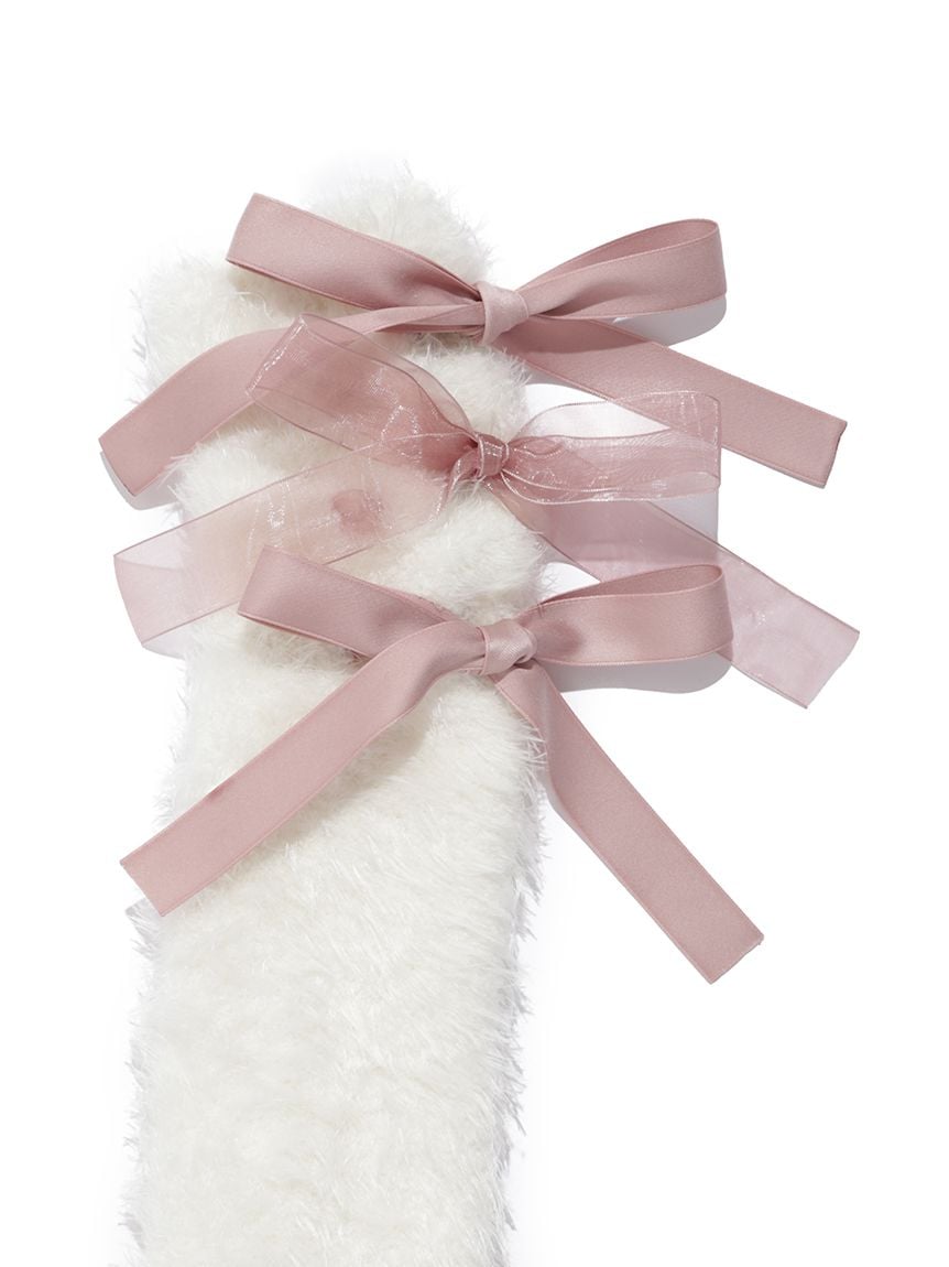 白色款以兔子為靈感,黑色款則取自黑貓主題,後側以緞帶與歐根紗交織成蝴蝶結裝飾,增添甜美細節。