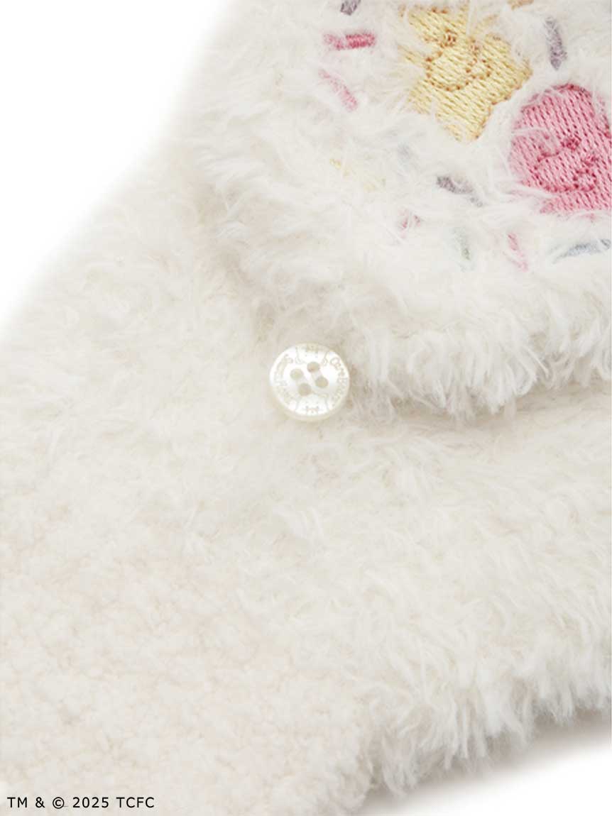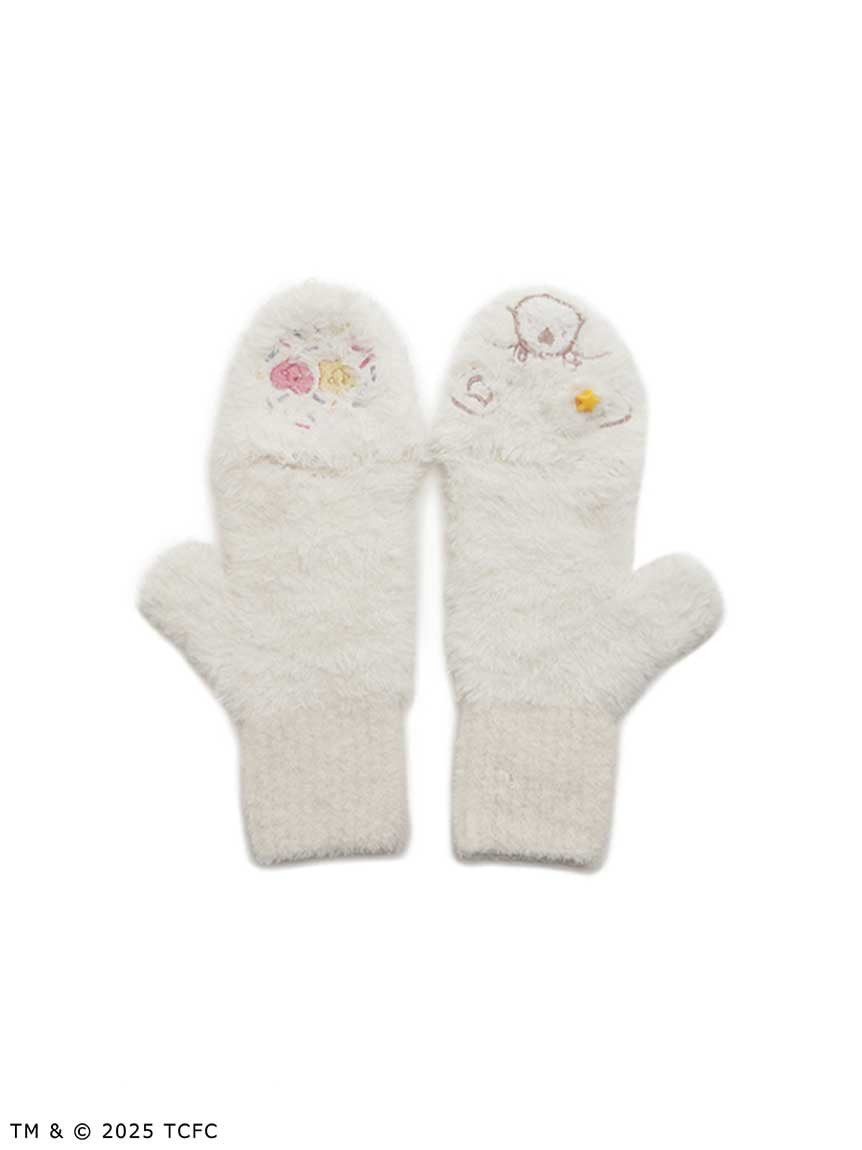這款連名款連指手套以長毛感仿皮草與蓬鬆針織羅紋結合,呈現繽紛又可愛的質感設計。