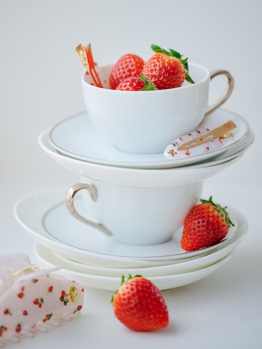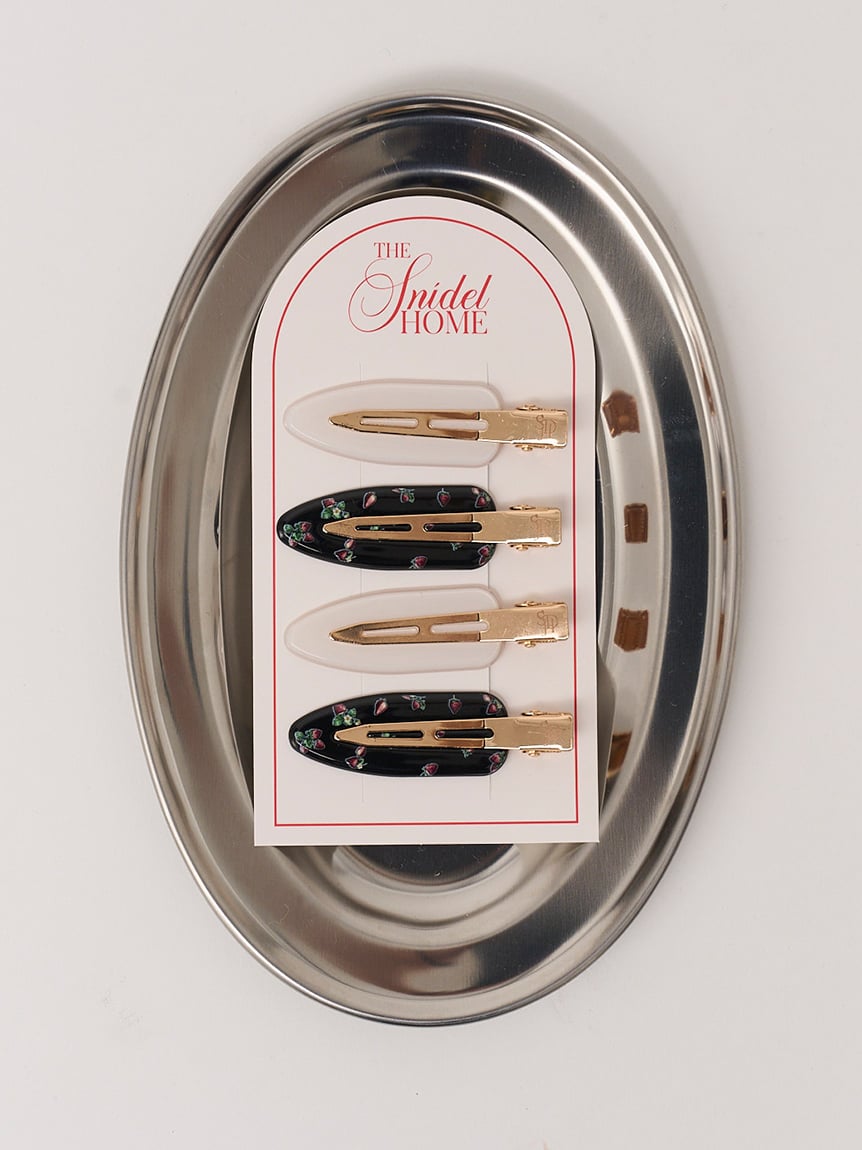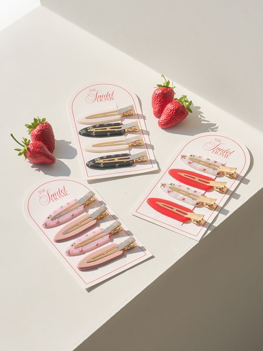 與居家服相呼應的多汁草莓圖案,搭配純色設計,組成4入組草莓圖案髮夾。