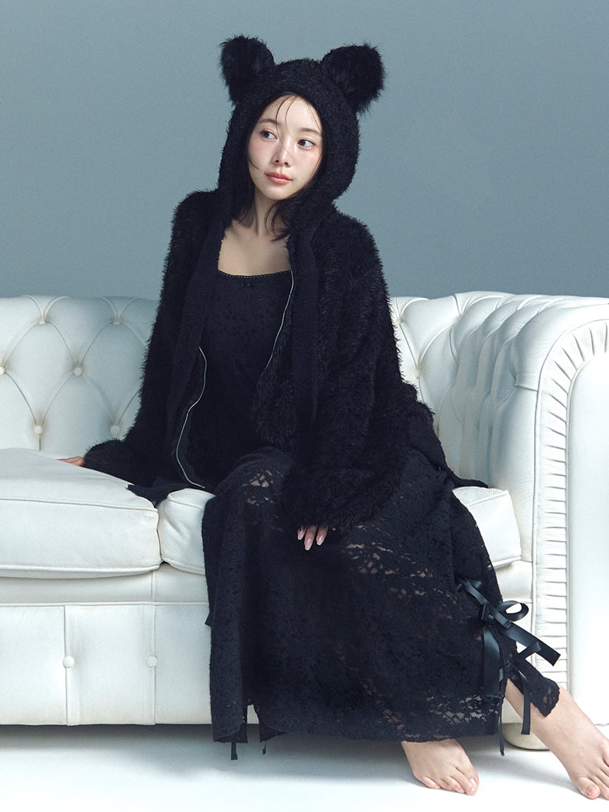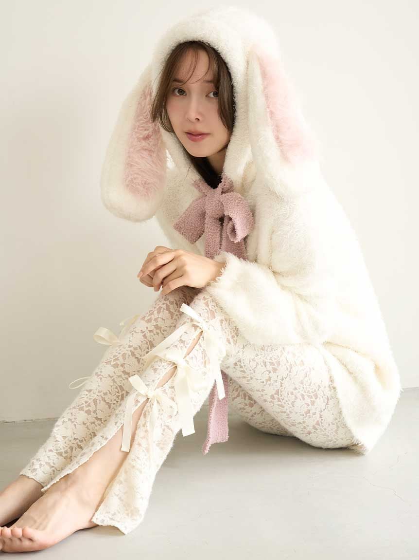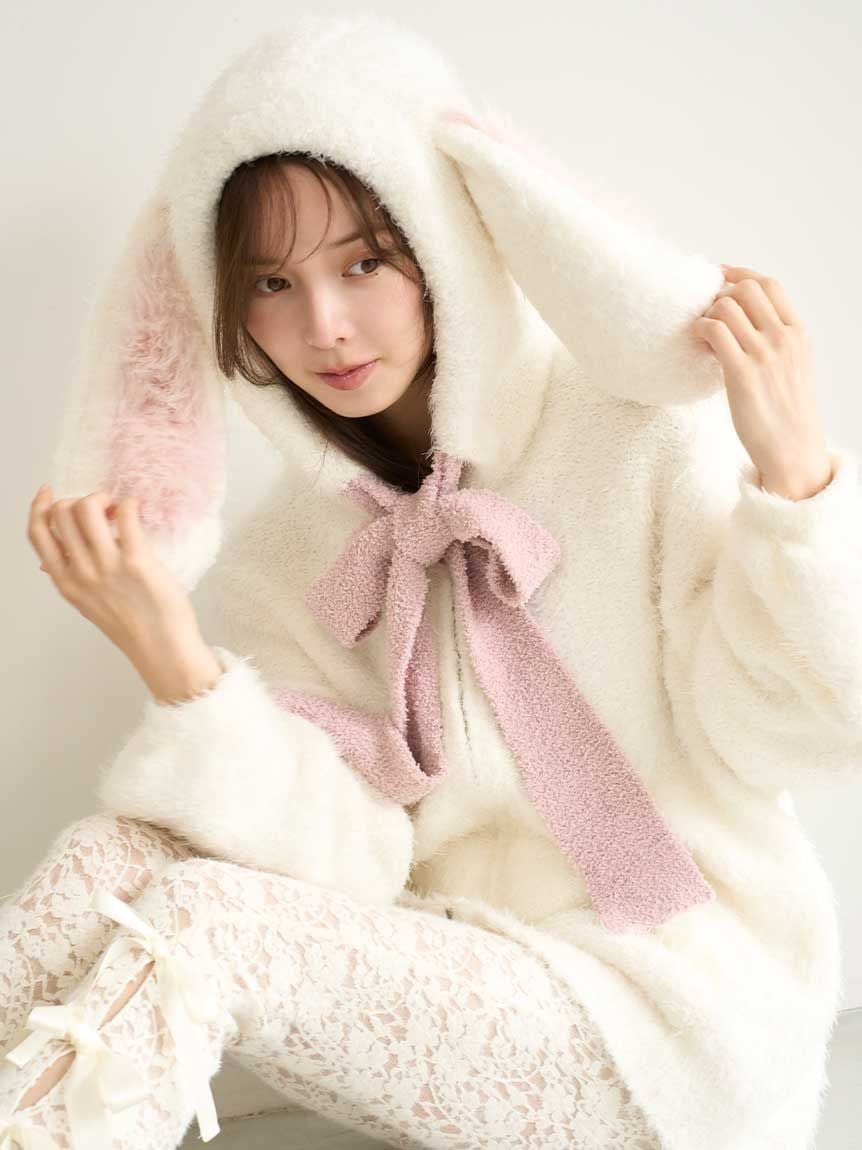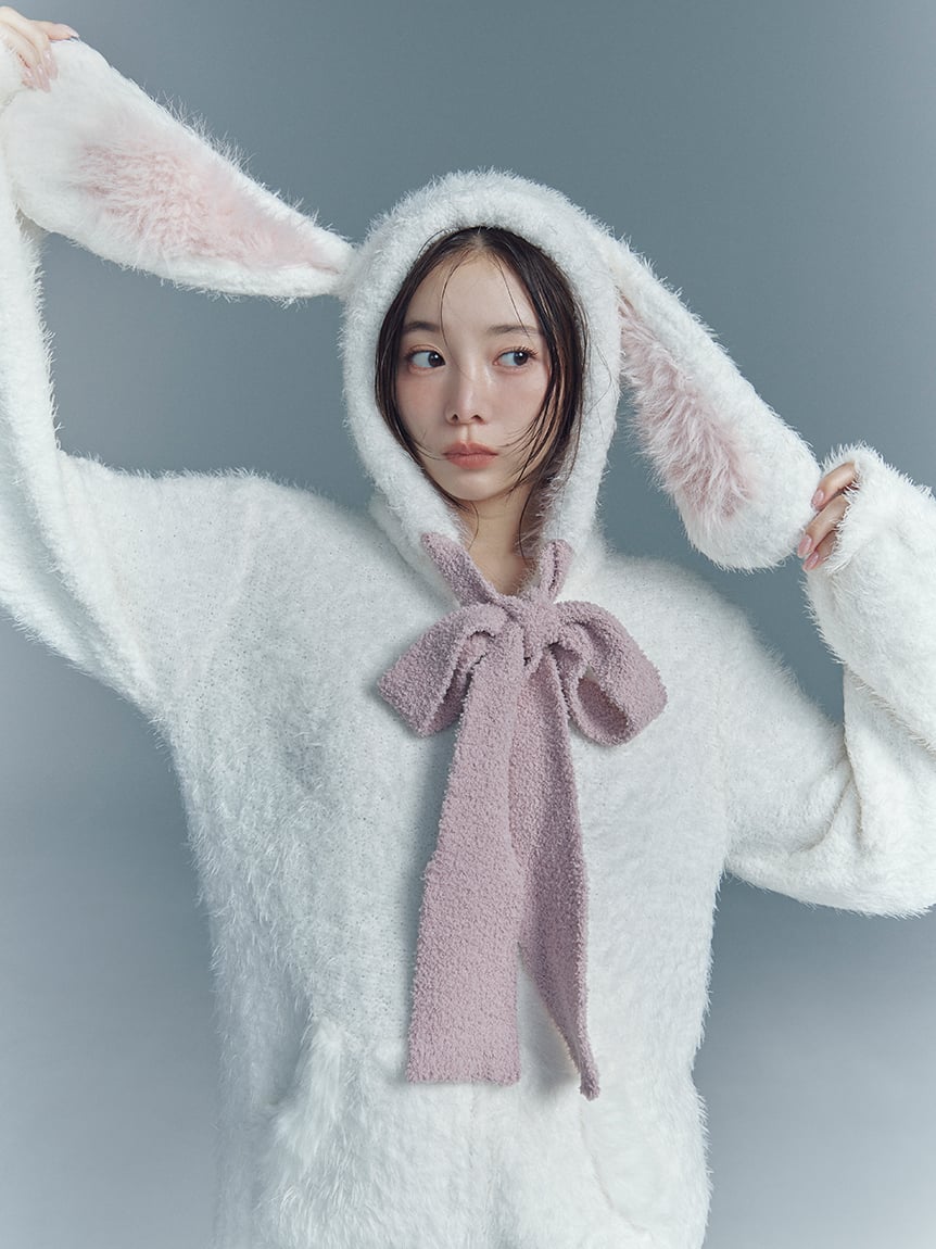 以魔法兔與黑貓為主題,推出附耳造型的連帽上衣,並結合蝴蝶結與蕾絲針織細節,展現夢幻魅力。