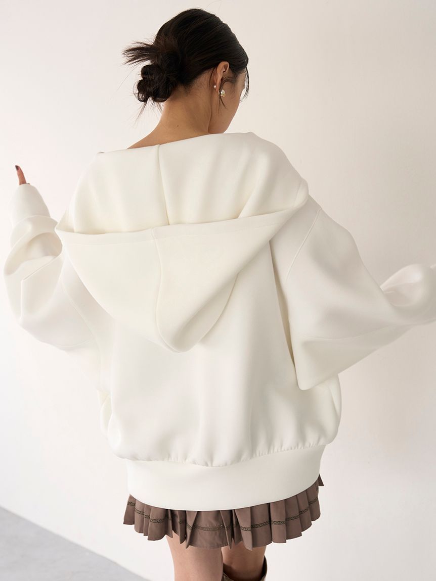 採用柔軟有彈性的雙層針織布製作,再次推出人氣立體連帽款。寬鬆版型巧妙修飾身形,高領與大帽兜設計增添臉部比例修飾效果。