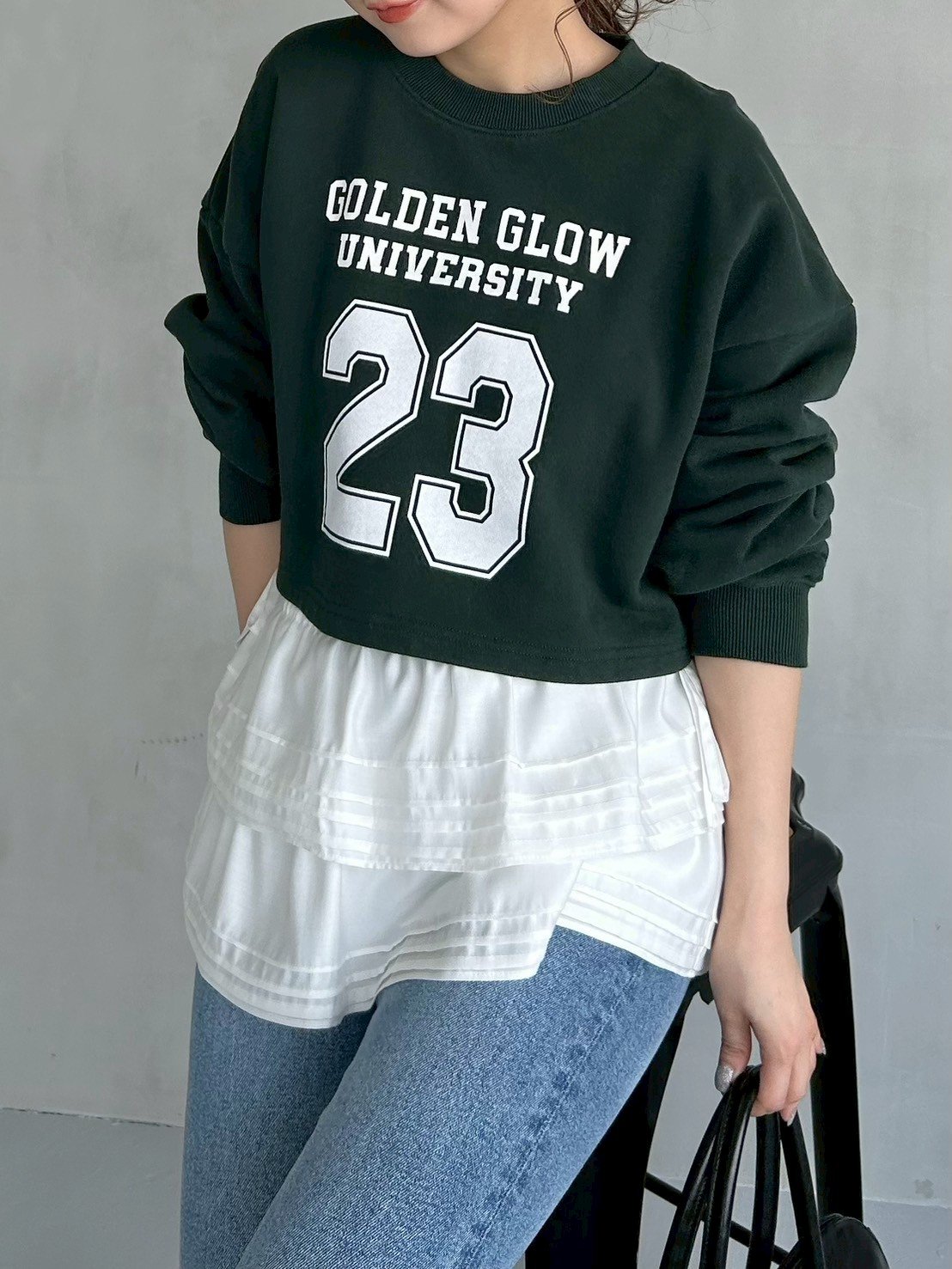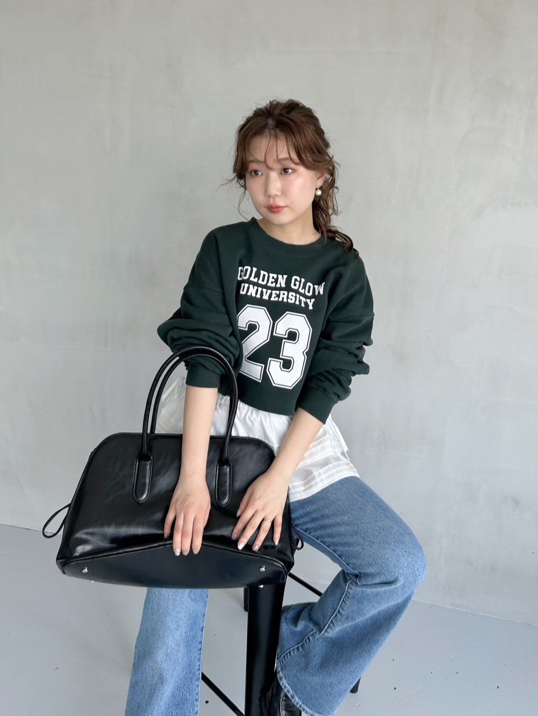 【充滿美式校園感與運動風LOGO的NUTMEG×SNIDEL聯名短版長袖上衣】