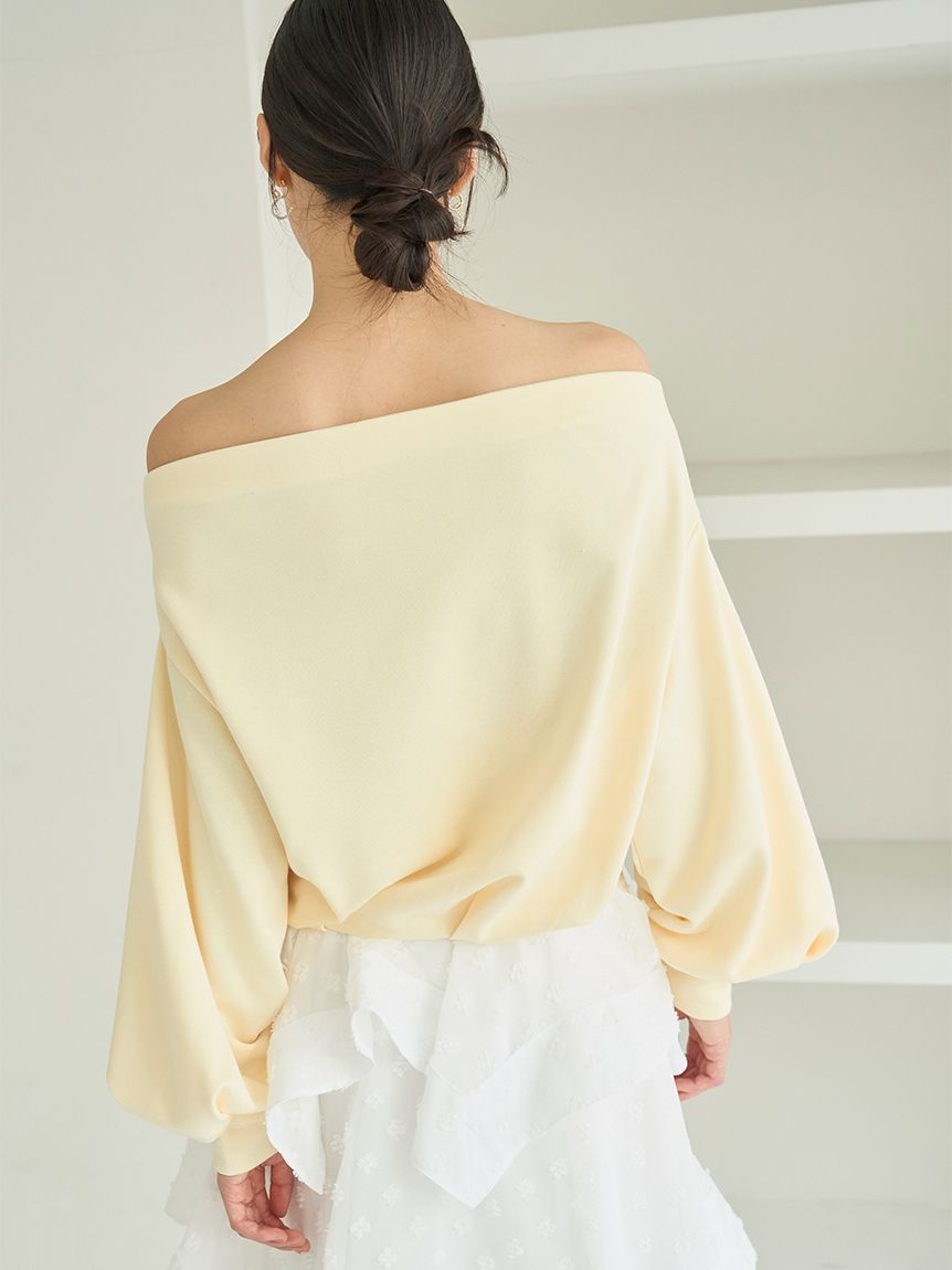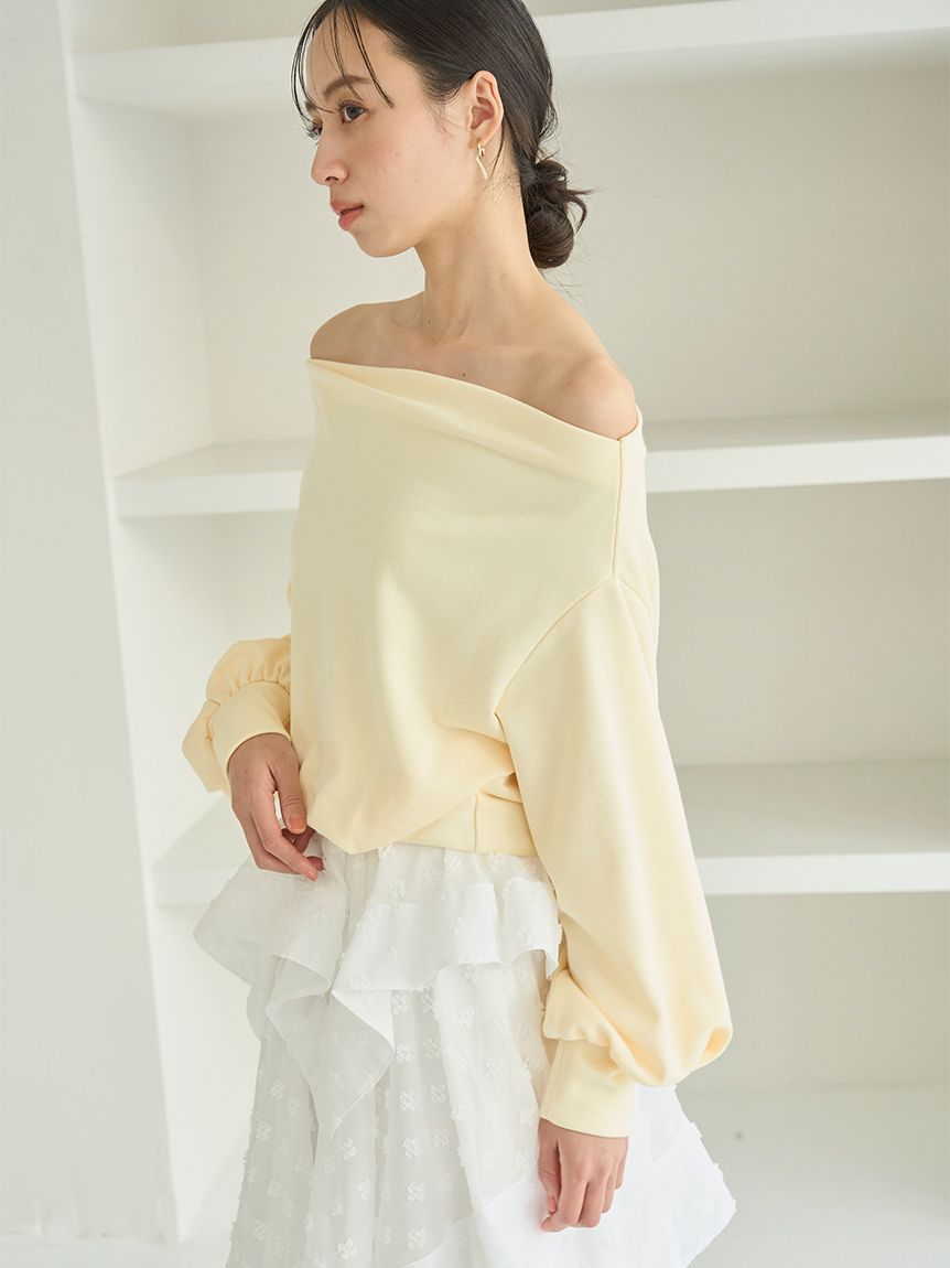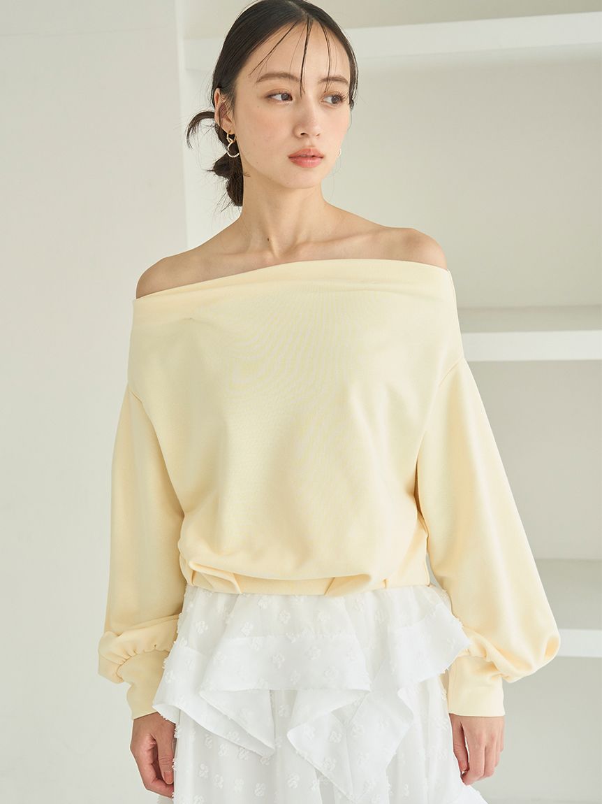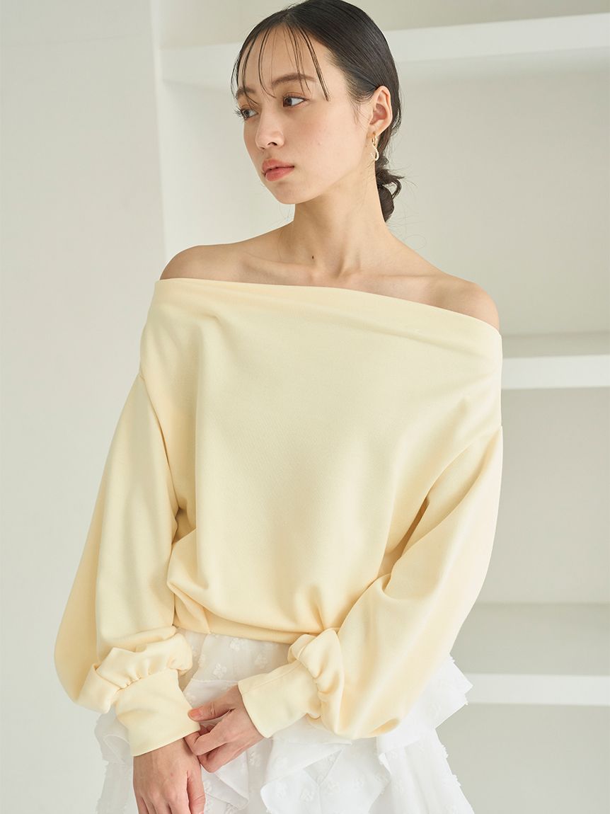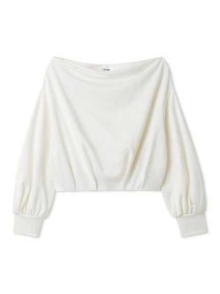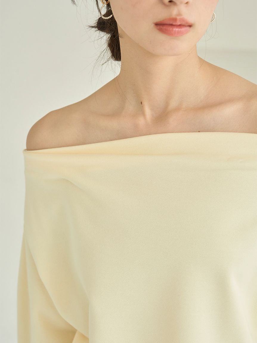【抓褶泡泡剪裁與一字肩優雅感衛衣】