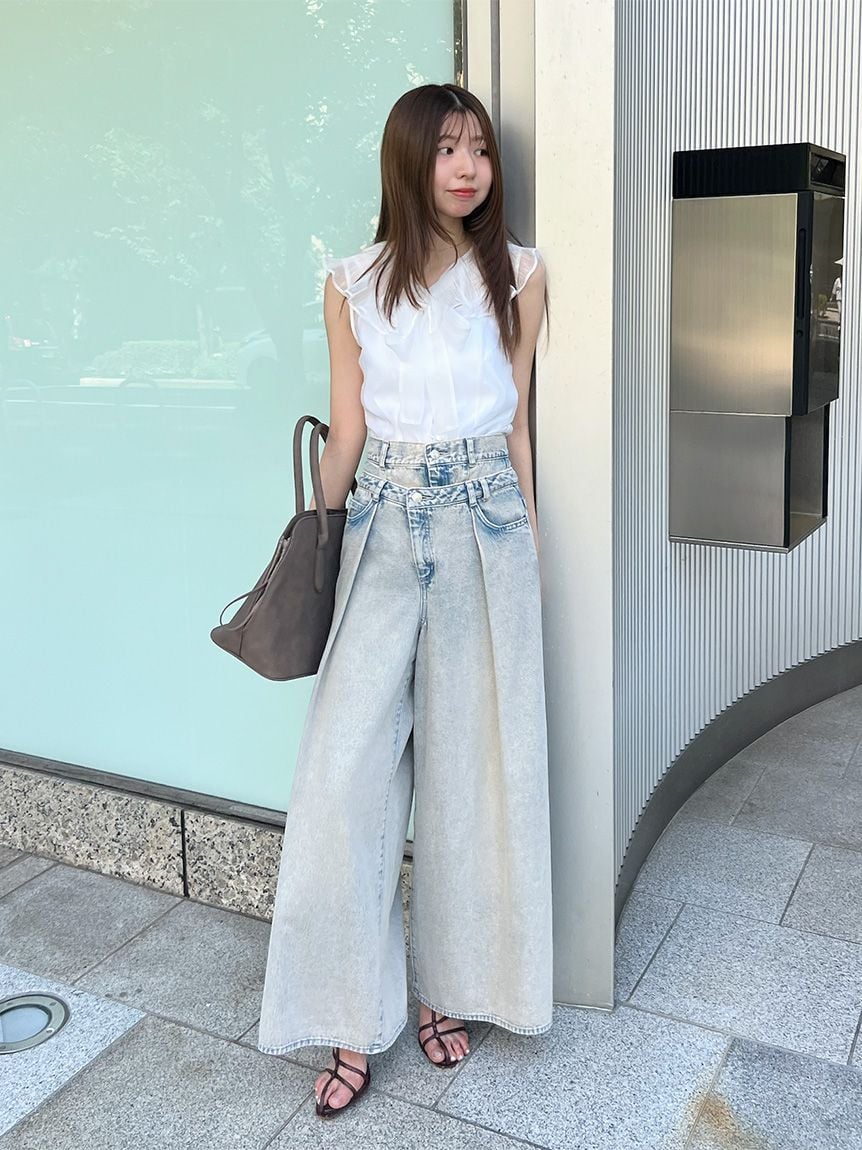提供WHT、BLK、PNK三色。選用帶光澤與透膚感的輕盈布料,呈現飄逸質感。