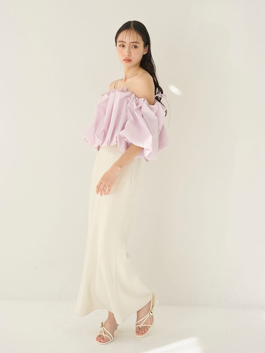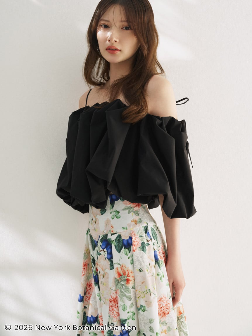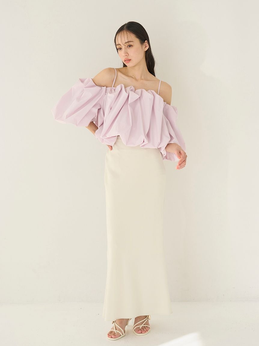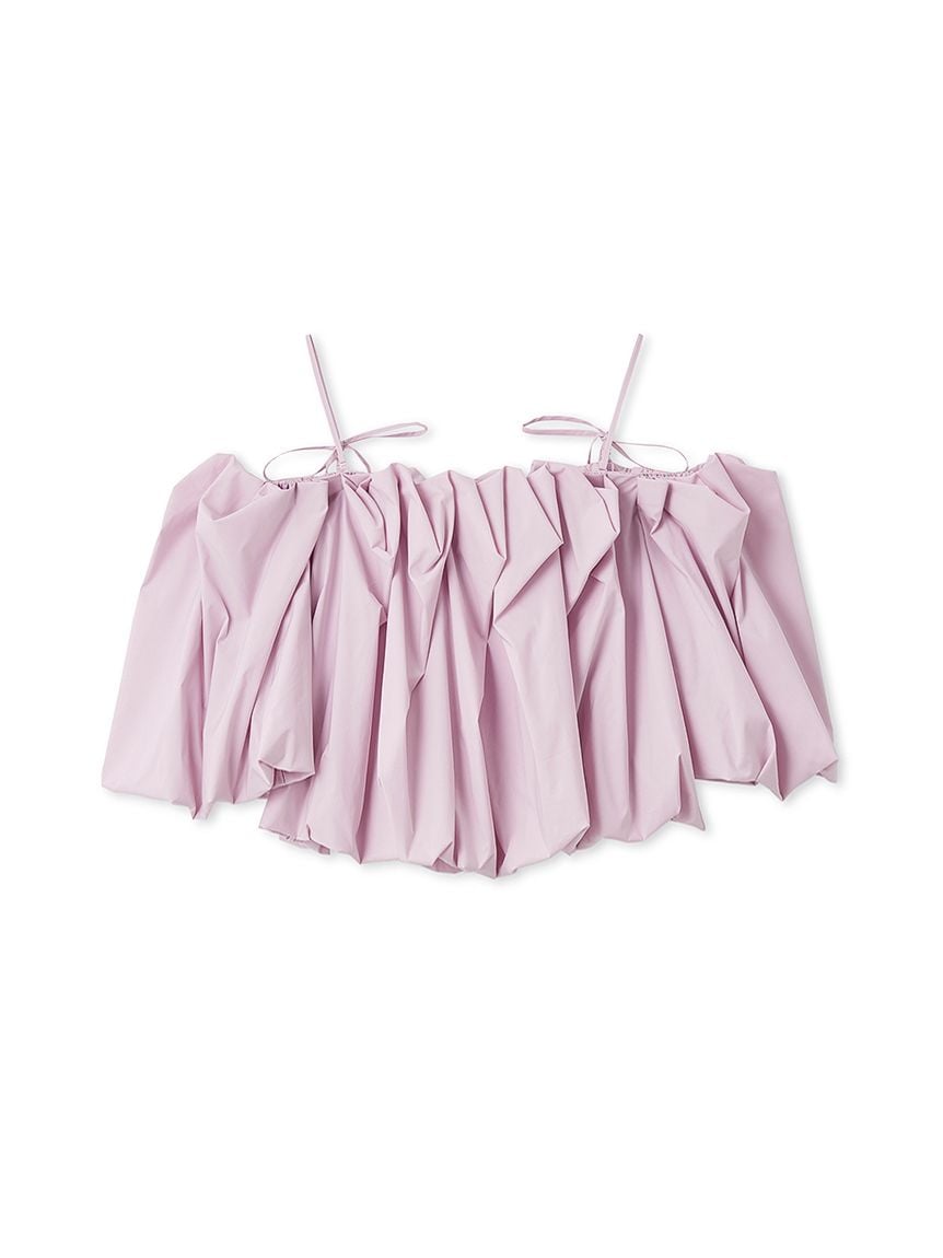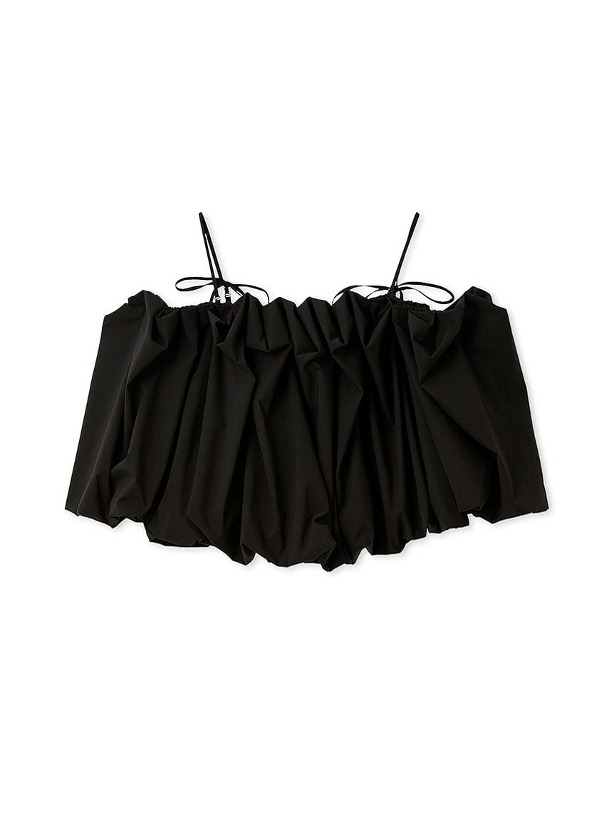 【以蓬鬆氣球輪廓的短版露肩打摺上衣,打造本季流行感】