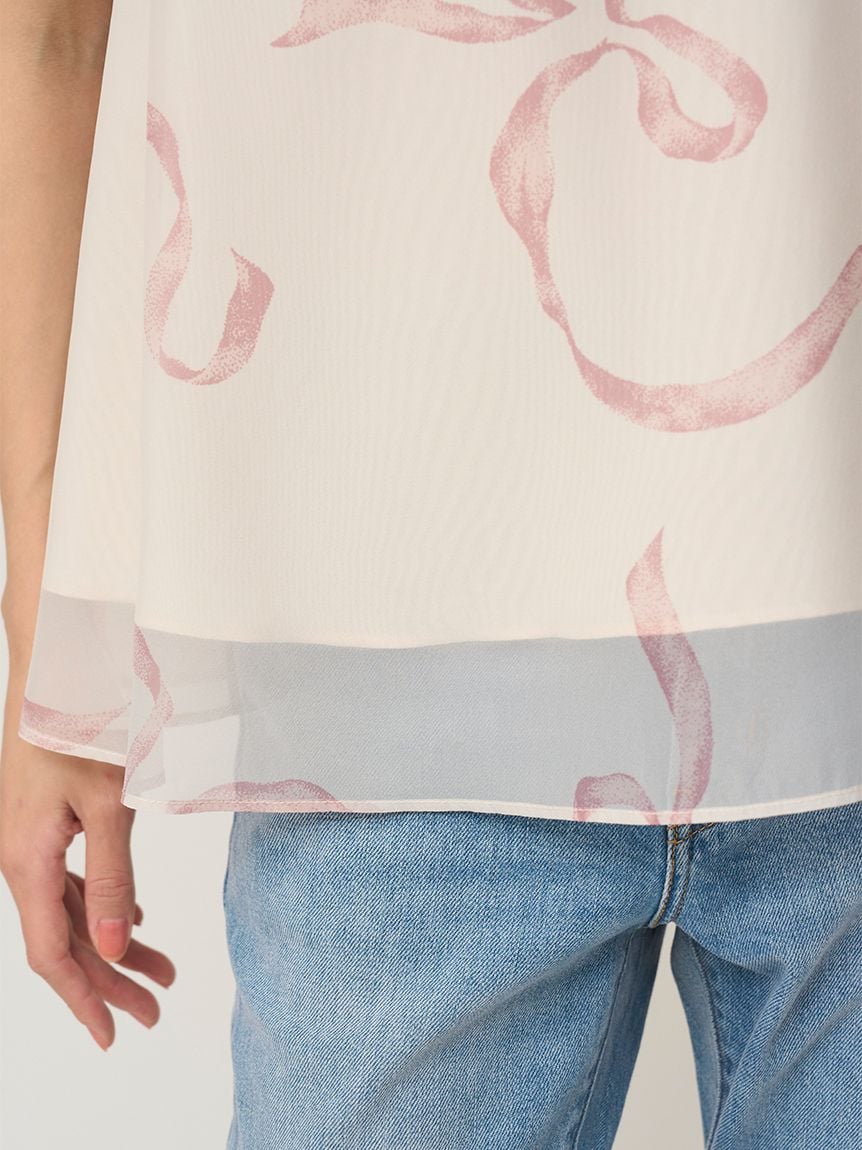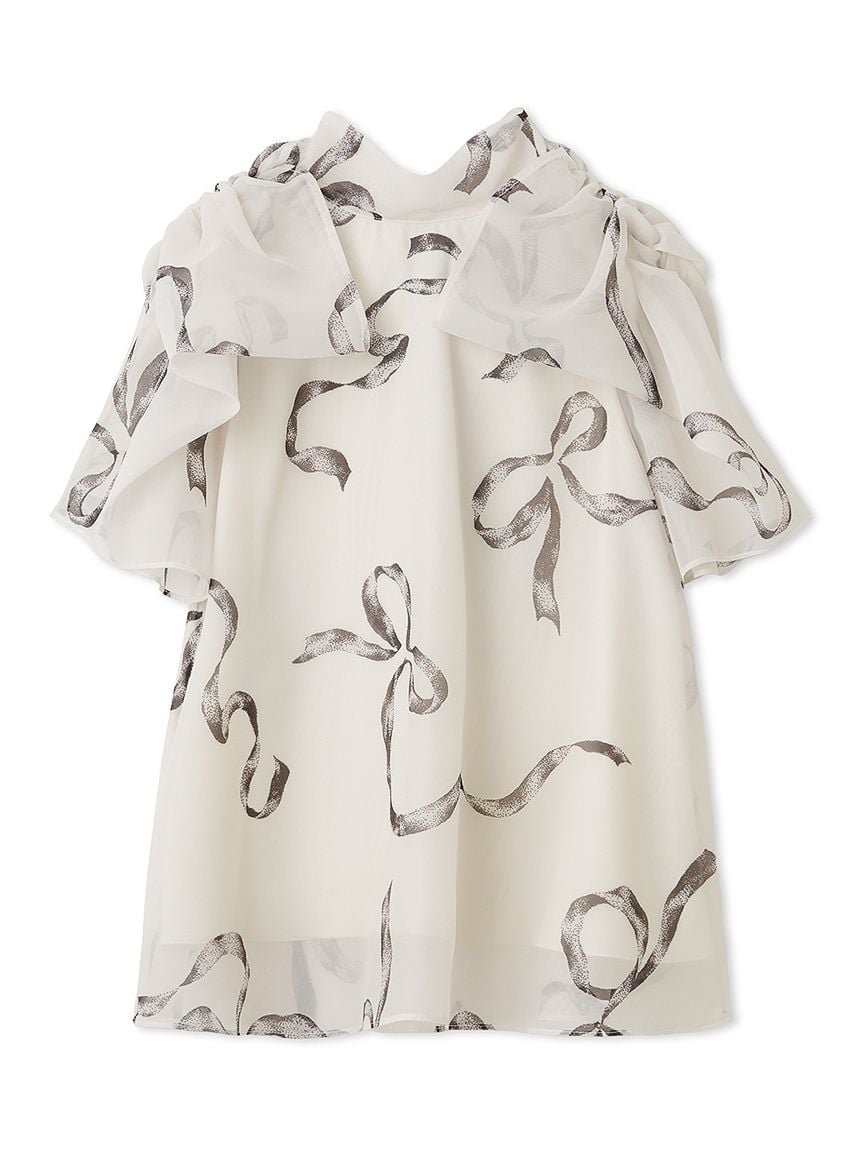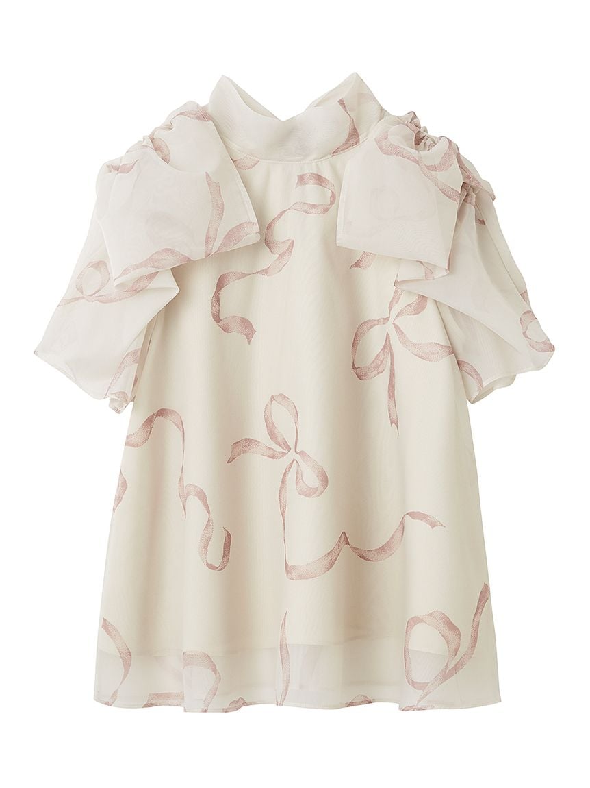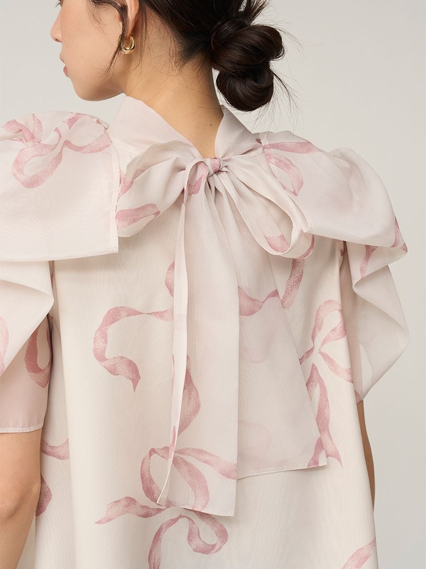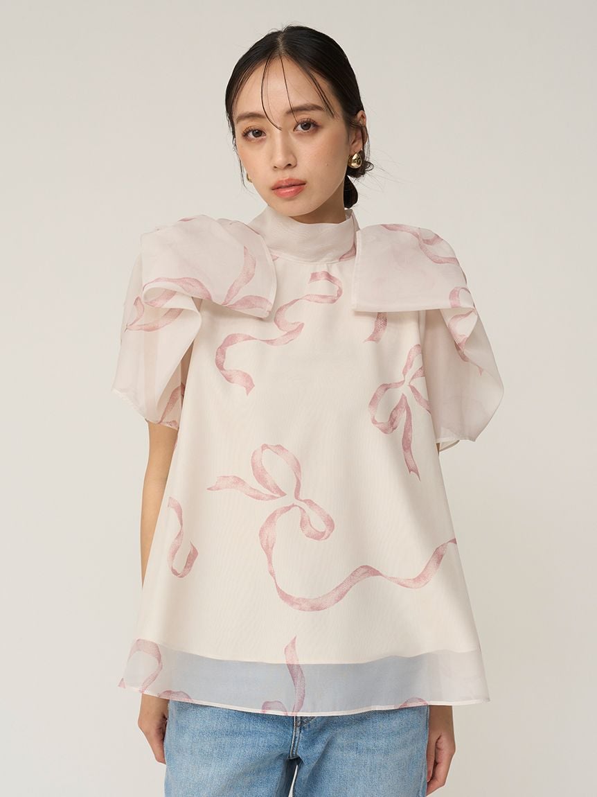 【蓬鬆立體蝴蝶結風袖設計,展現柔美華麗感的人氣歐根紗透膚上衣】