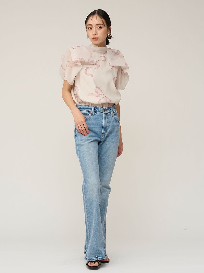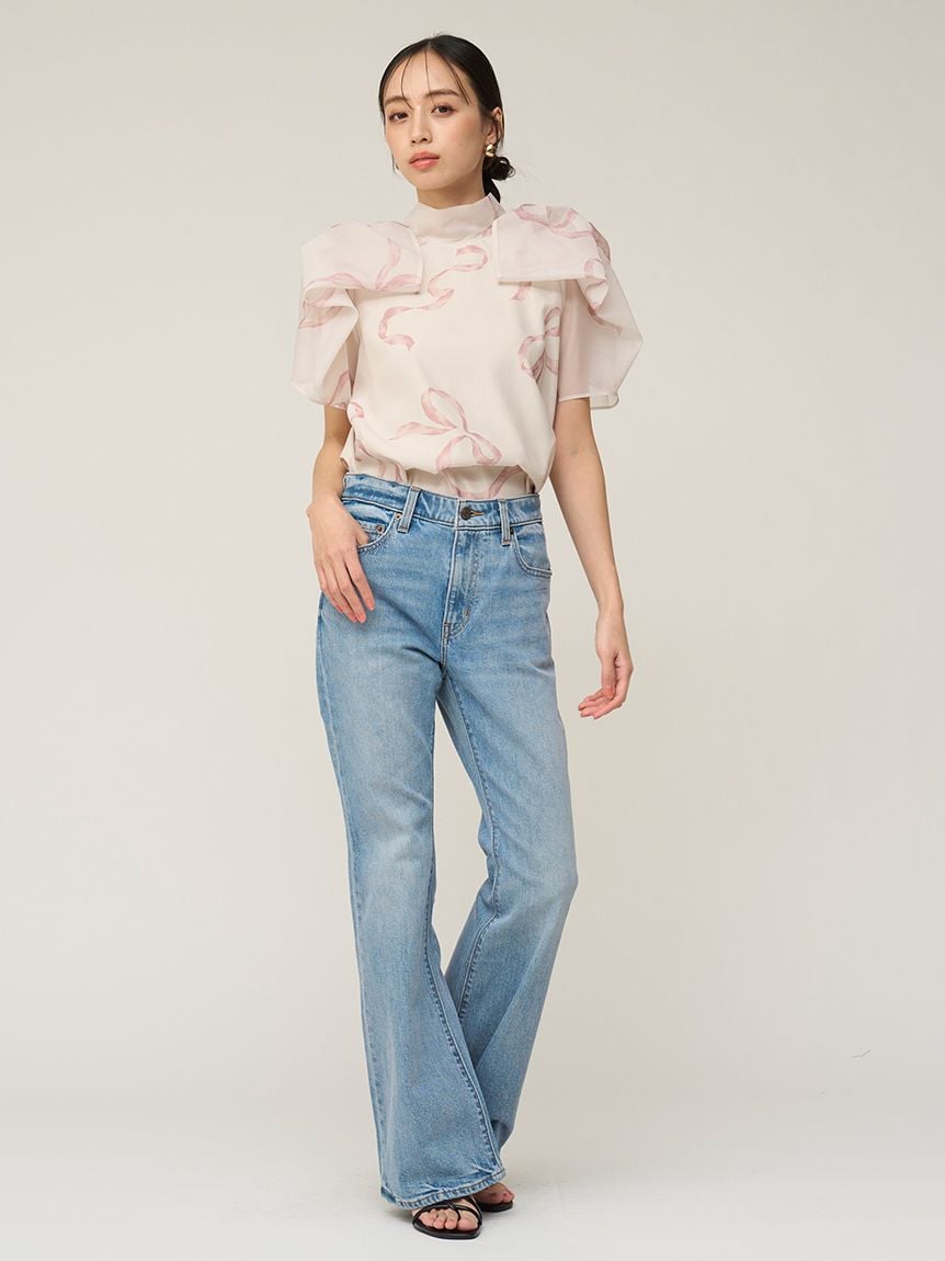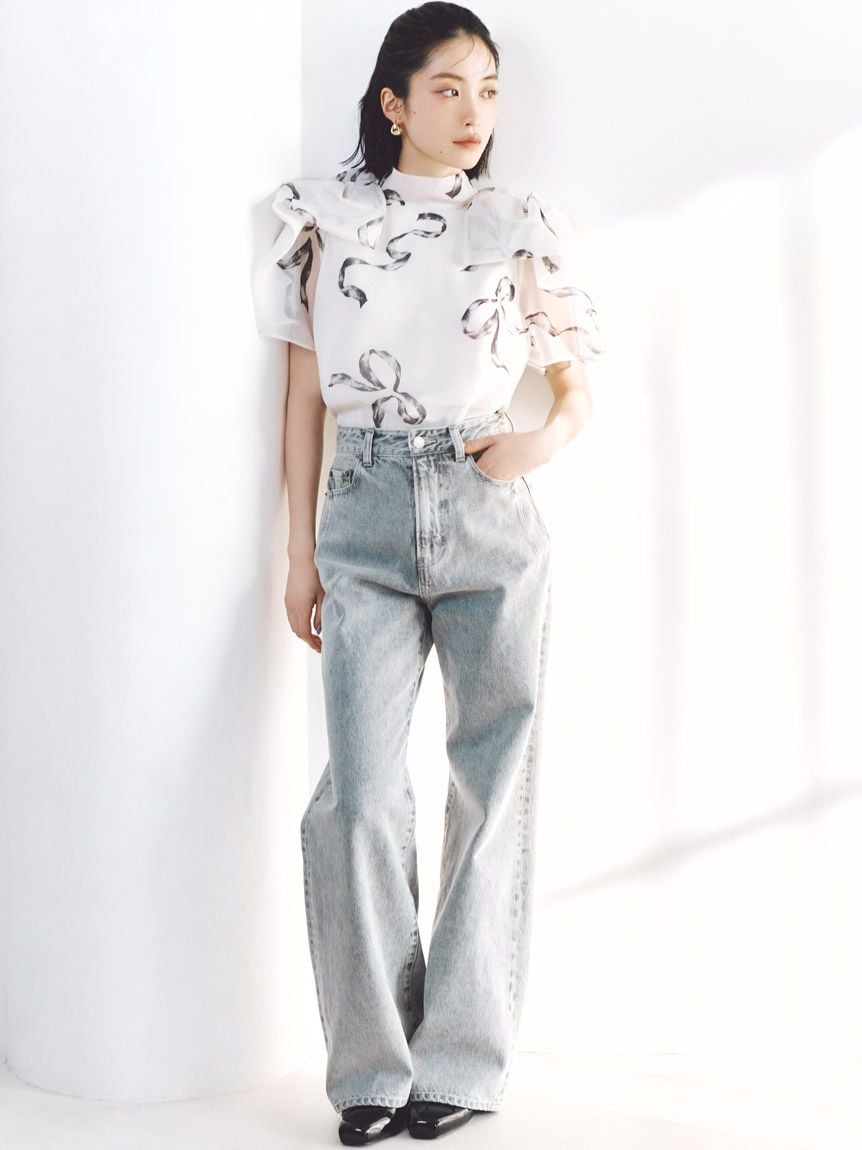 採用輕盈且帶有透膚感的歐根紗材質,是SNIDEL每季都廣受歡迎的歐根紗透膚上衣。