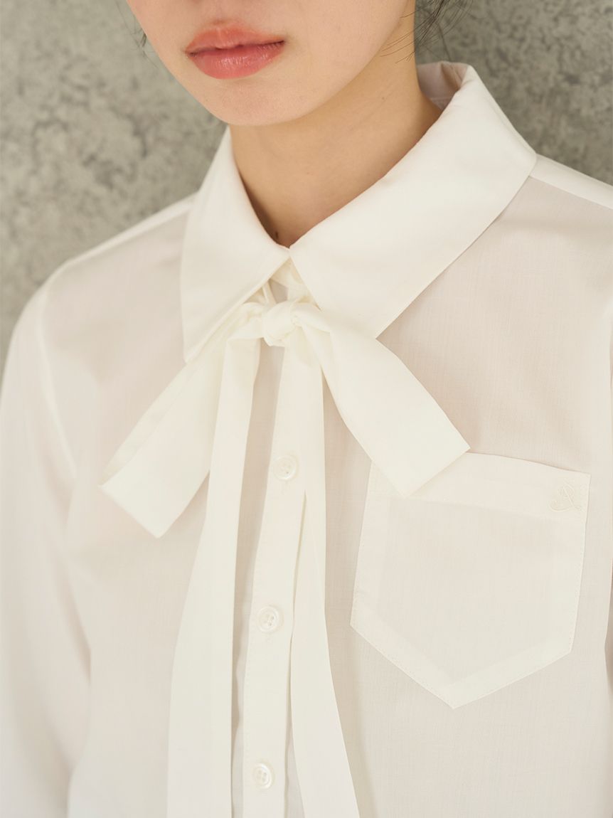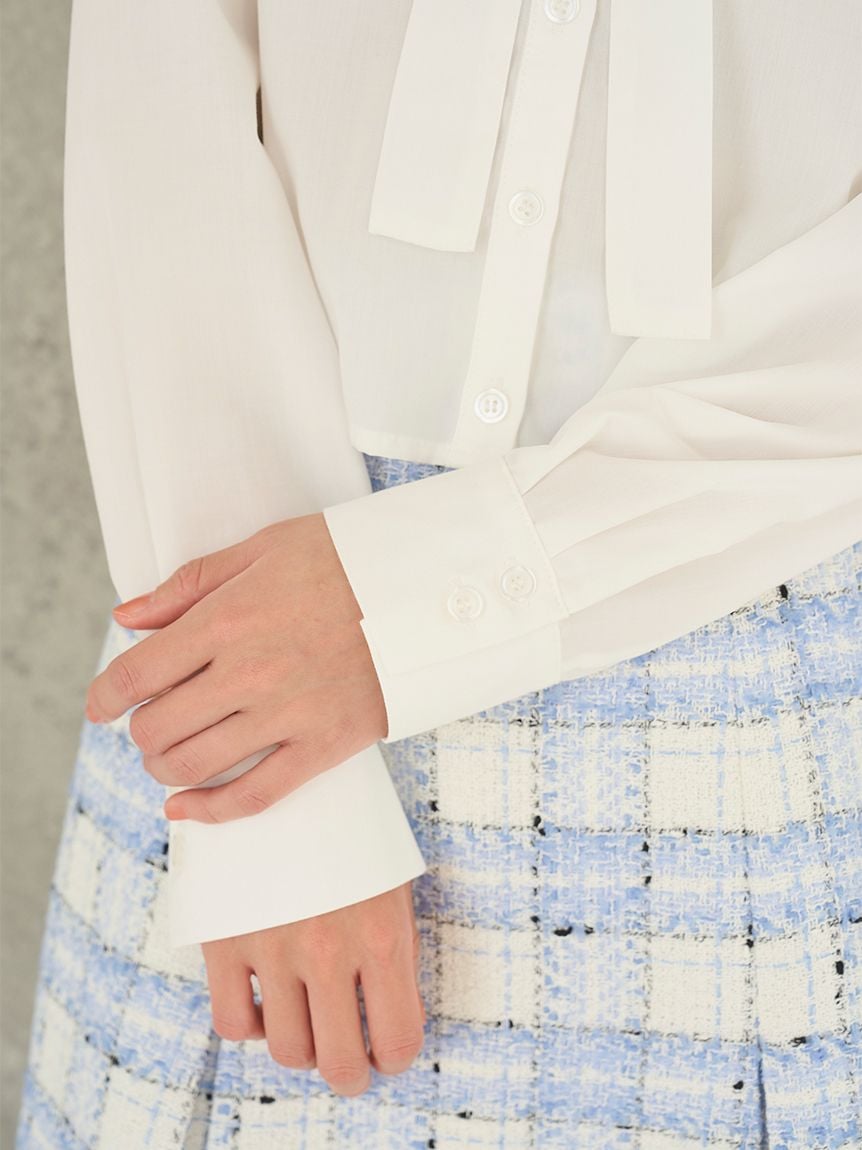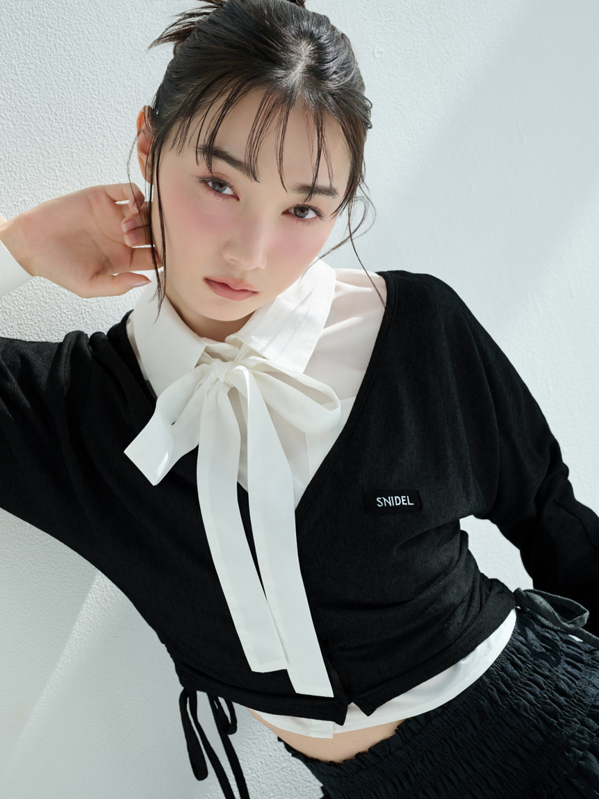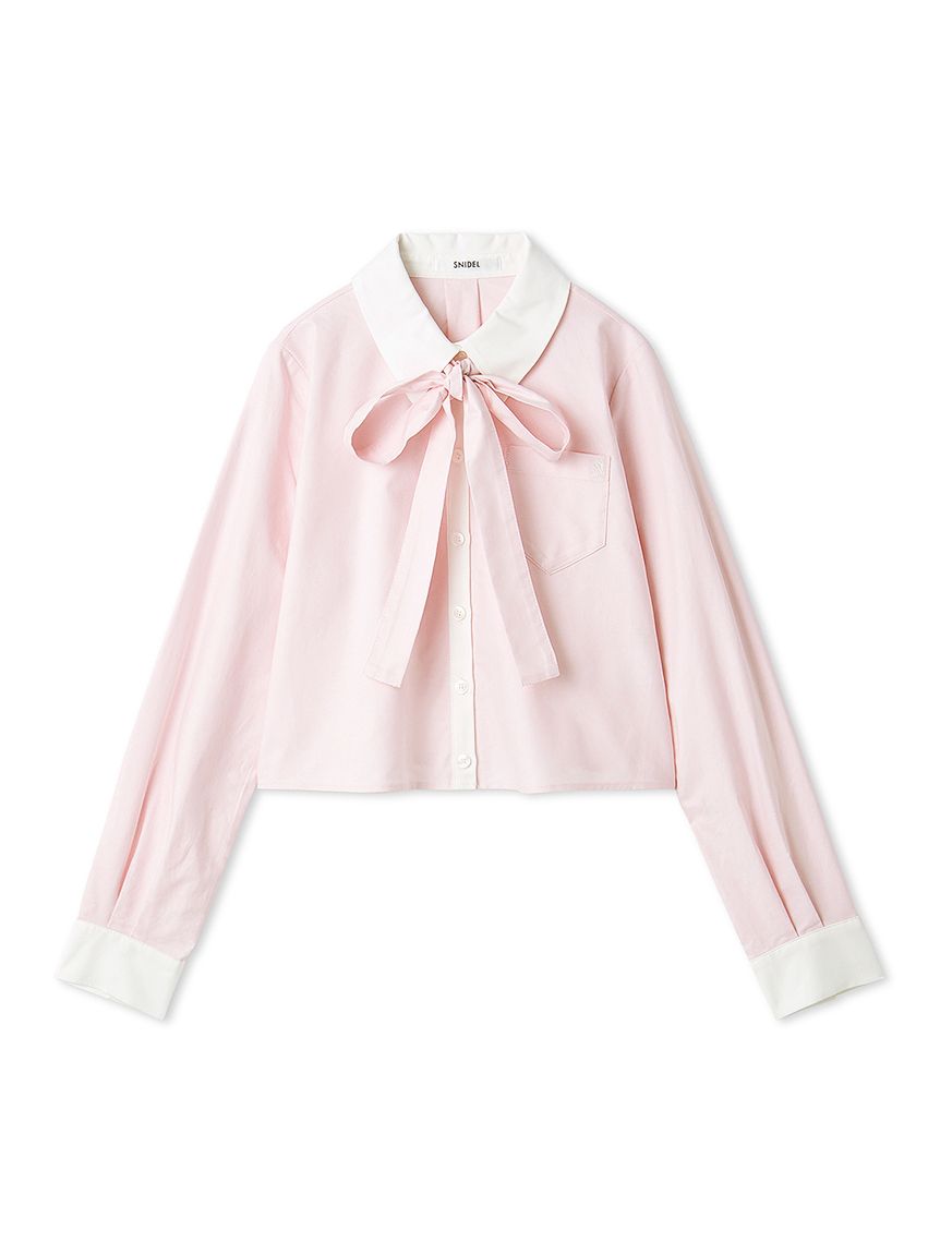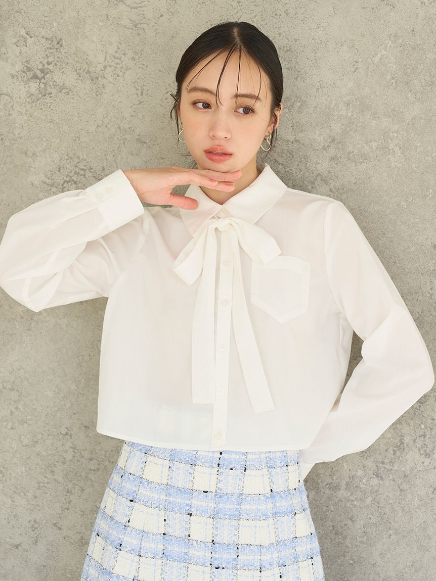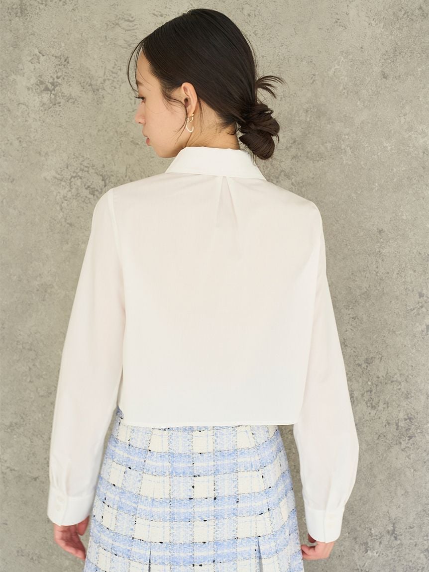 短版設計襯衫搭配同材質蝴蝶結,簡約而時尚。