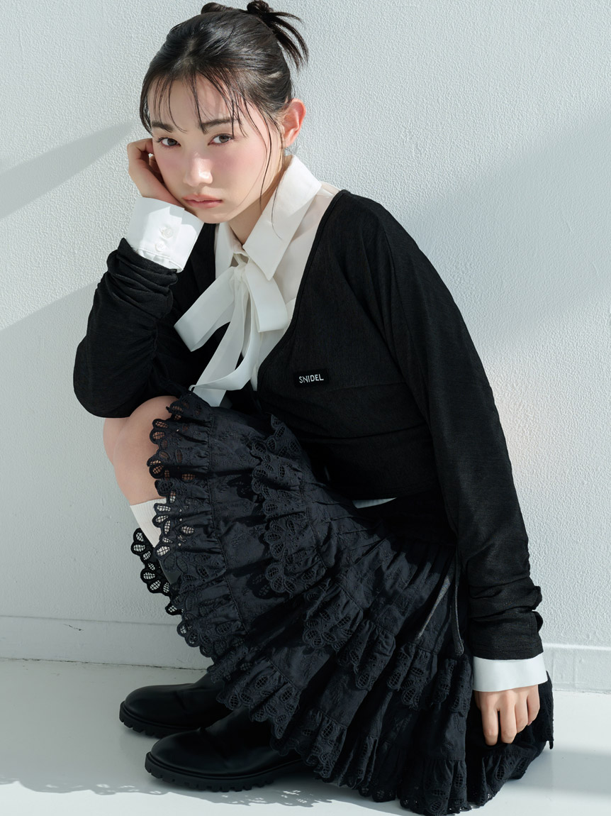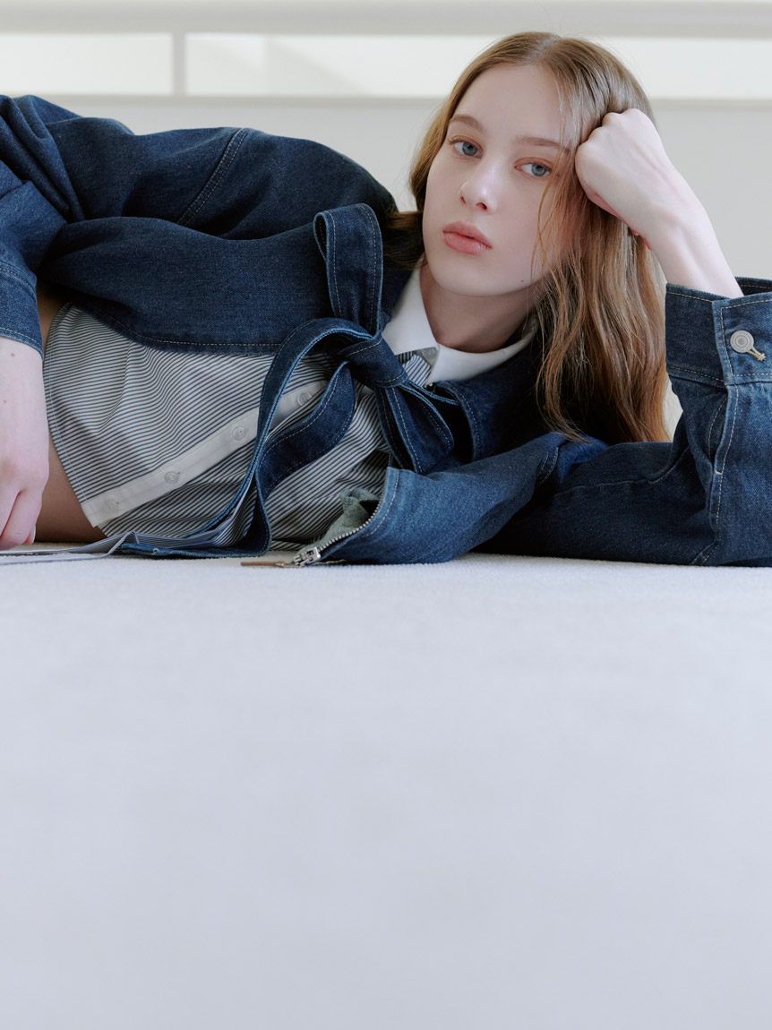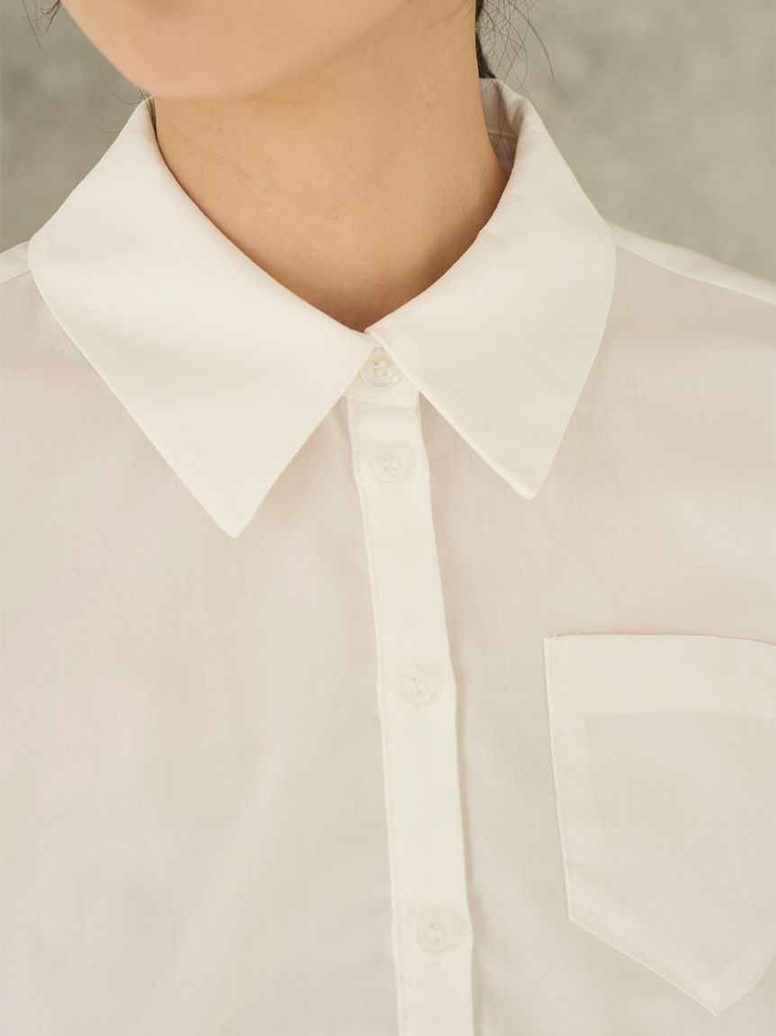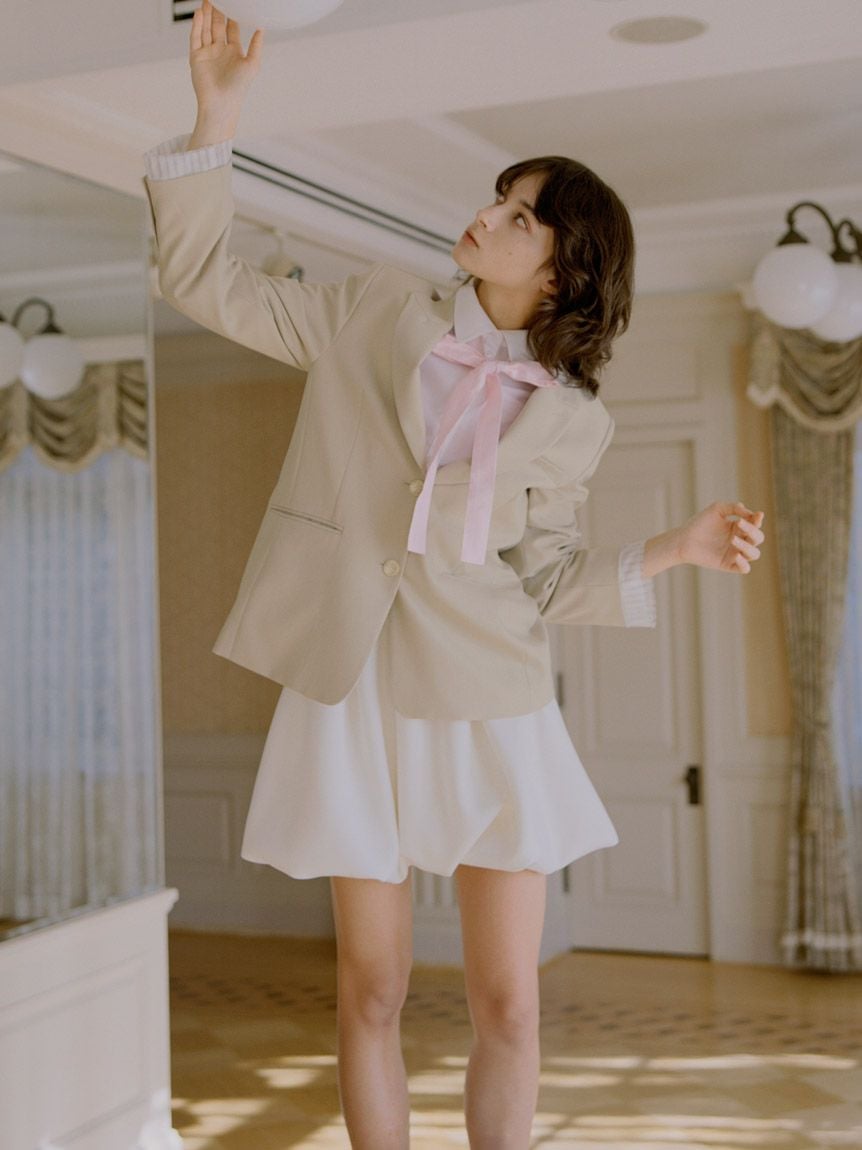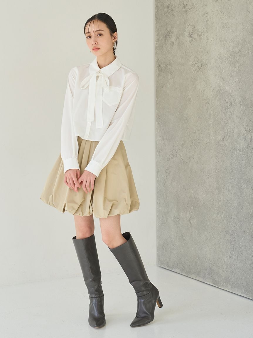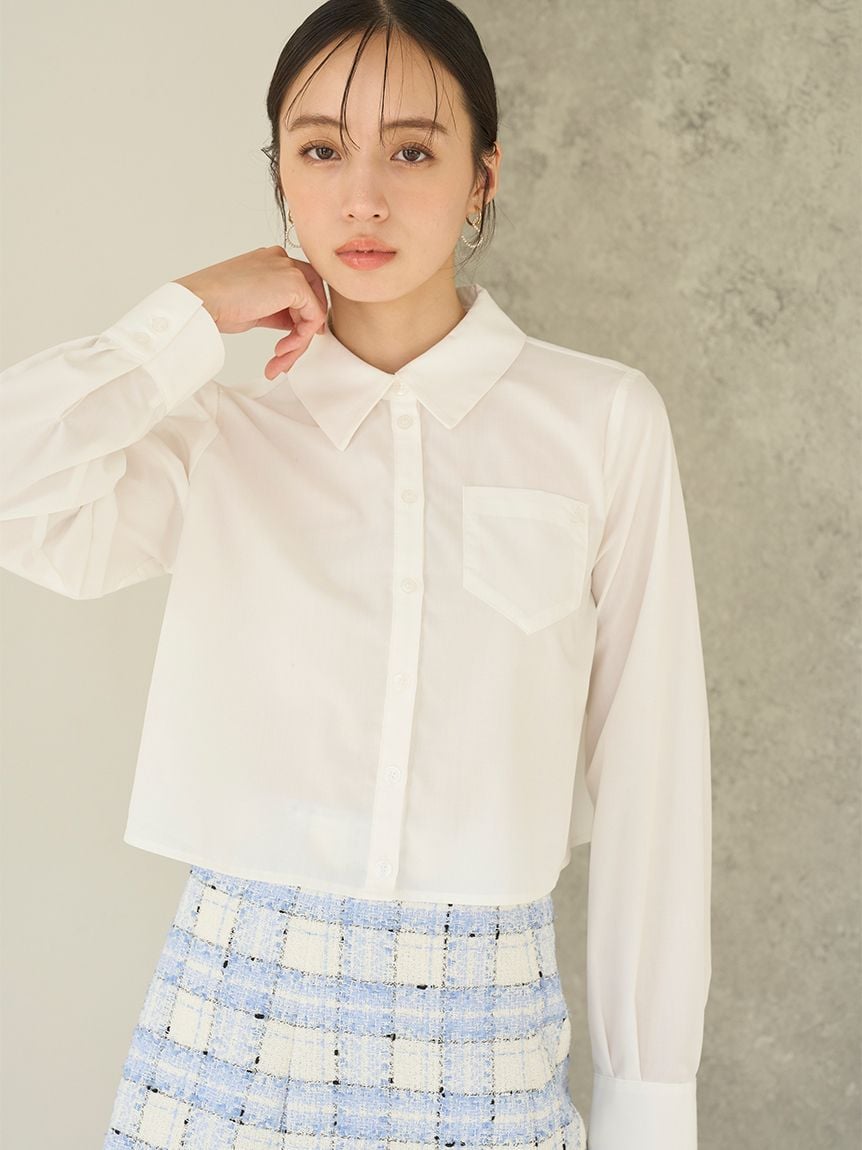 短版設計襯衫搭配同材質蝴蝶結,簡約而時尚。