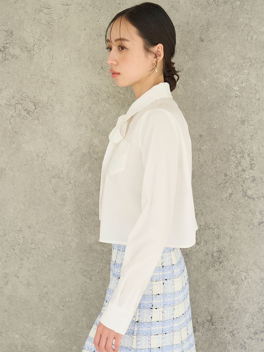 【短版剪裁的蝴蝶結襯衫】