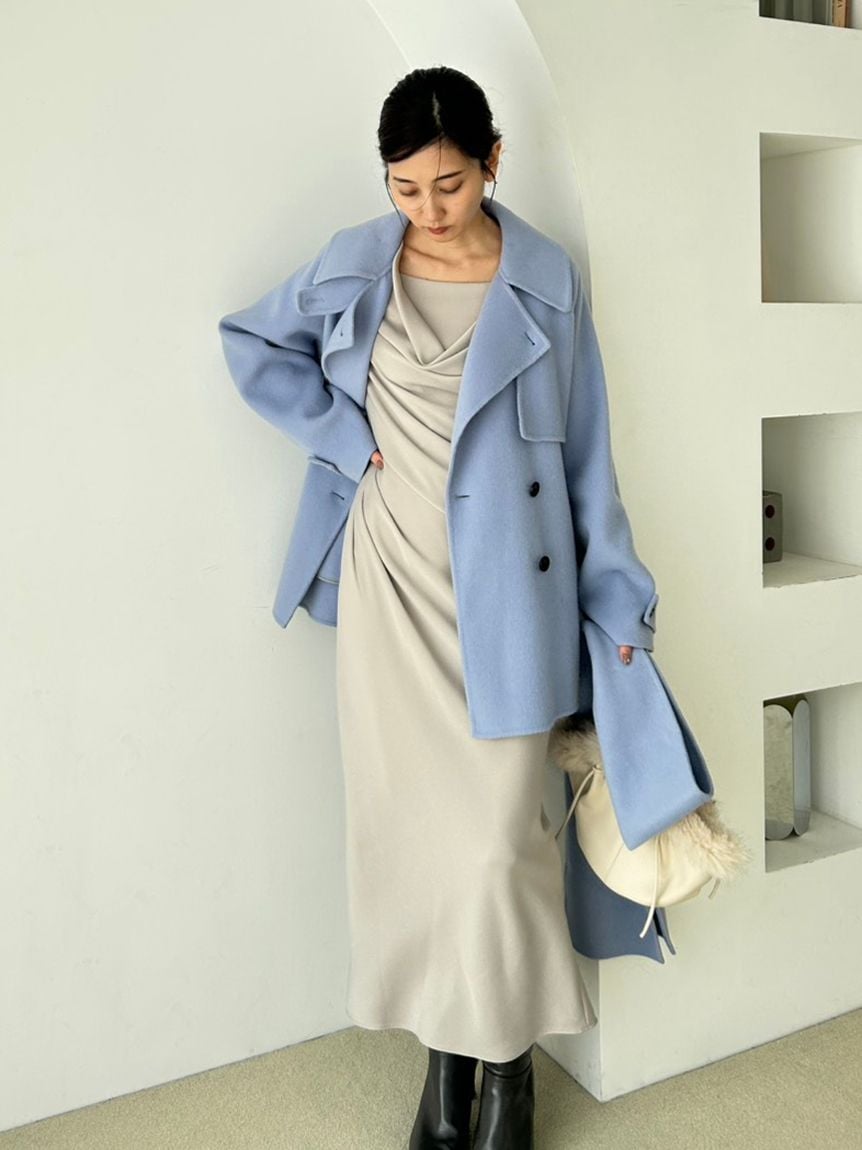 另附同材質腰帶,可依造型需求繫出腰線,從自然展開的A字輪廓,變化為帶有收束感的Fit & Flare線條,穿搭表情更加多元。