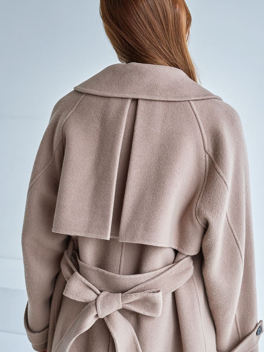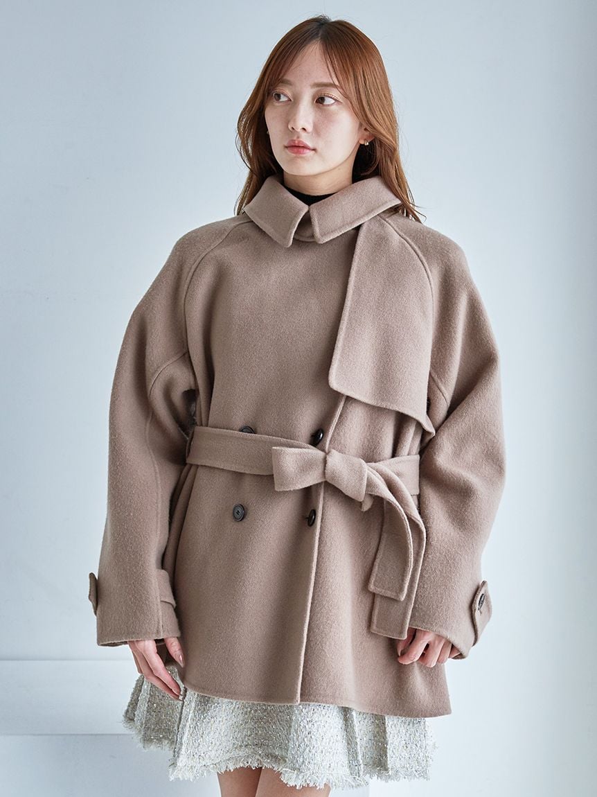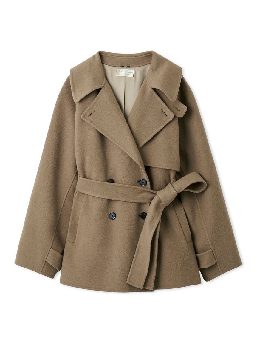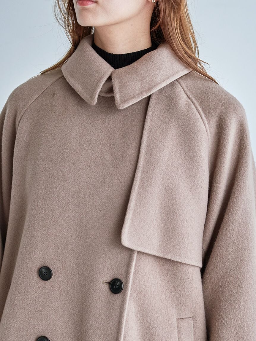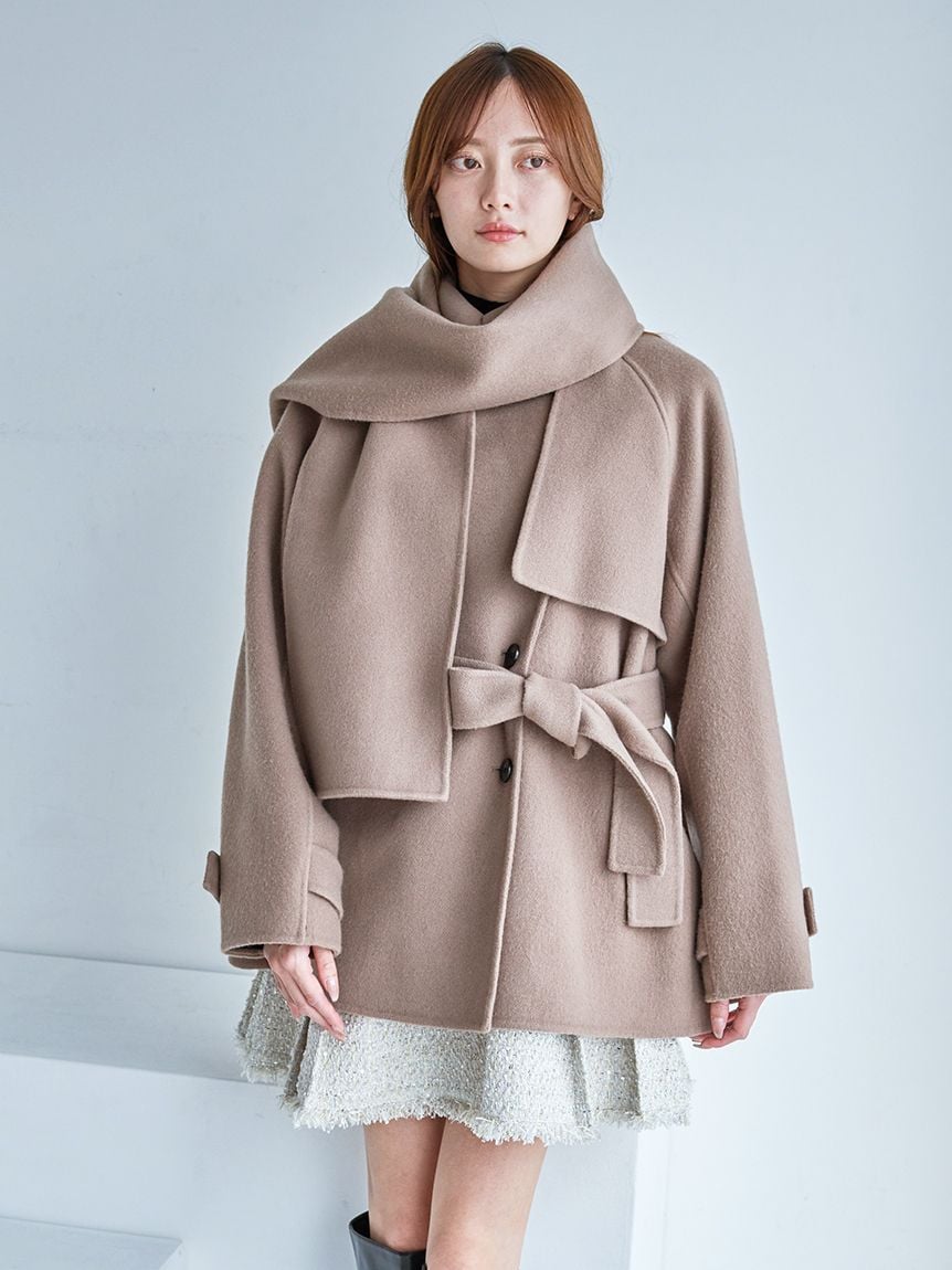 【「SNIDEL High Quality Line」日本製雙面羊毛素材。附圍巾立領中長版外套】