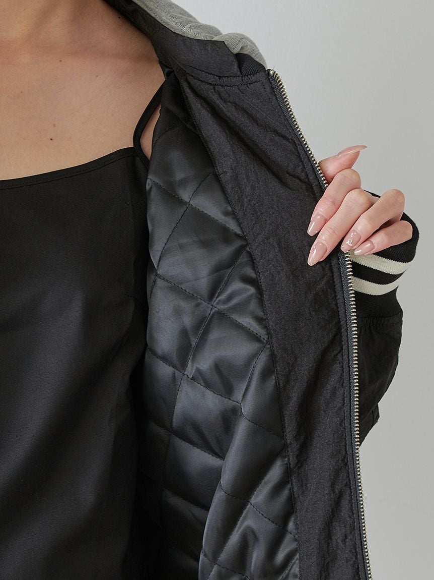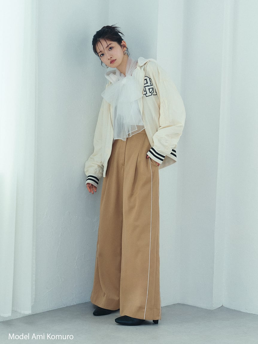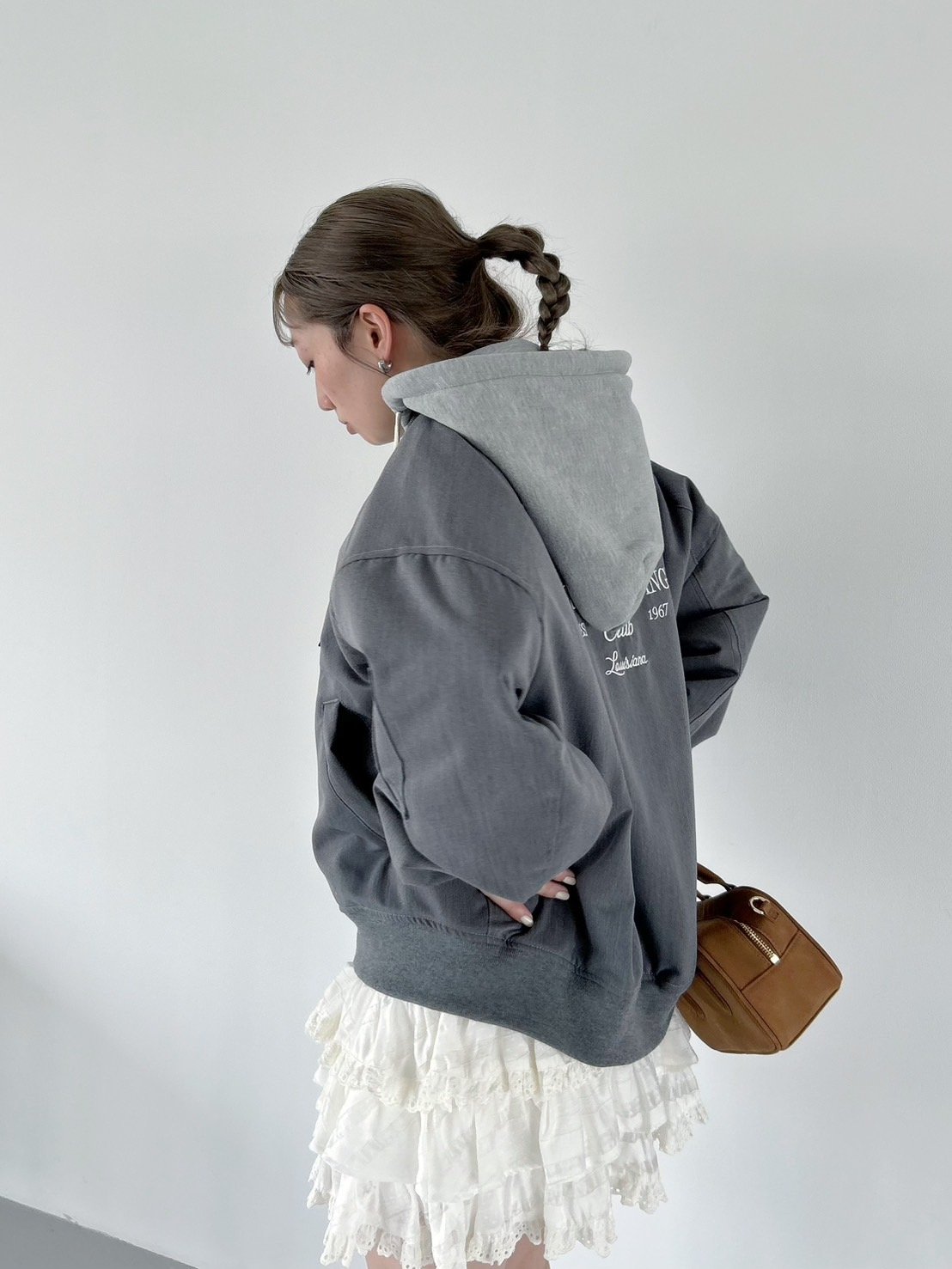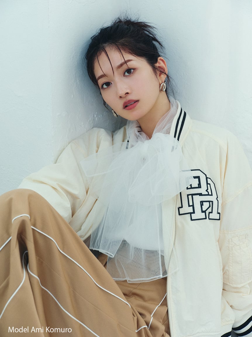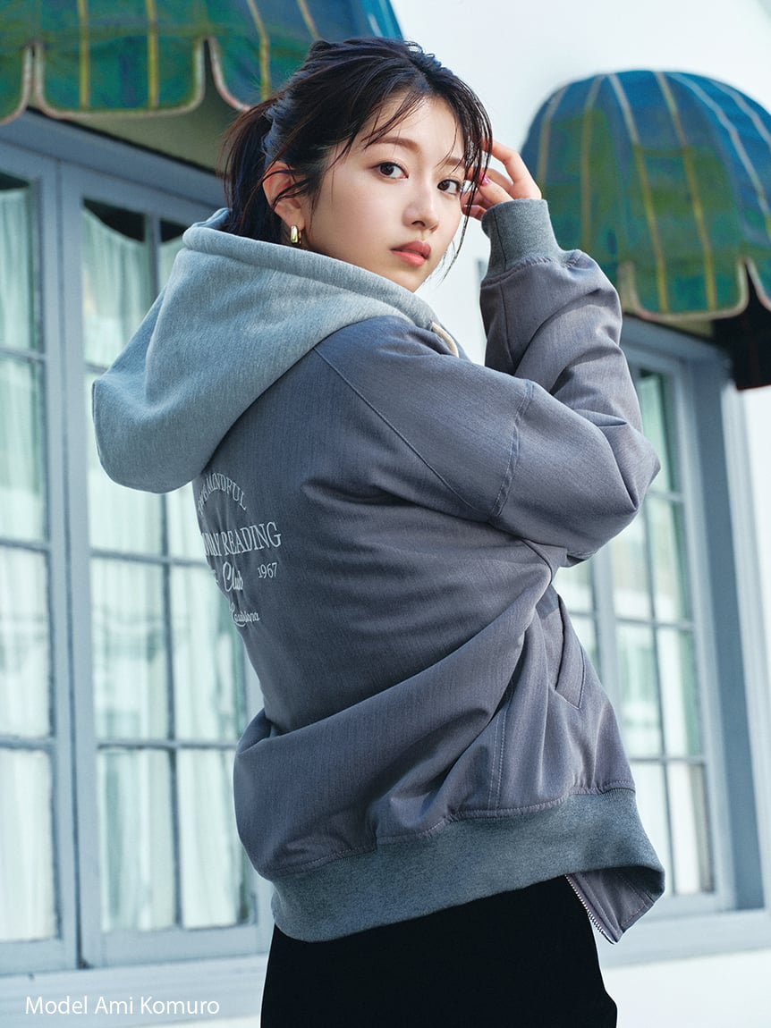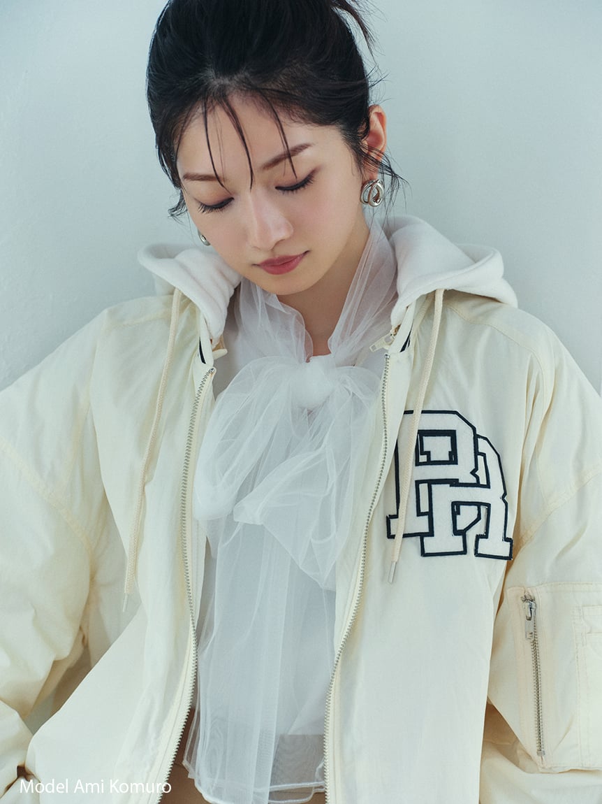 「NUTMEG」自1980年代起便打造美國授權商品,與「SNIDEL」合作推出的連帽棒球外套華麗登場。寬鬆版型帶來男友風感,展現今季街頭時尚氛圍。象牙白與黑色採微光澤尼龍面料,灰色則以雅致的西裝面料打造;連帽可拆卸,巧妙呈現如同將帽T與外套疊穿的造型感。
