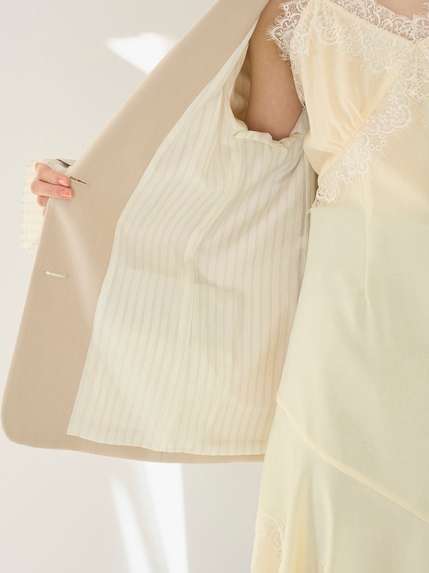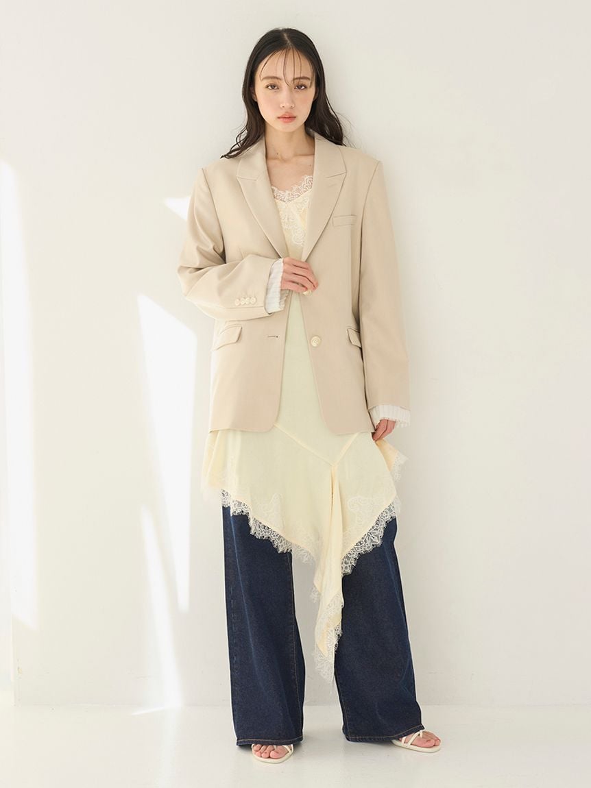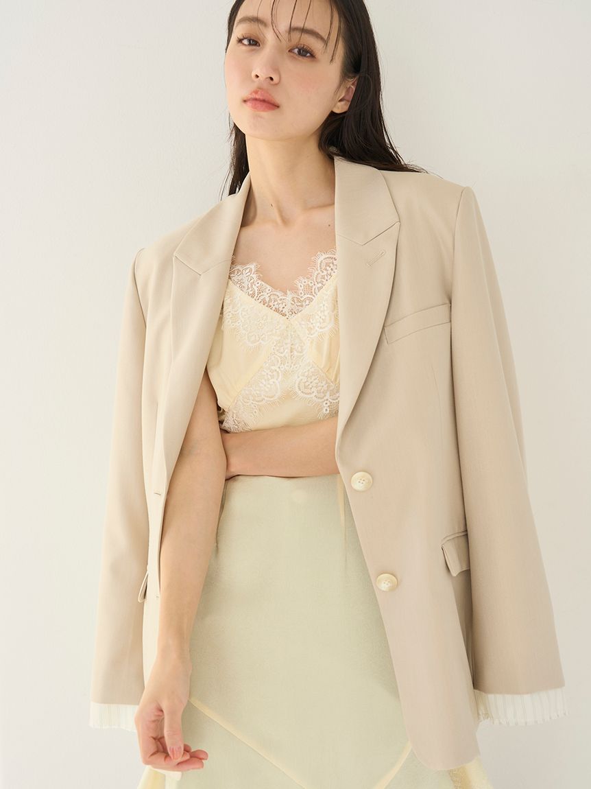 也推薦搭配帶有輕盈感的蕾絲邊緞面吊帶上衣(SWFB26167)。