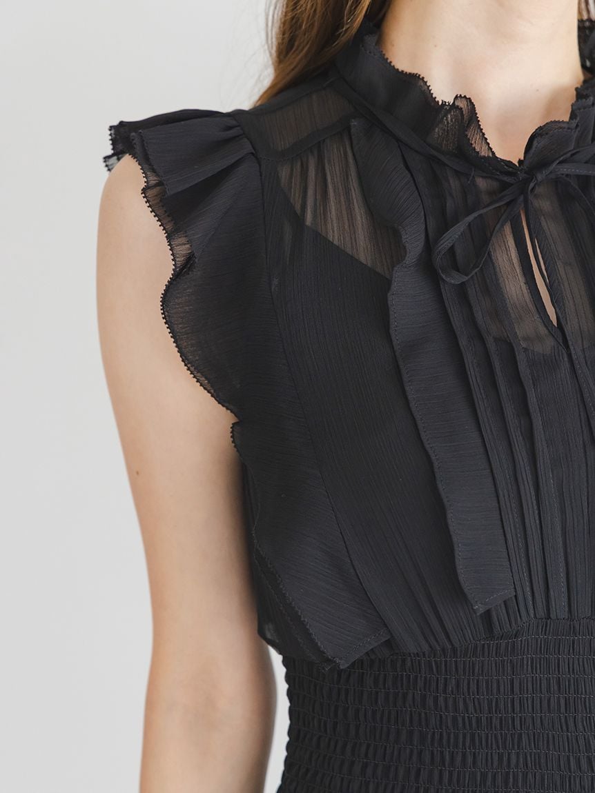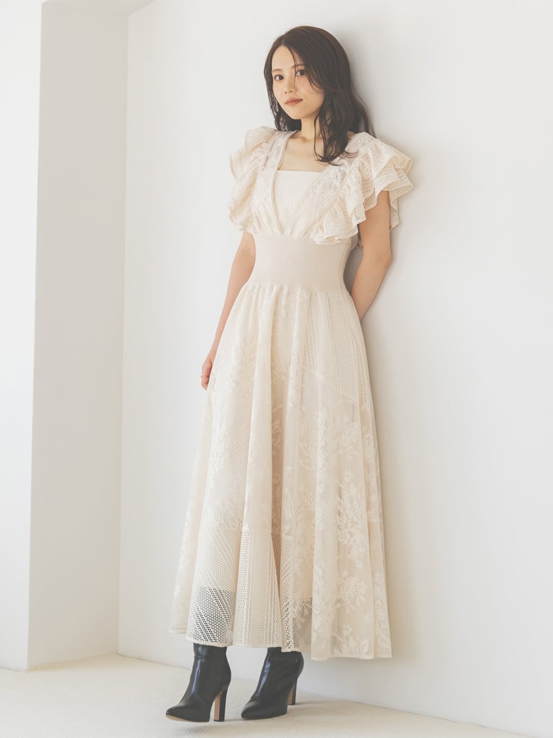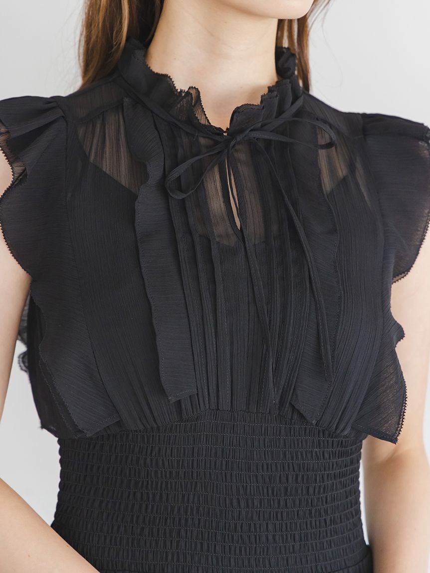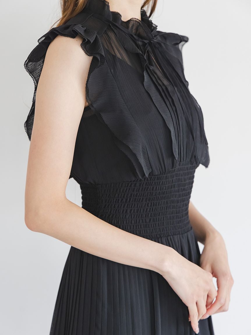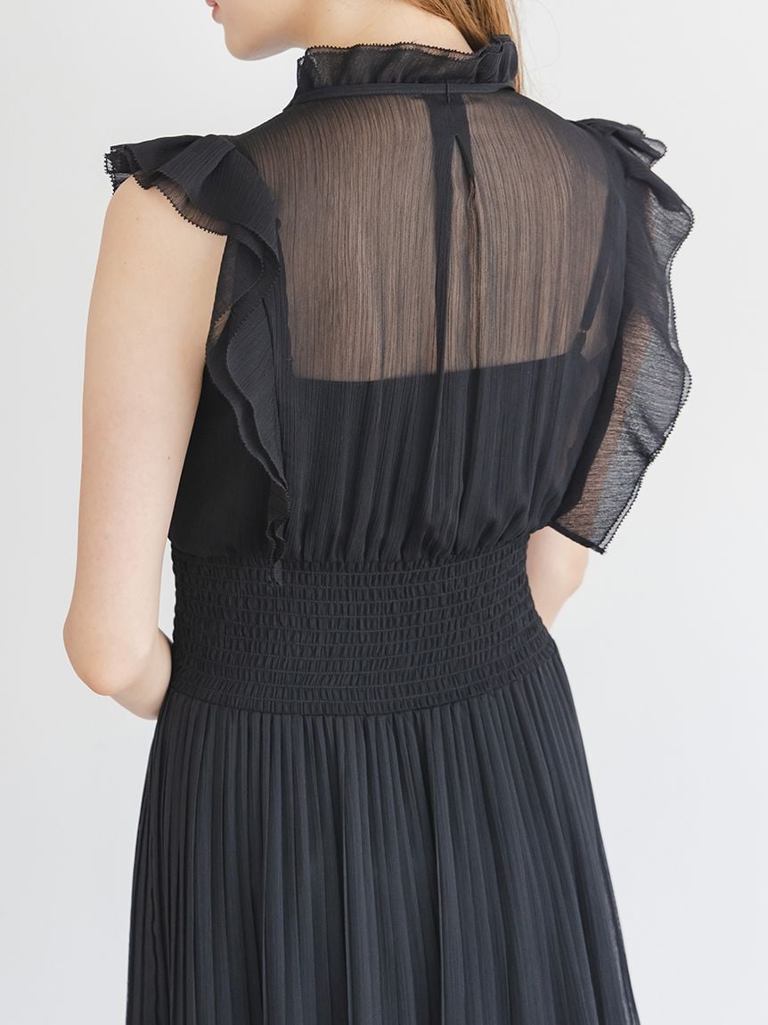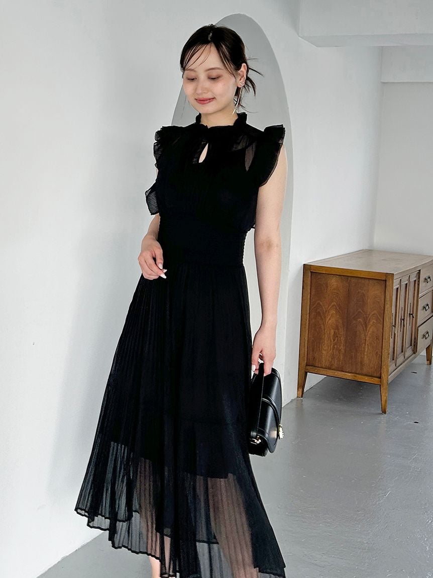 這款SNIDEL人氣腰鬆緊洋裝採用柔軟皺褶布料升級設計,素色布料展現洗練氣質,適合半正式場合穿著。胸前與裙身運用大量打皺與摺線,增加層次與動感。立領搭配細蝴蝶結增添端莊感,肩部雙層荷葉邊設計更顯華麗。裙擺褶飾隨步伐自然擺動,營造優雅氣息。