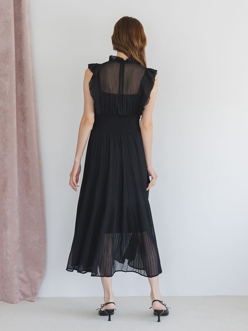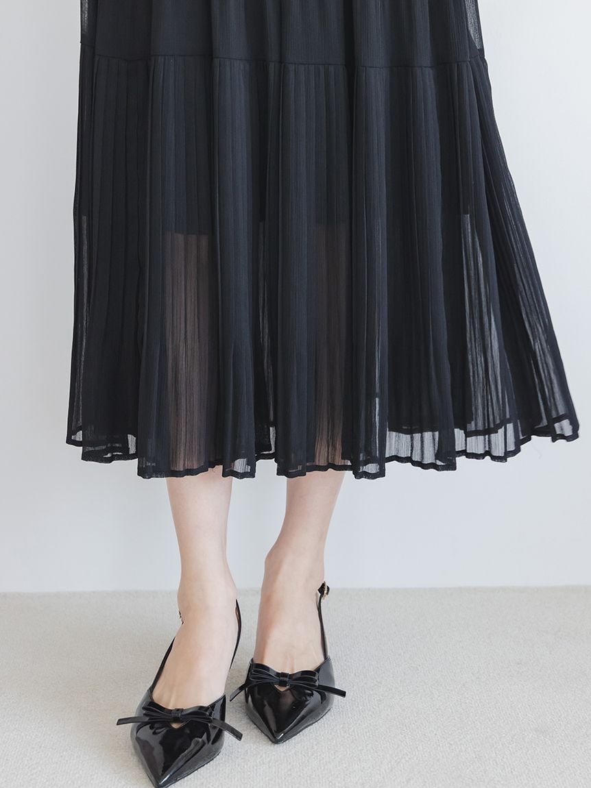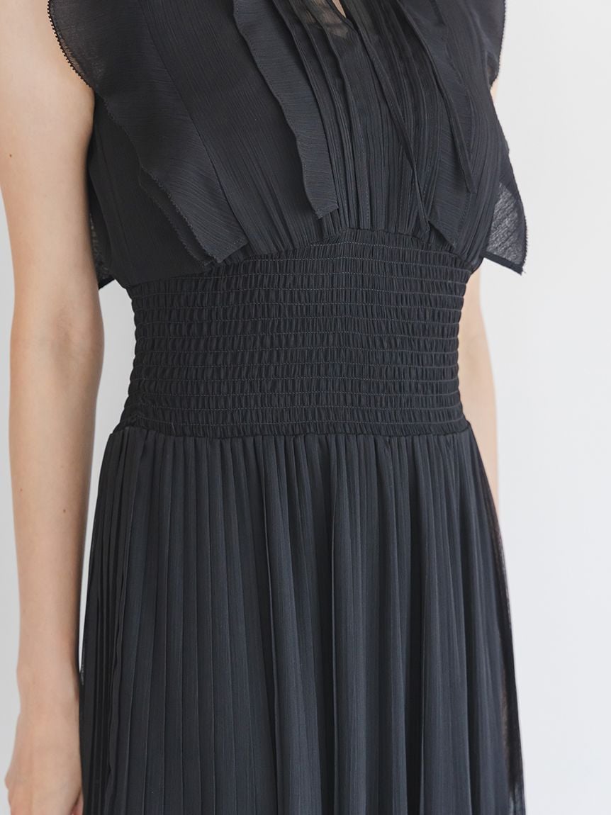 【細緻優雅、適合各種場合的褶飾腰鬆緊洋裝】