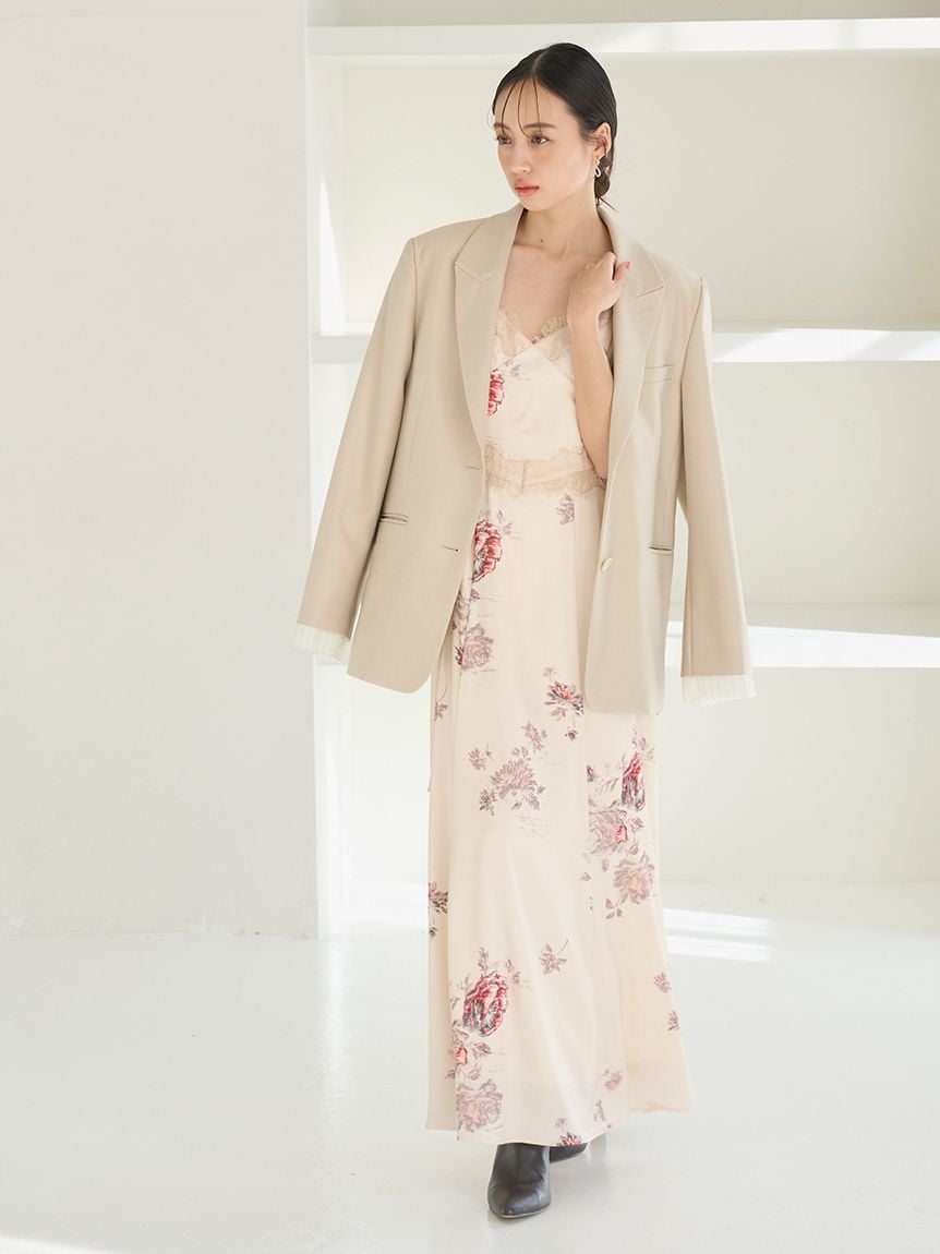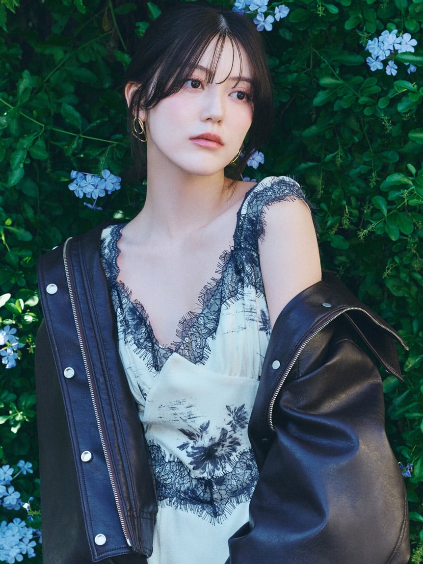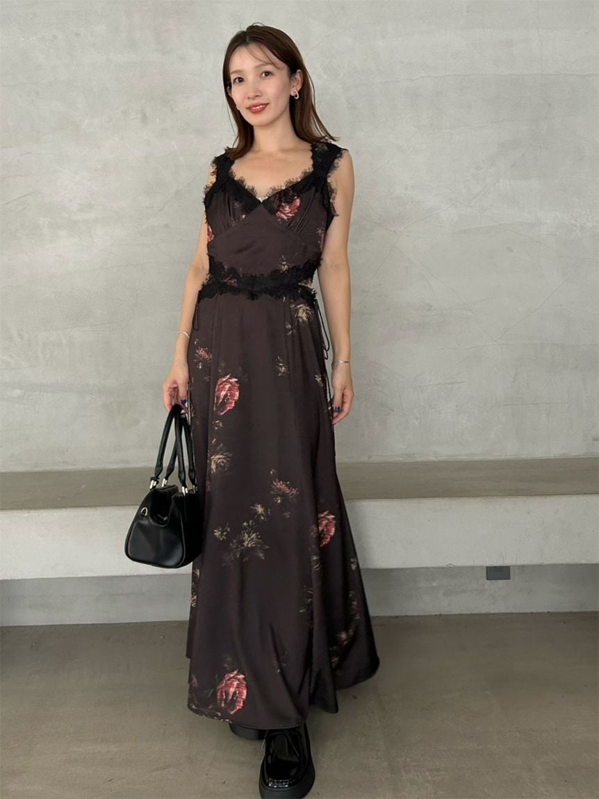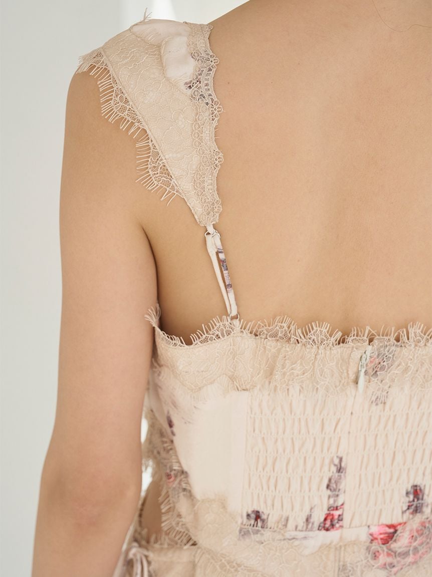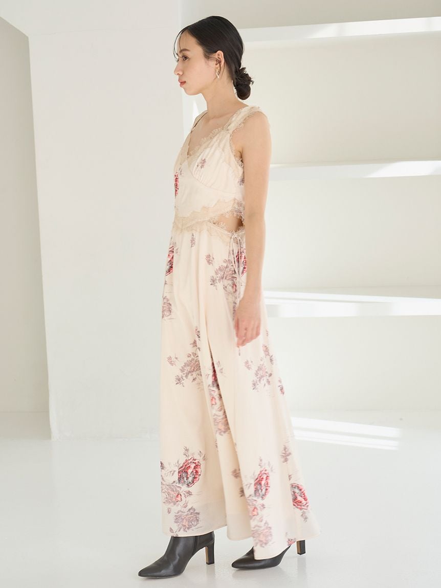 結合復古風花卉印花與華麗細緻蕾絲帶,增添春日氣息的印花吊帶洋裝登場。
