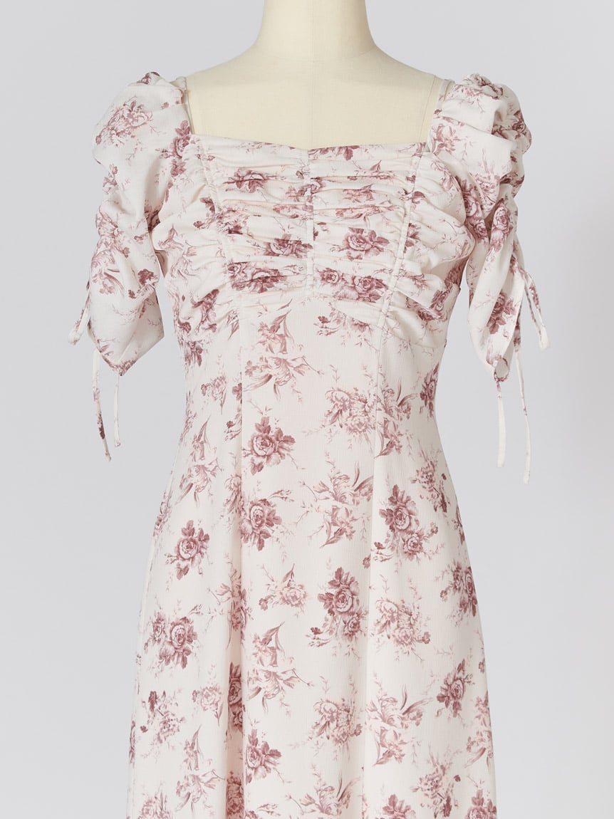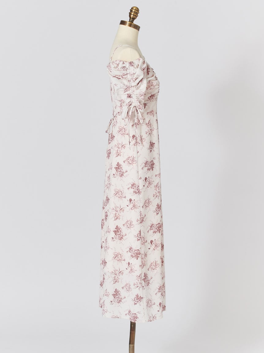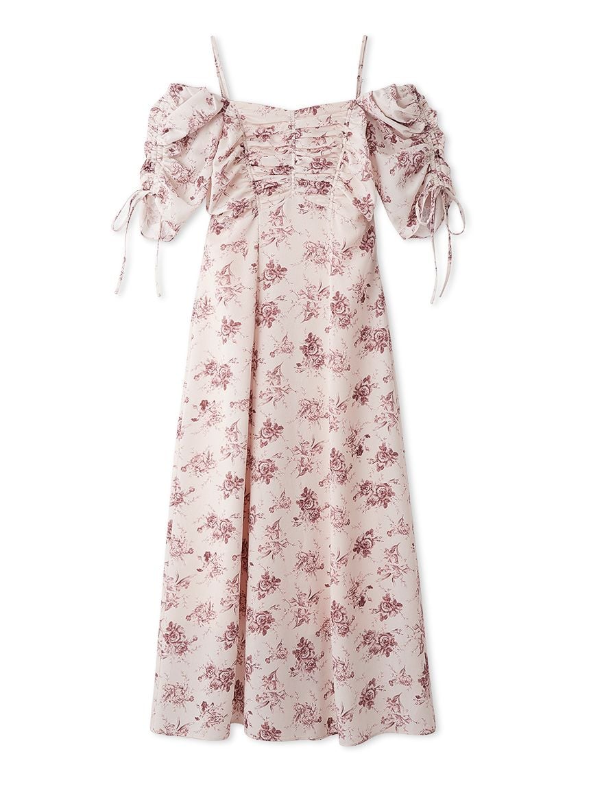 【花卉印花露肩洋裝,甜美中帶點成熟感】