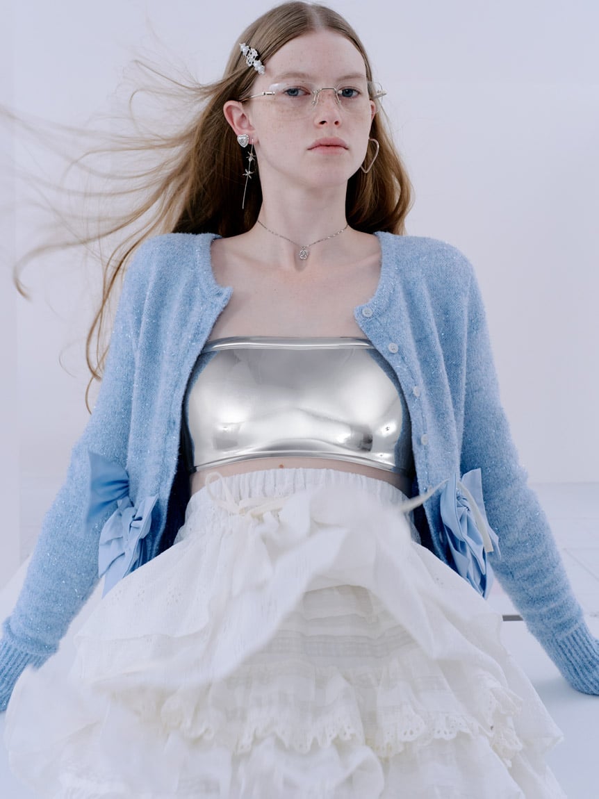 迷你裙褲採用華麗的荷葉層次設計,再加上精緻棉質蕾絲點綴,營造輕盈且優雅的視覺感受。這款單品能在秋冬容易出現厚重感的穿搭中,巧妙增添透氣感與比例平衡。