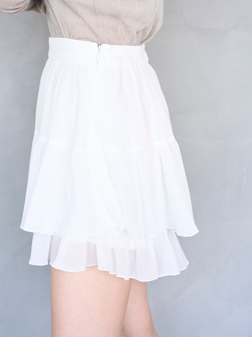 【柔霧感楊柳布層層堆疊,勾勒流動線條的 Ripple Line 輕盈短裙褲】