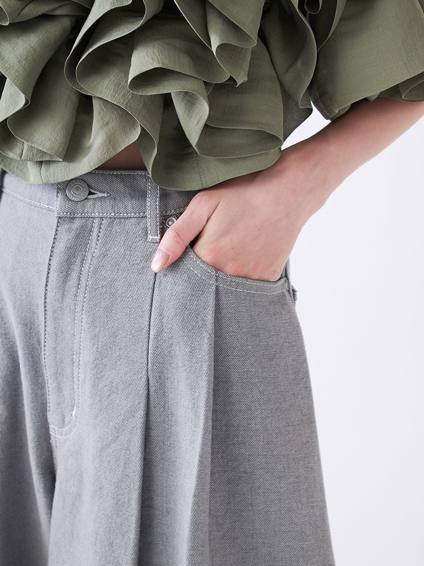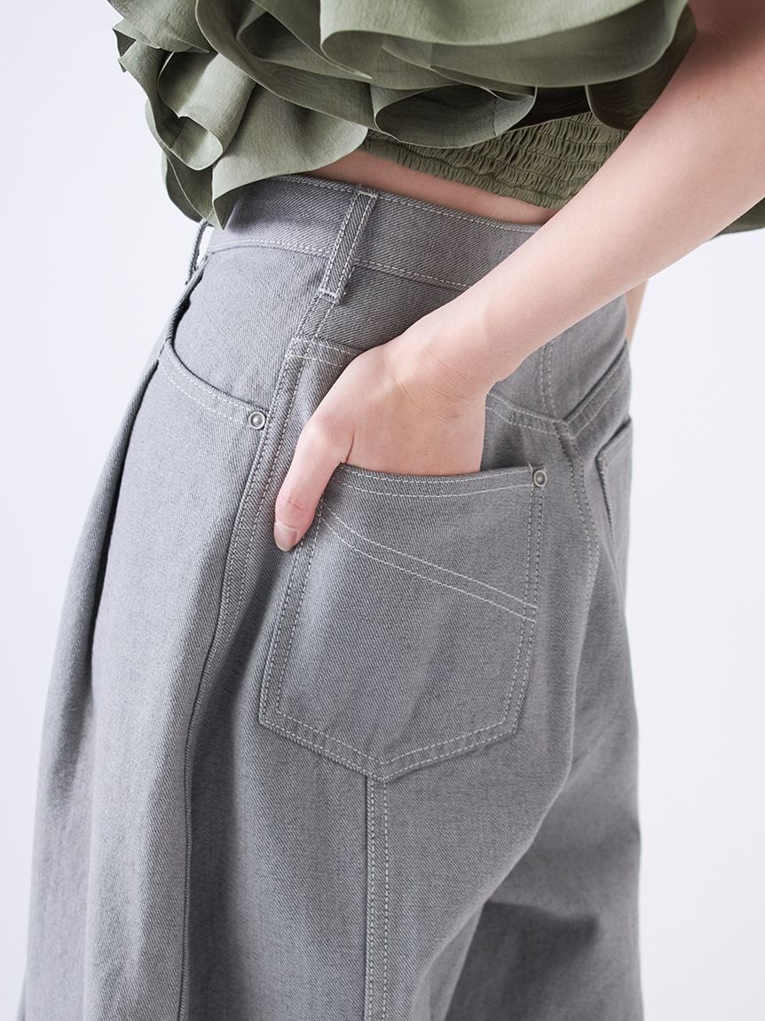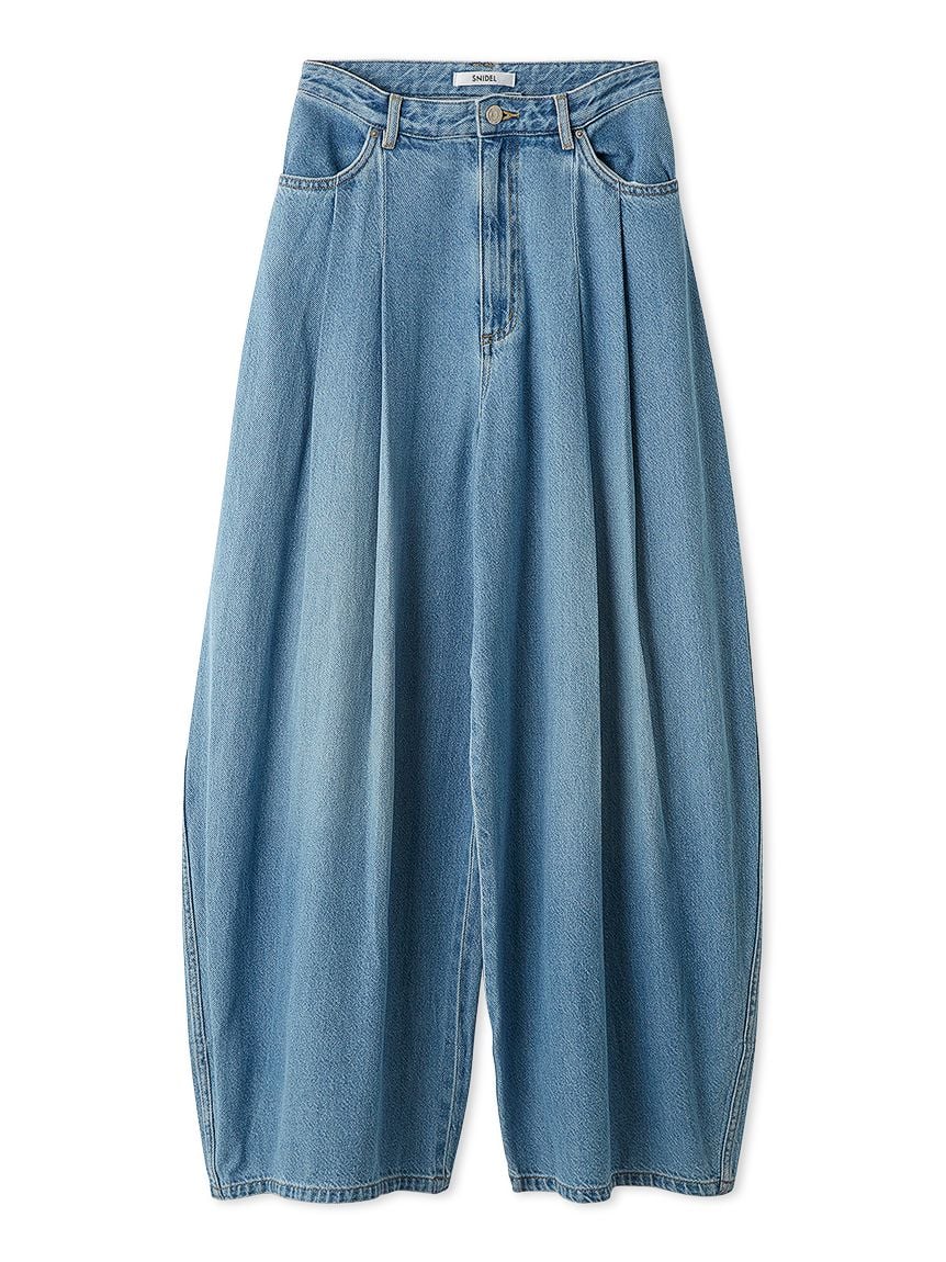 【打造休閒感的立體弧線寬版牛仔褲】