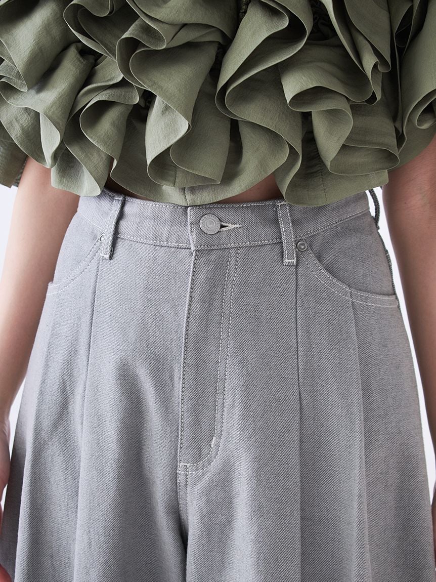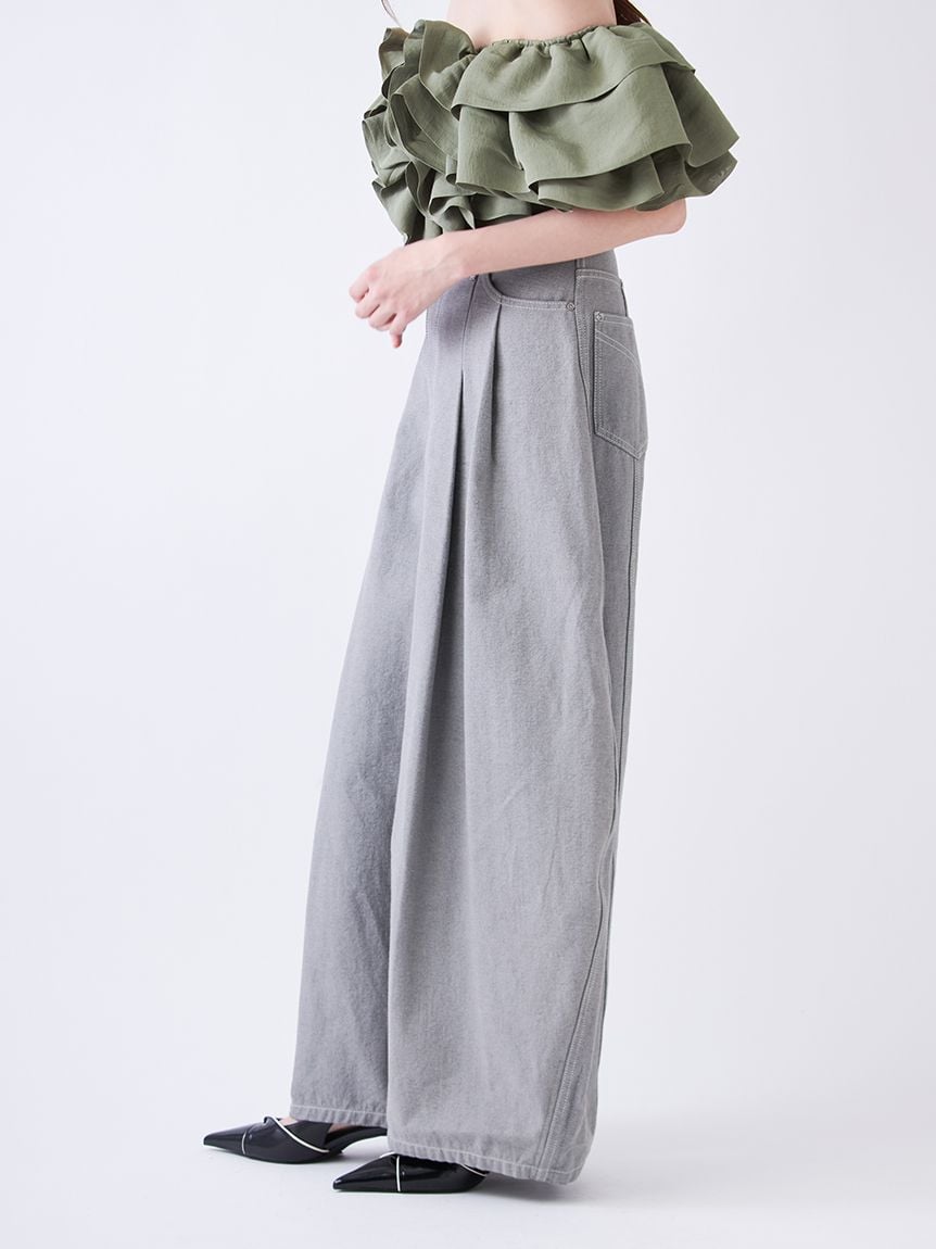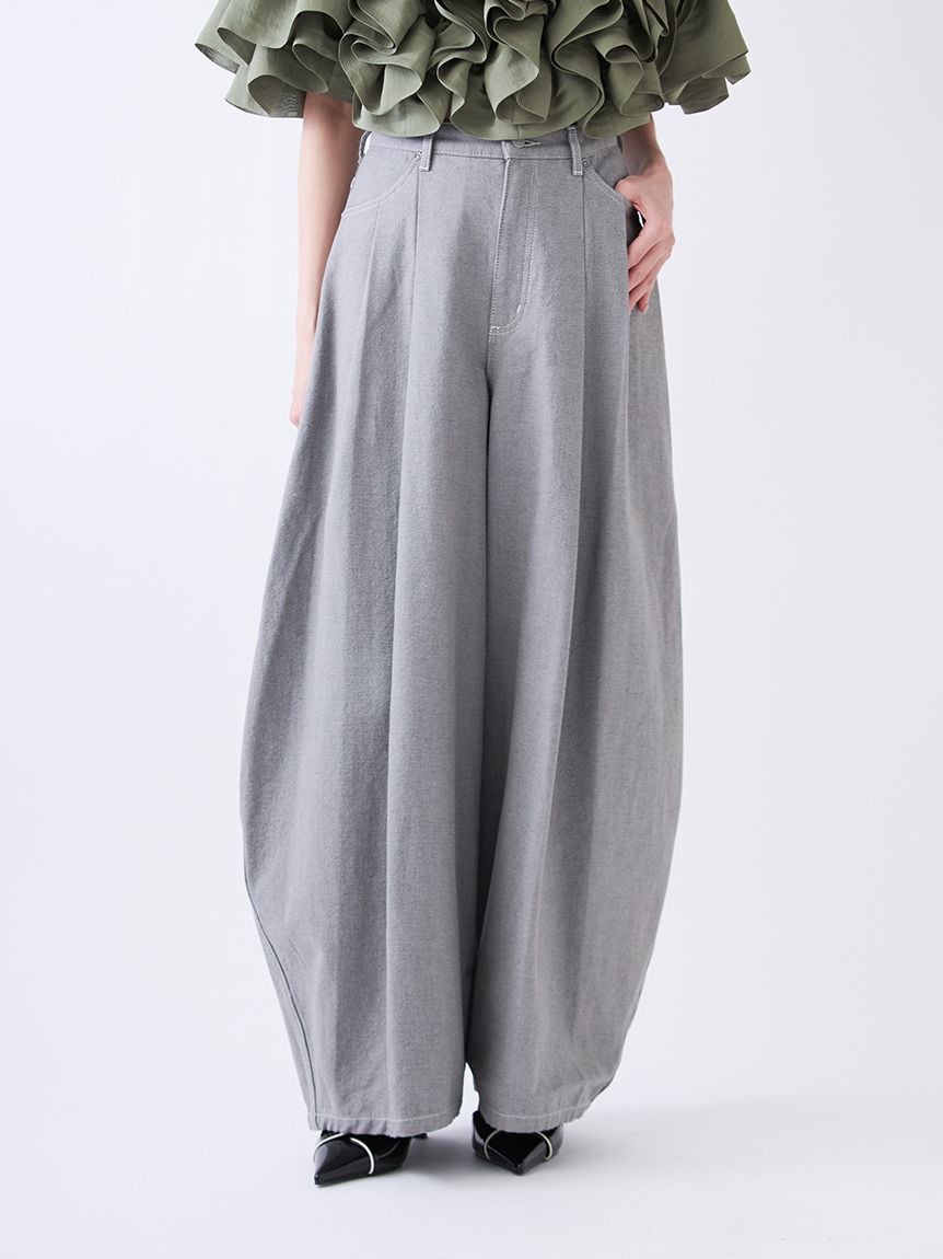 立體弧線剪裁吸睛,打造充滿份量感的寬版牛仔褲。