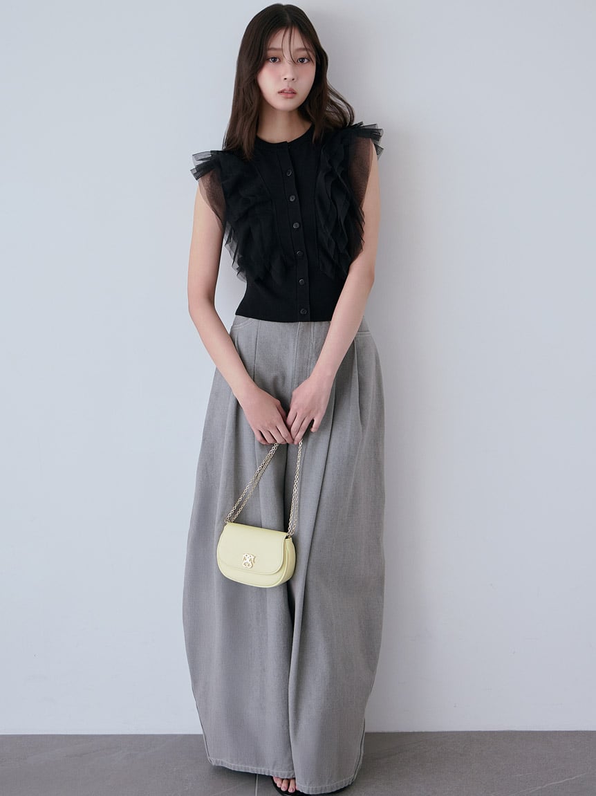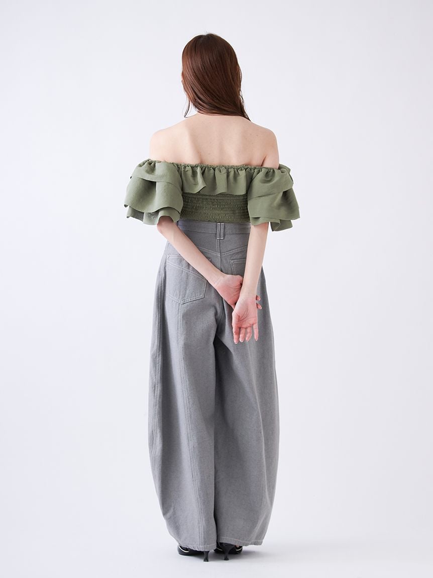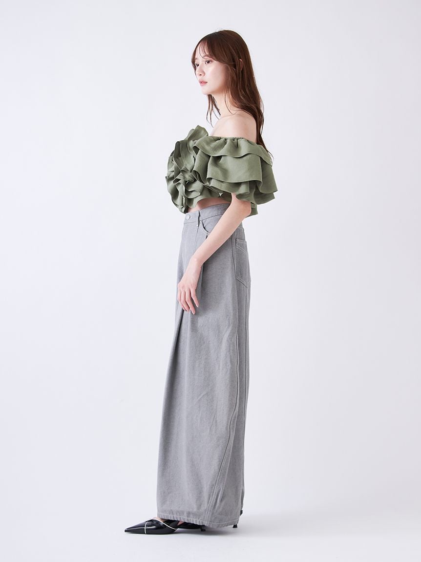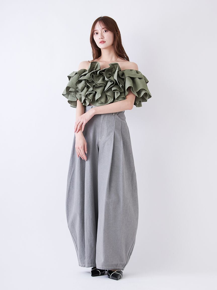 立體弧線剪裁吸睛,打造充滿份量感的寬版牛仔褲。