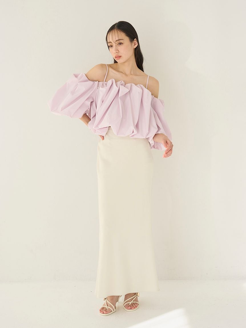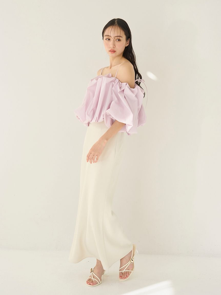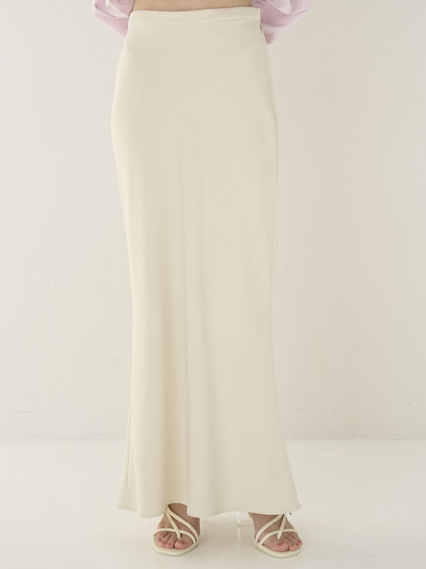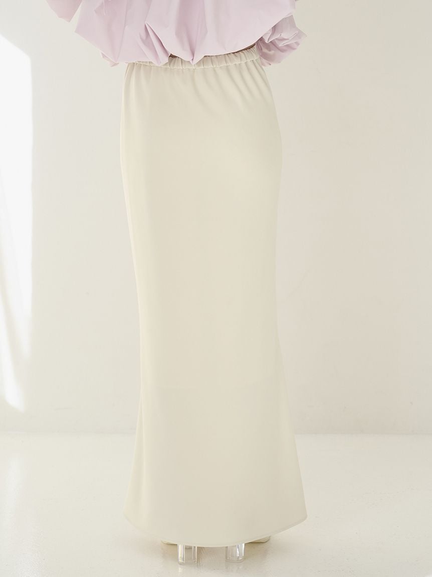 採用具有垂感的布料製作的美人魚剪裁簡約長裙登場。