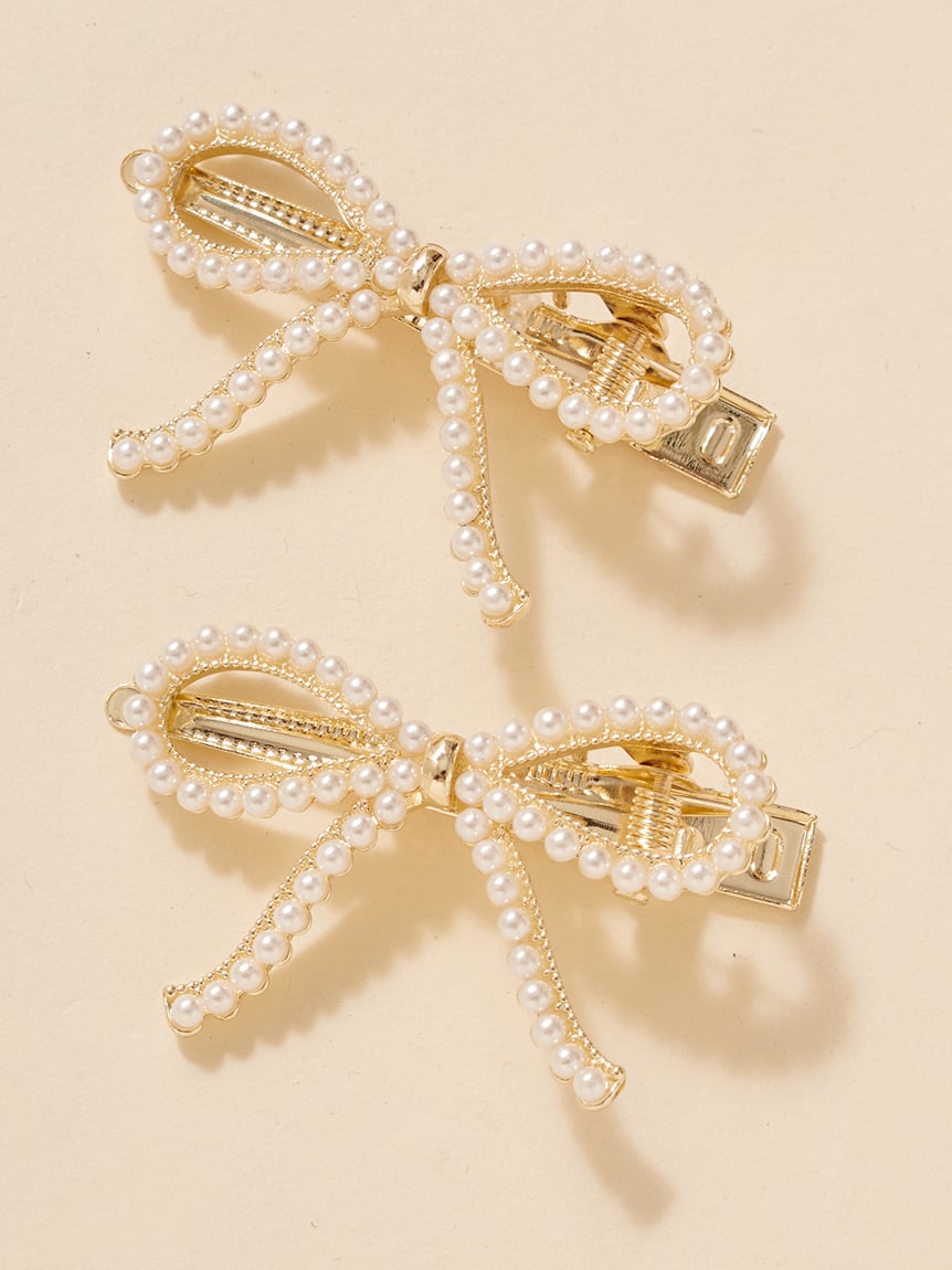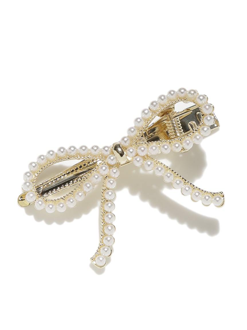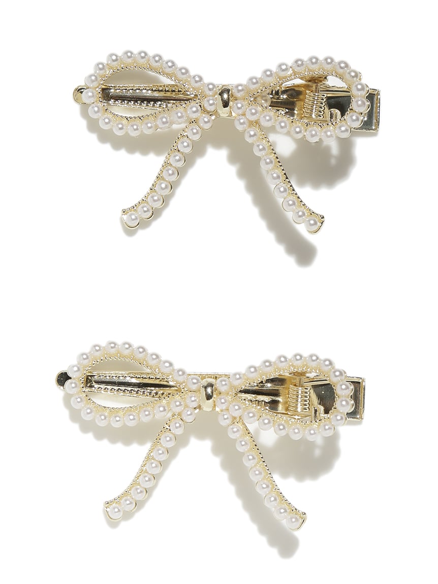 以小珍珠與寶石裝飾的蝴蝶結設計,打造可愛又優雅的髮夾2入組。夾具握力良好,適合側邊固定或半綁髮造型。