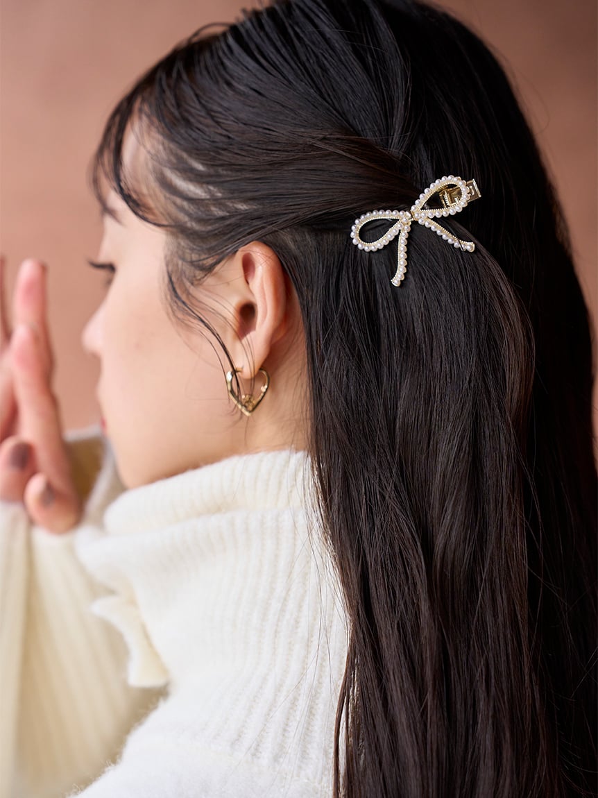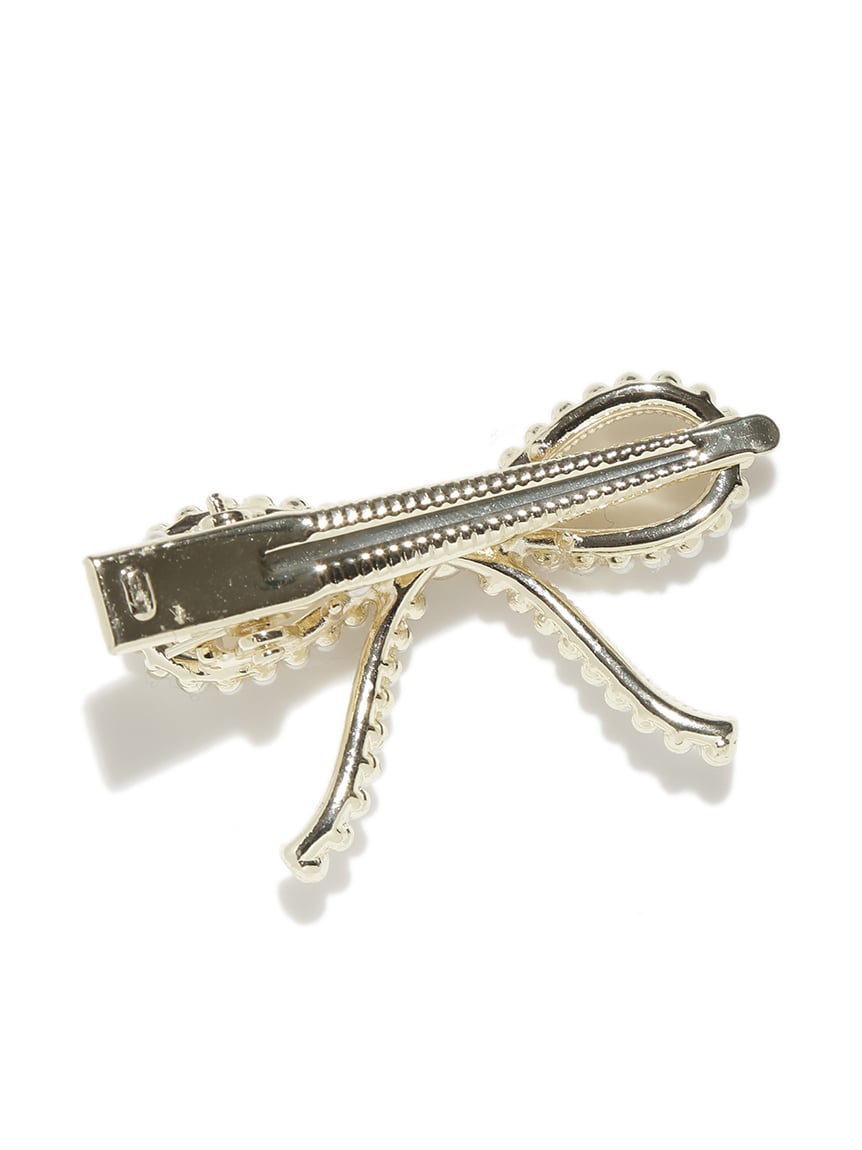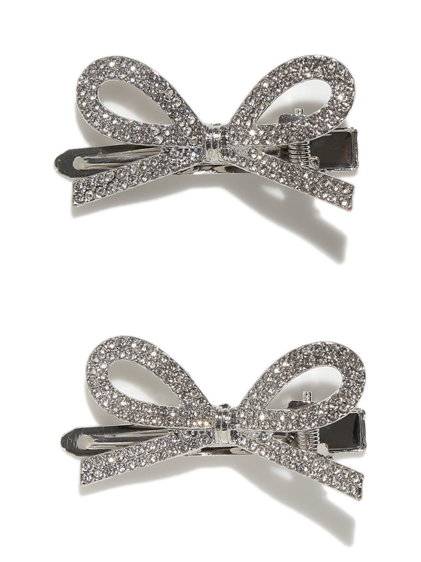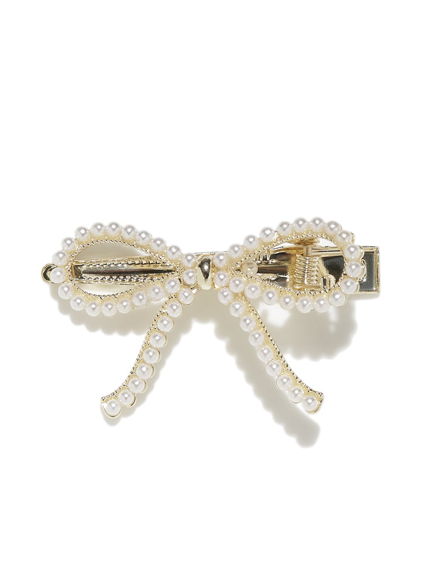 以小珍珠與寶石裝飾的蝴蝶結設計,打造可愛又優雅的髮夾2入組。夾具握力良好,適合側邊固定或半綁髮造型。