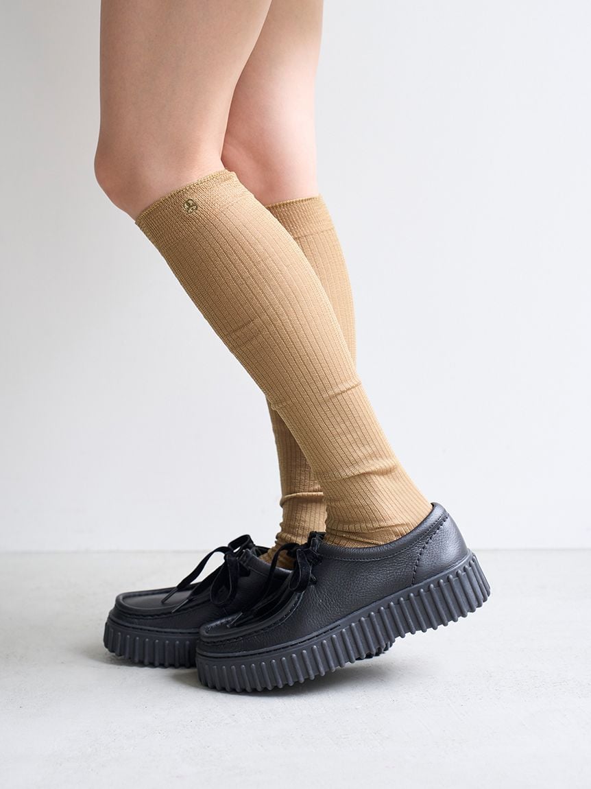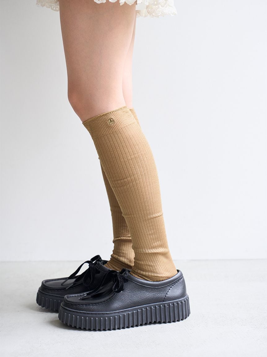 以細緻紗線打造適度透膚感的柔軟長襪。採用今季流行色:深灰色、低飽和感成熟橄欖綠、巧克力棕,共三色。長版設計方便與短裙、短褲搭配,增添穿搭層次感。