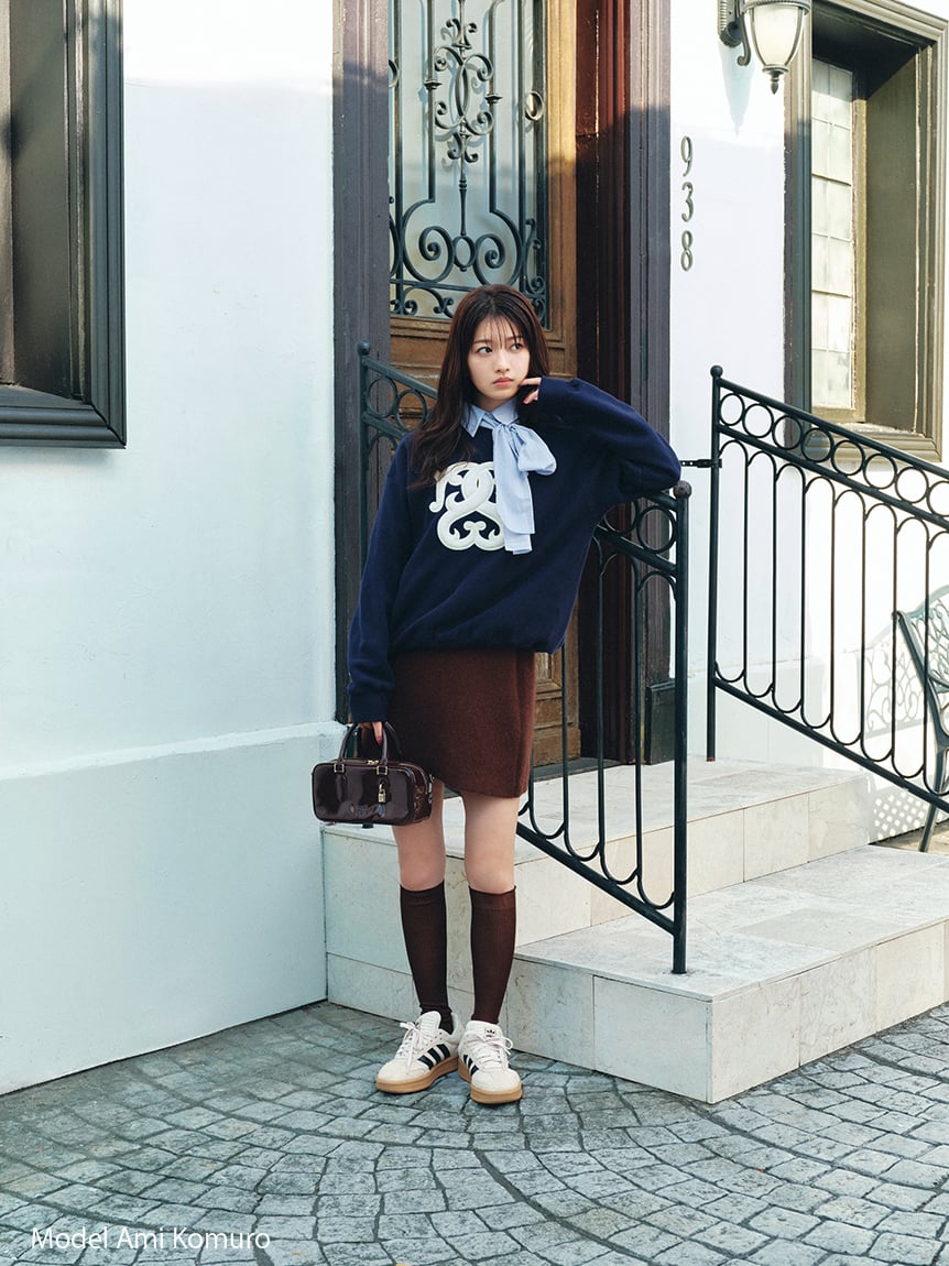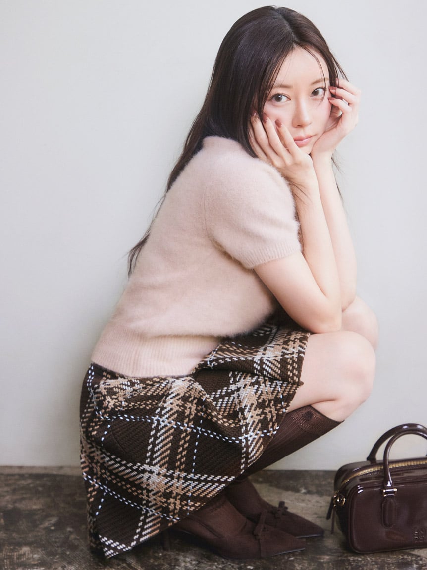 襪口低調刺繡SNIDEL標誌,橄欖綠與棕色款還可搭配同色系針織圍巾與手臂套,營造整體協調感。