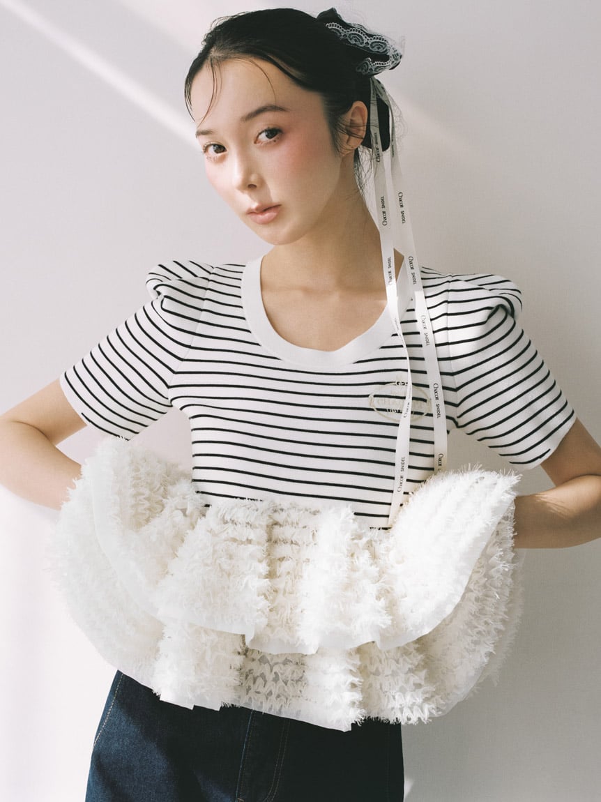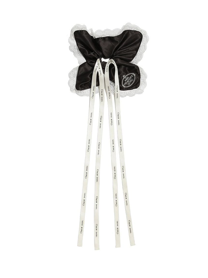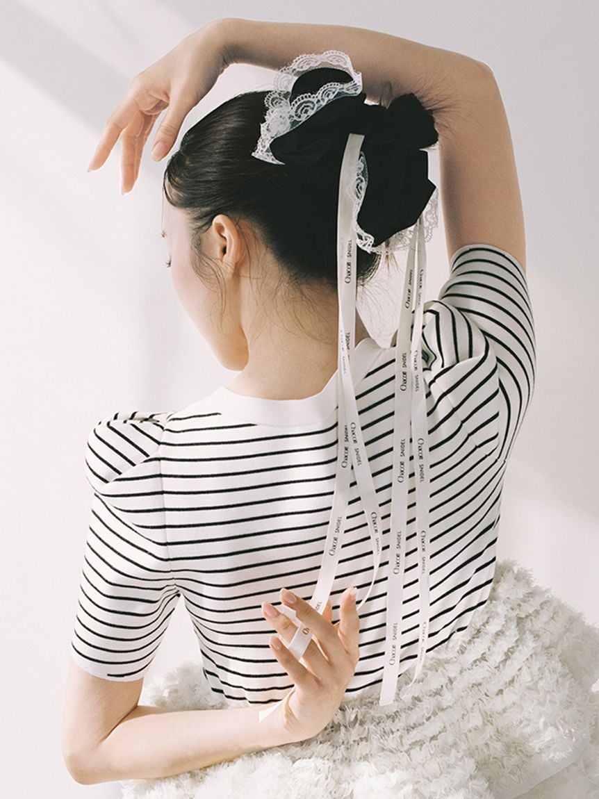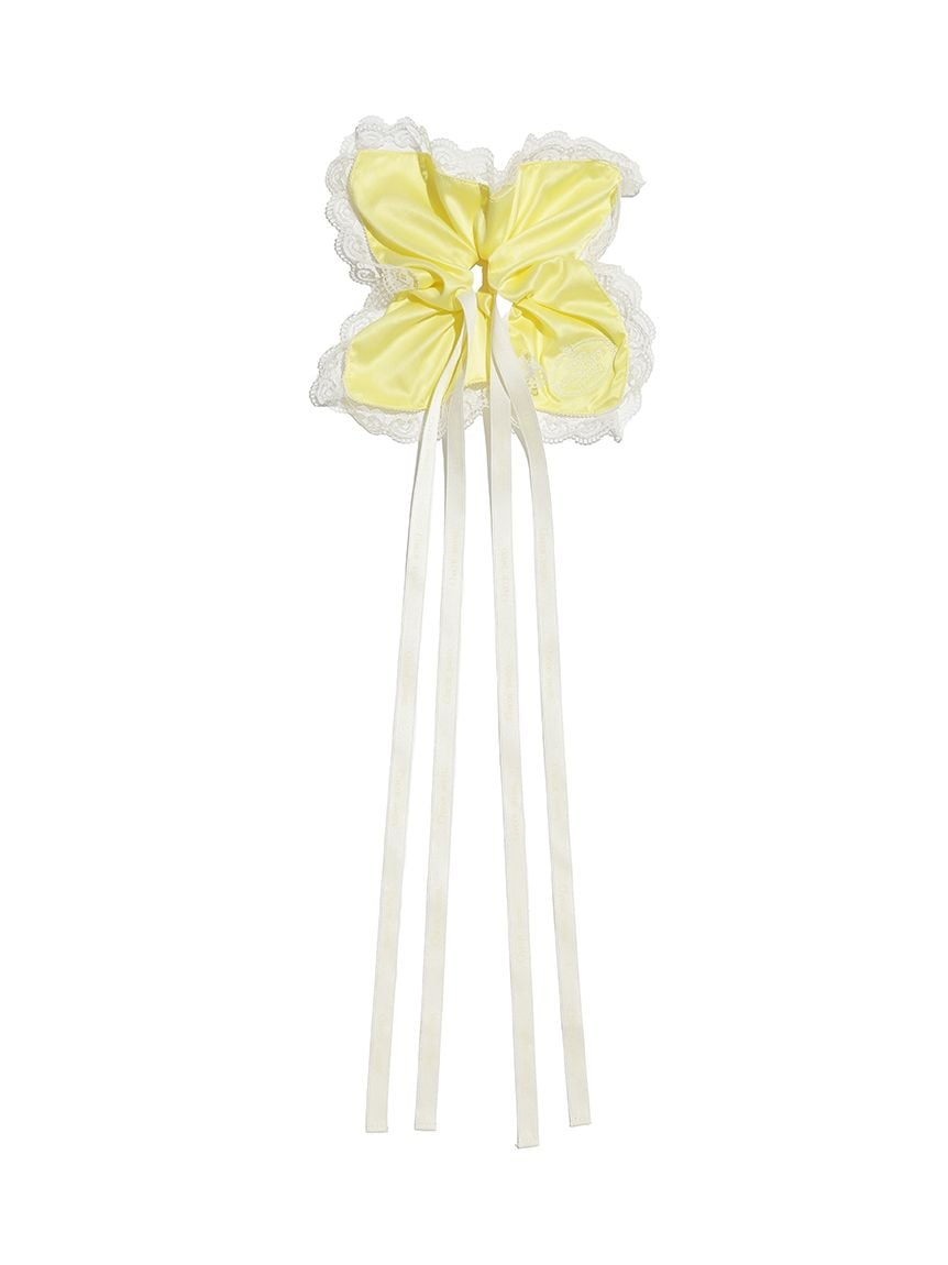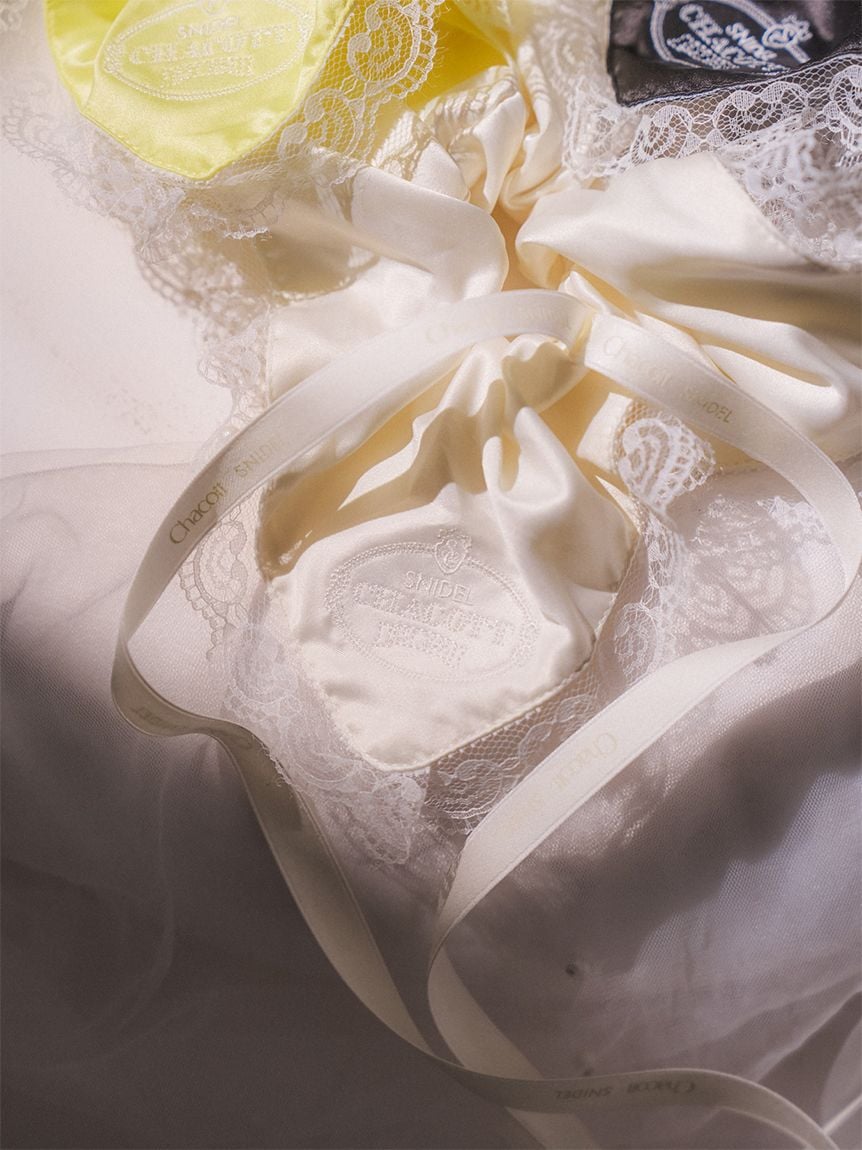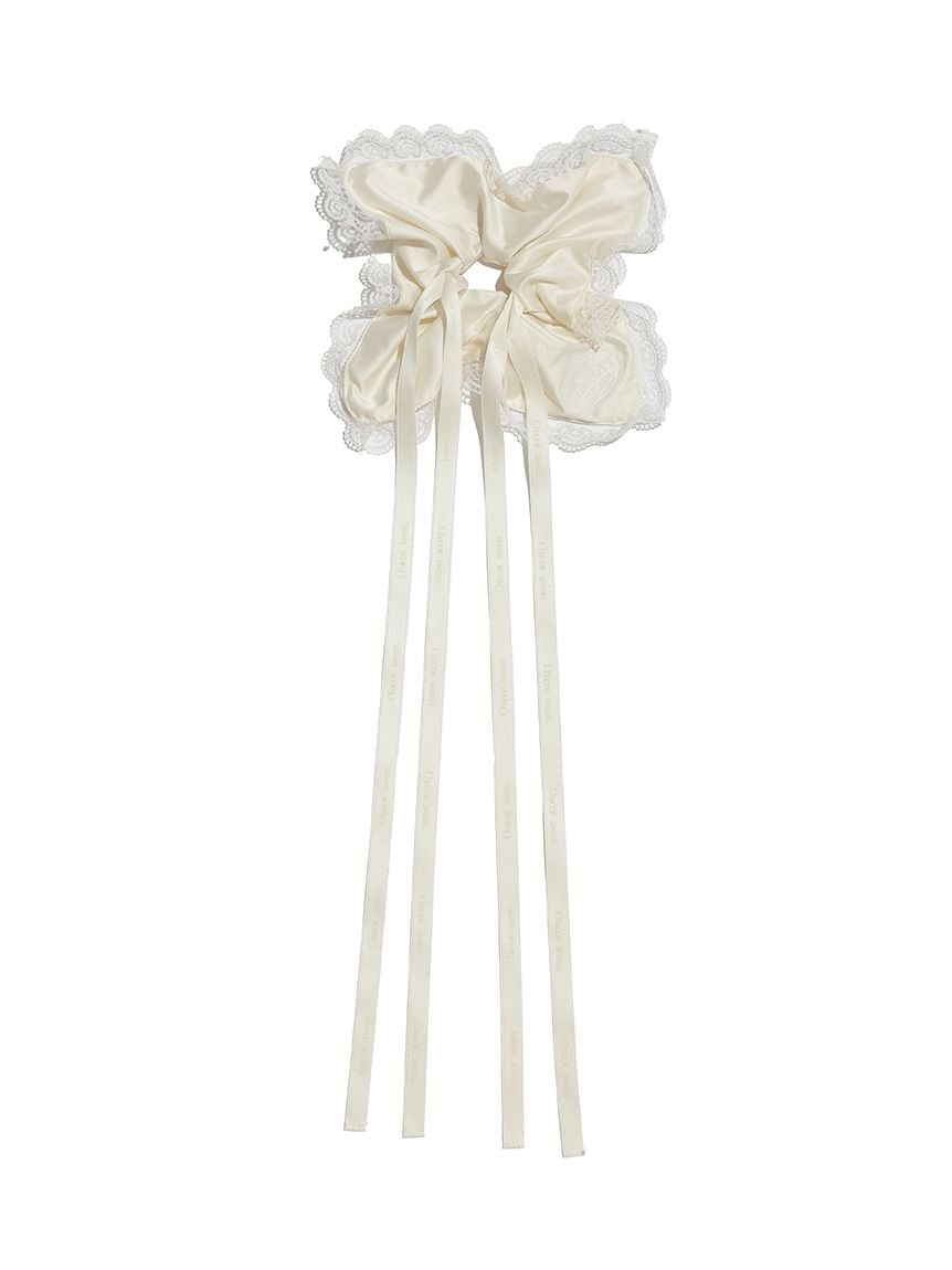 以帶有適度光澤感的布料,疊加花邊刺繡打造女性感髮束。