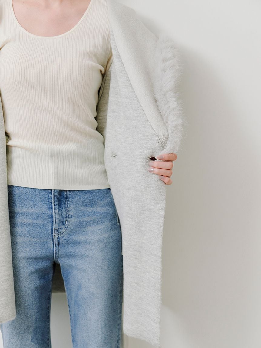 【大帽連帽與仿毛毛裝飾,華麗感十足的針織外套】
