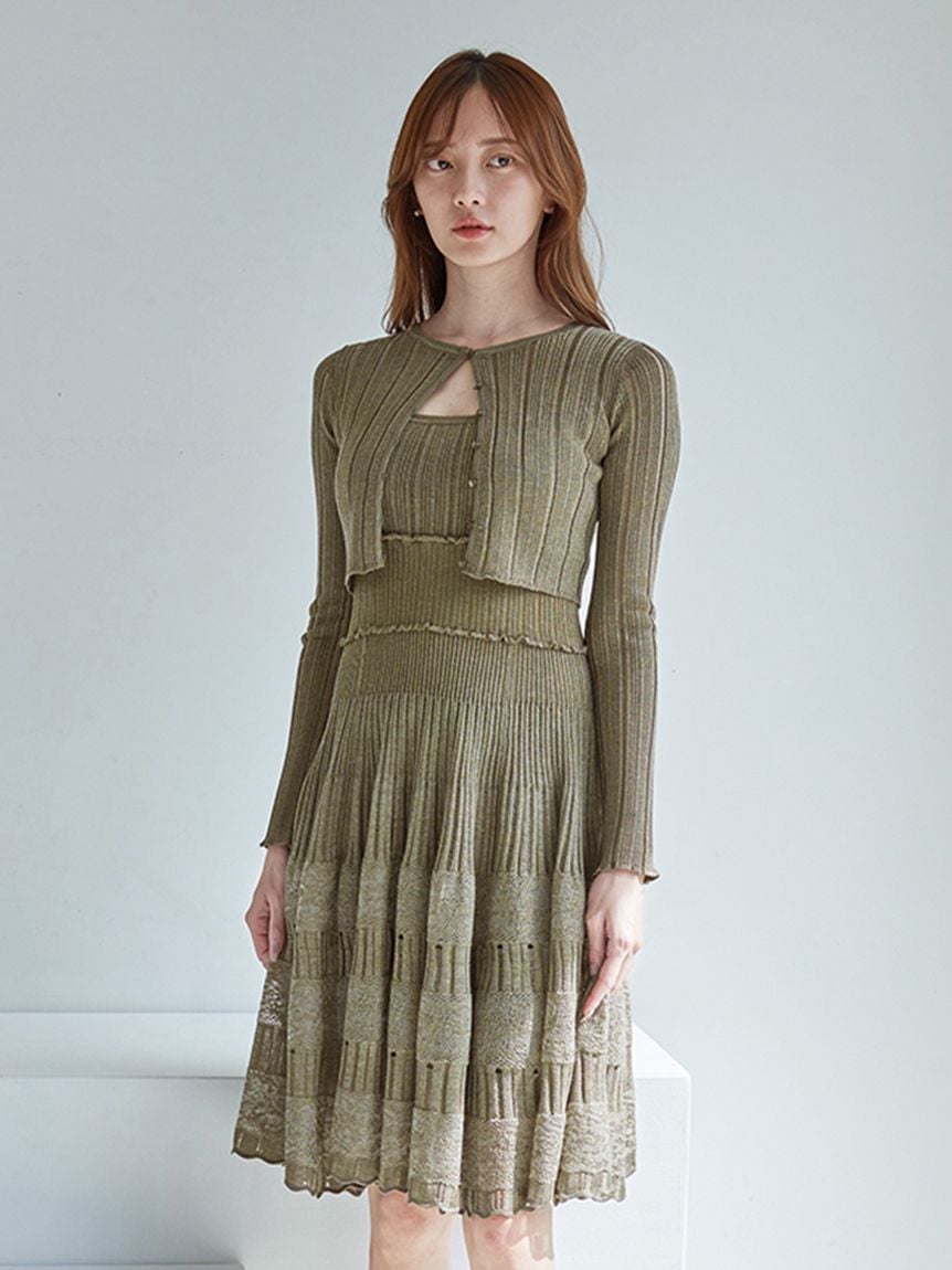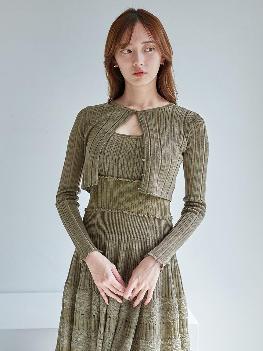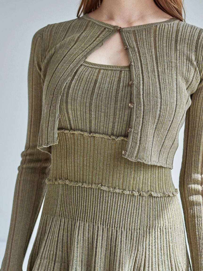【附開襟外套的時尚感短版針織 洋裝套組】