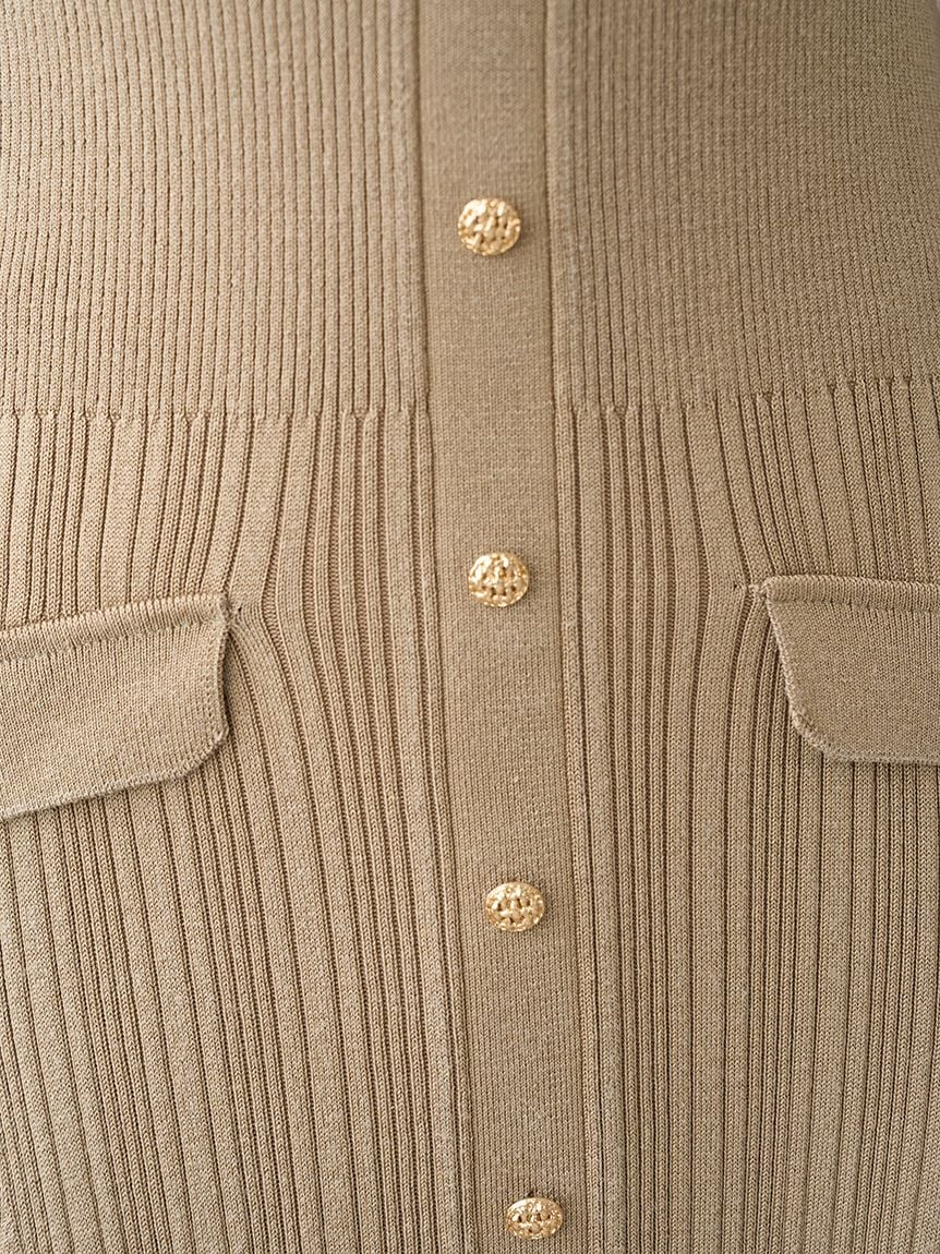 SNIDEL經典的前釦針織洋裝迎來本季新版本,以帶有造型感的金色金屬釦點綴,呈現精緻而優雅的氛圍。搭配小領片,勾勒出今季流行的學院風調性。全身採用具表情的隨性羅紋針織,腰部以較細緻的2×1羅紋切換,視覺上更顯俐落。