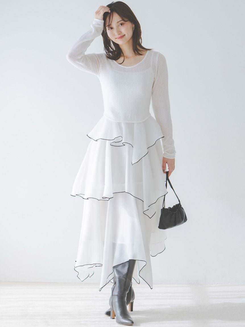 | 素材 | : | 上衣:壓克力纖維64%、聚酯纖維25%、尼龍纖維11%/連身裙主體:聚酯纖維100%/連身裙內裡:聚酯纖維100%。備考尺吋[0]【連身裙】總長度:125cm,胸圍:82cm,腰圍:66cm,下擺寬度:123cm [1]【連身裙】總長度:128.5cm,胸圍:86cm,腰圍:70cm,下擺寬度:127cm |