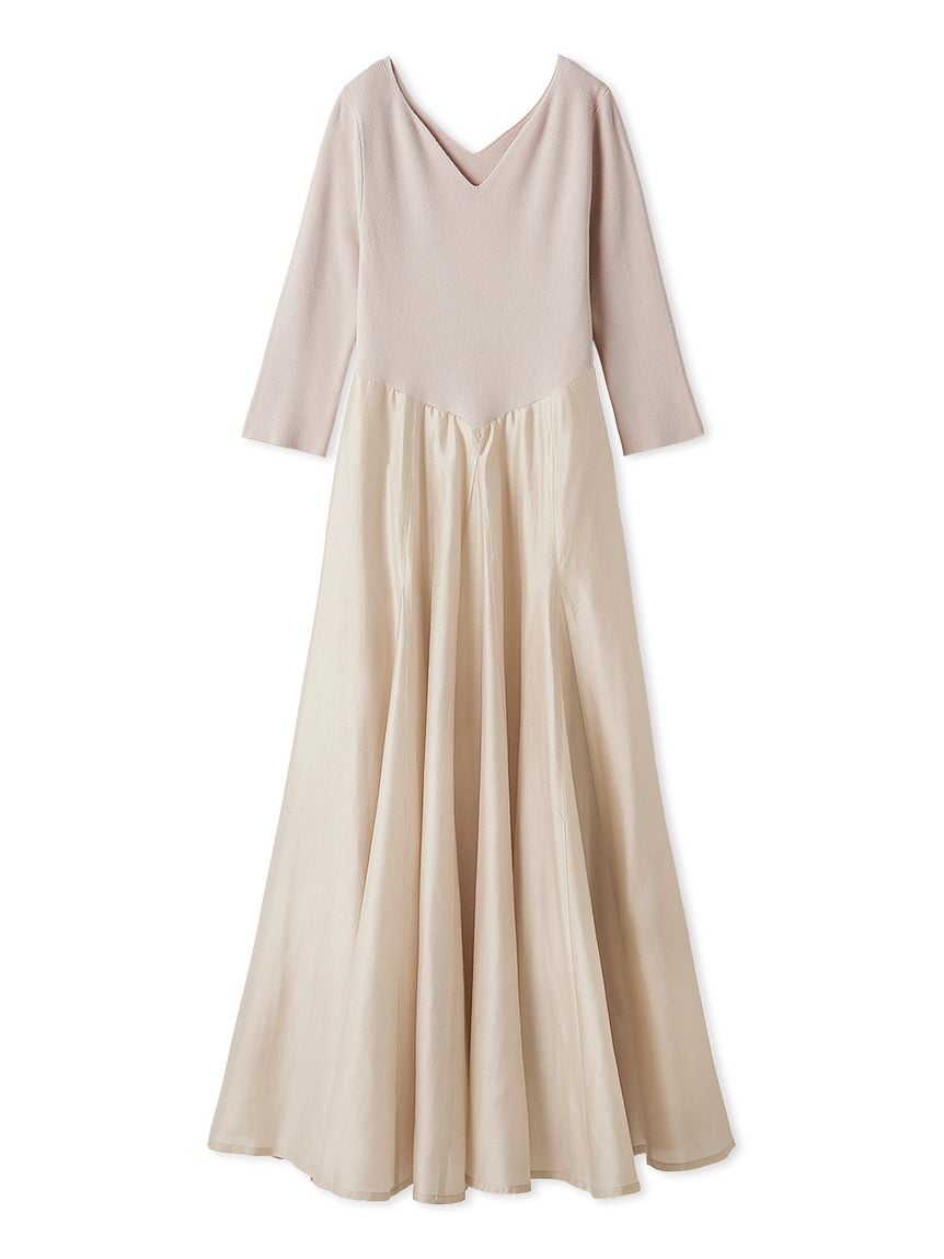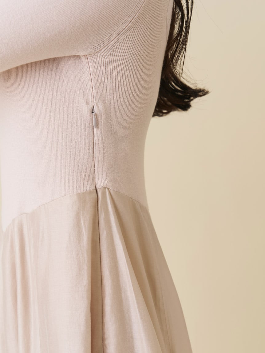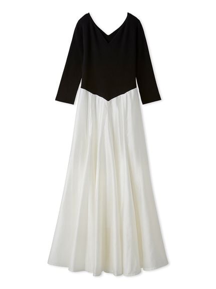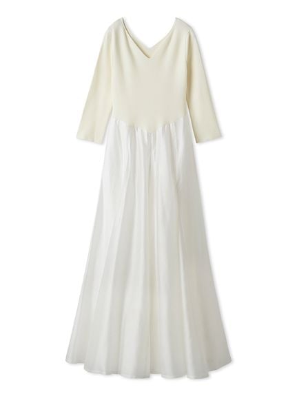將展現鎖骨曲線的愛心領針織上身,與飽滿份量感的歐根紗裙身結合。