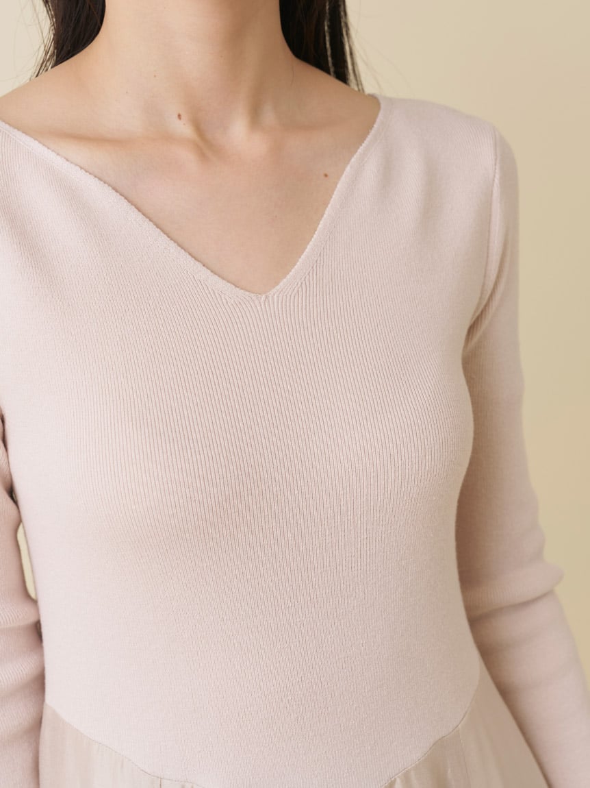 【展現鎖骨曲線的愛心領針織洋裝】