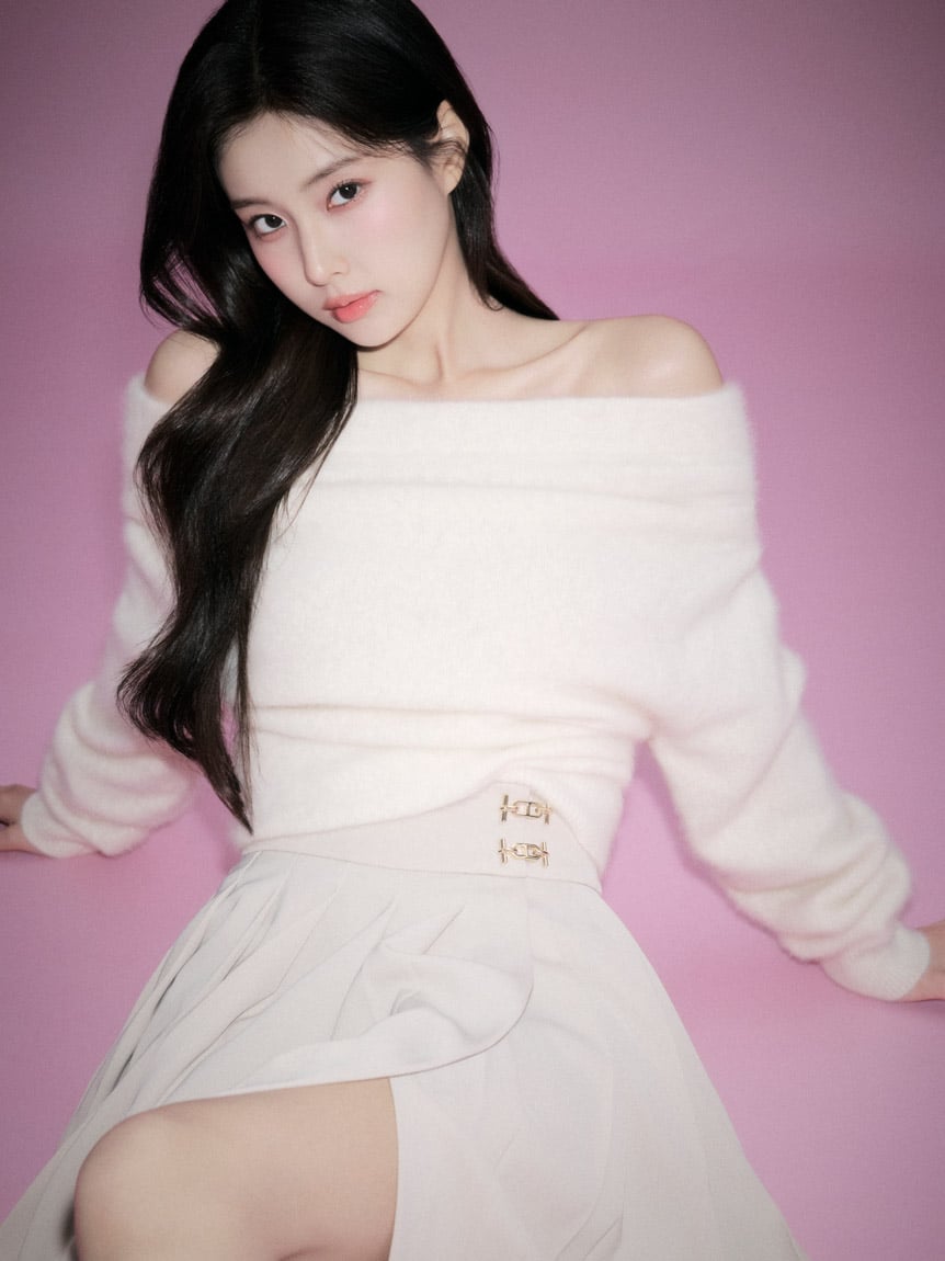 領口加入富有時髦感的打摺垂墜設計,自然勾勒線條,讓造型更顯沉穩優雅;亦可變化為斜肩穿著方式,呈現不同造型表情。