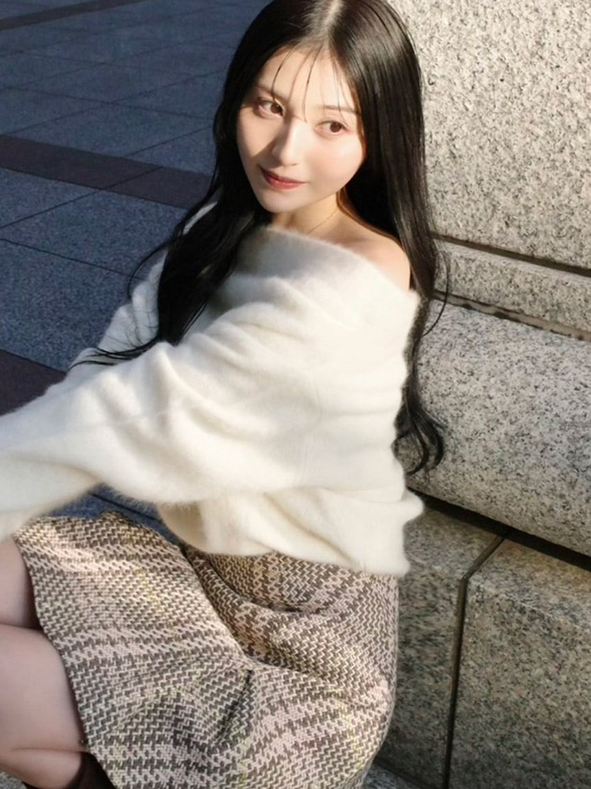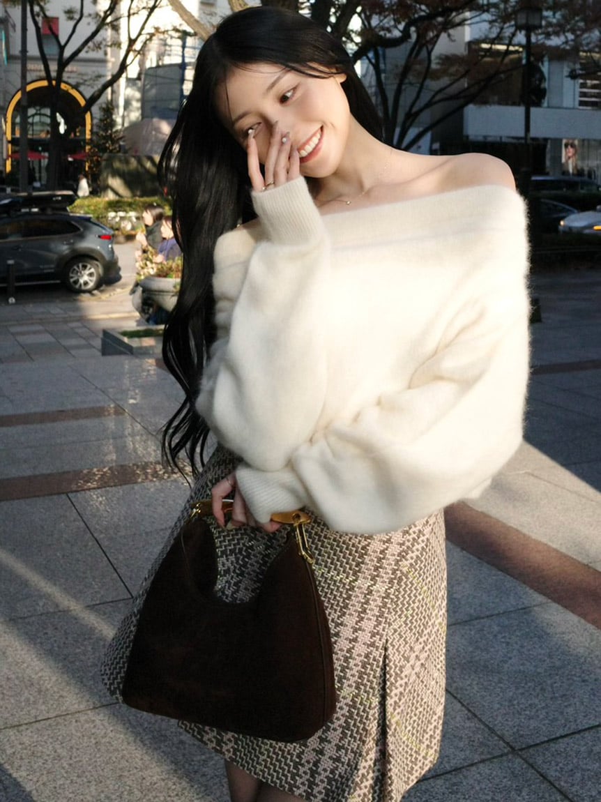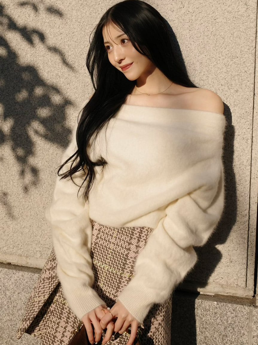 選用狐狸毛與喀什米爾混紡的高品質針織素材製成,帶來溫潤包覆感與細膩觸感的針織上衣。
