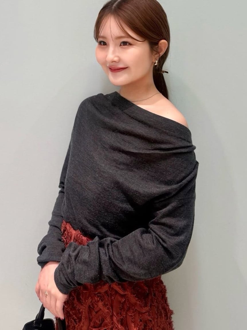 【不對稱領口垂墜設計?展現隨性感線條的針織上衣】