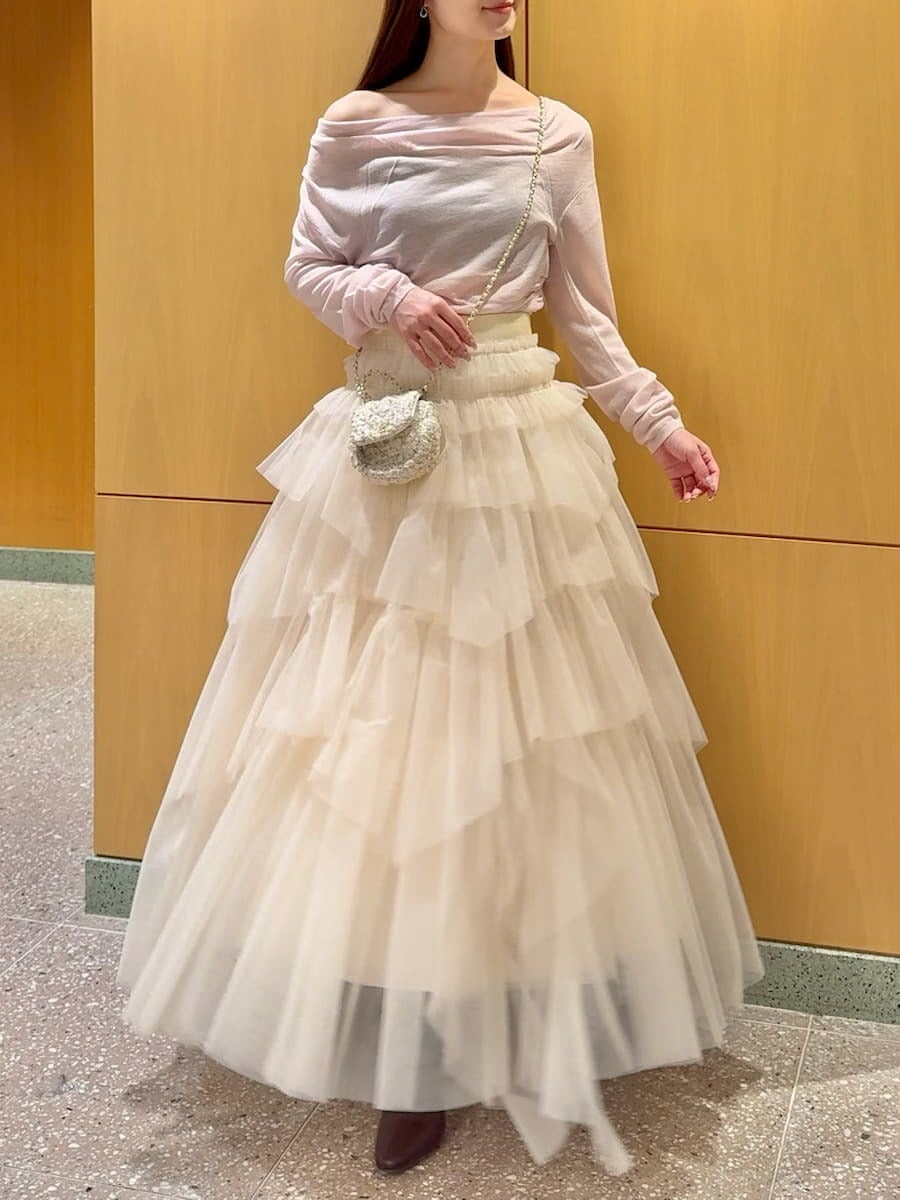 推薦搭配同系列的裝飾感雪紡喇叭裙(SWFS255107),完成優雅且富有節奏感的造型。