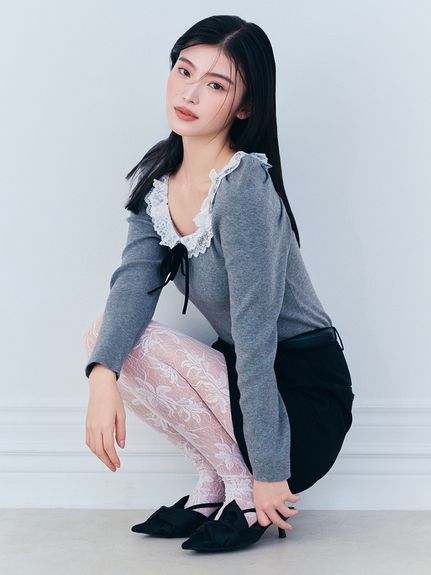 | 素材 | : | 主體:壓克力纖維40%、尼龍纖維32%、聚酯纖維26%、聚氨酯纖維2%/蕾絲:(上層)尼龍纖維88%、聚氨酯纖維12% (下層)聚酯纖維100% |